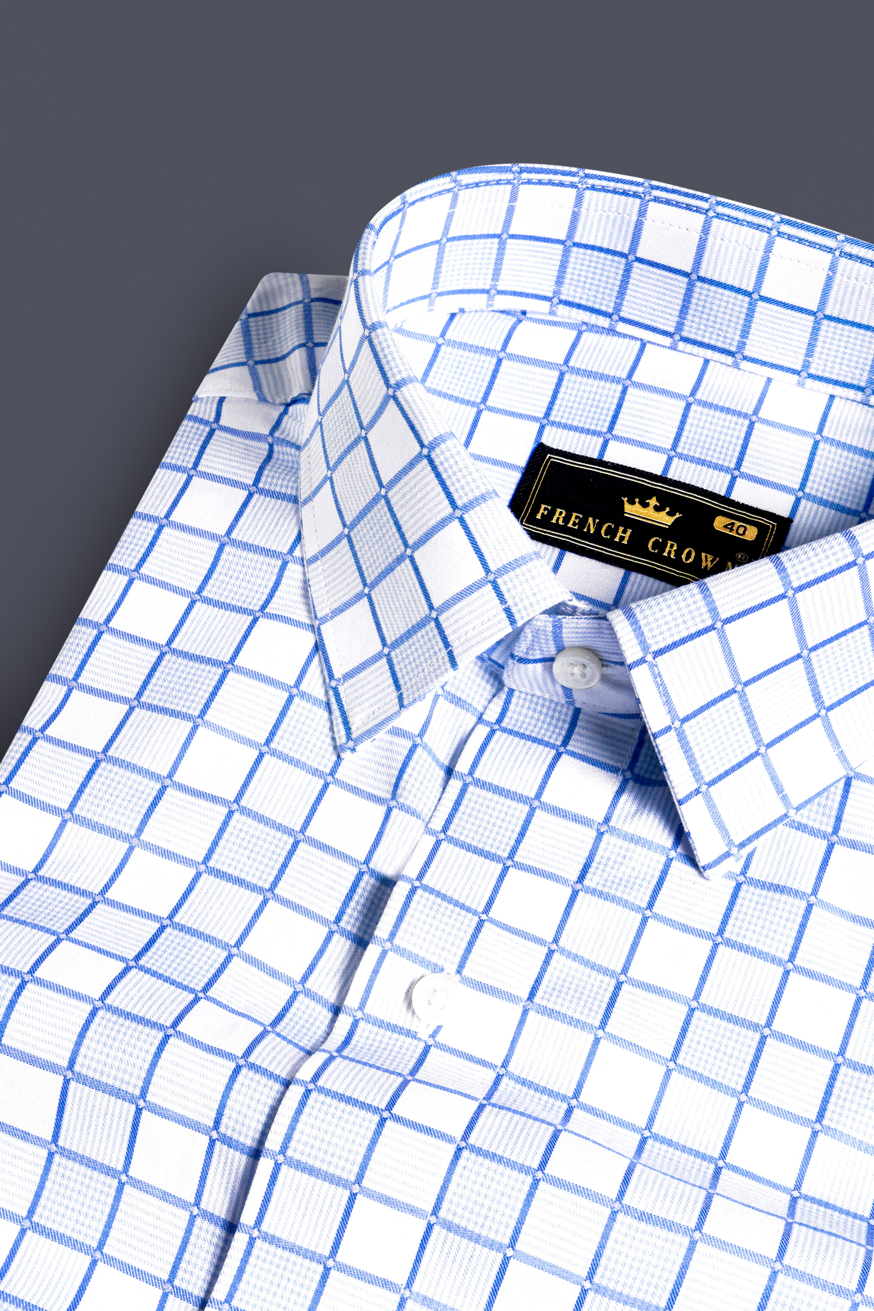 Bright White and Mirage Blue Gingham Twill Premium Cotton Shirt