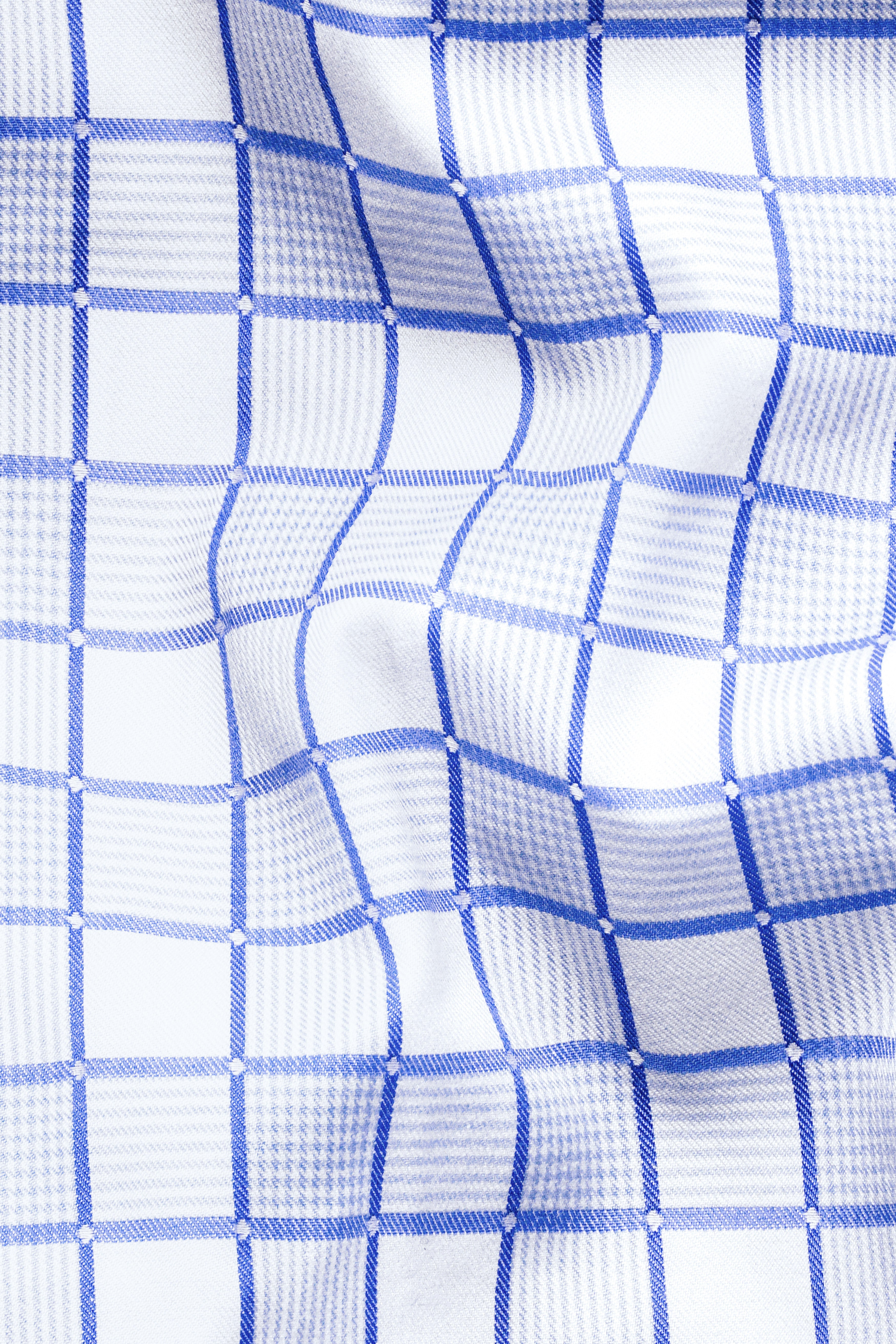 Bright White and Mirage Blue Gingham Twill Premium Cotton ShirtBright White and Mirage Blue Gingham Twill Premium Cotton Shirt