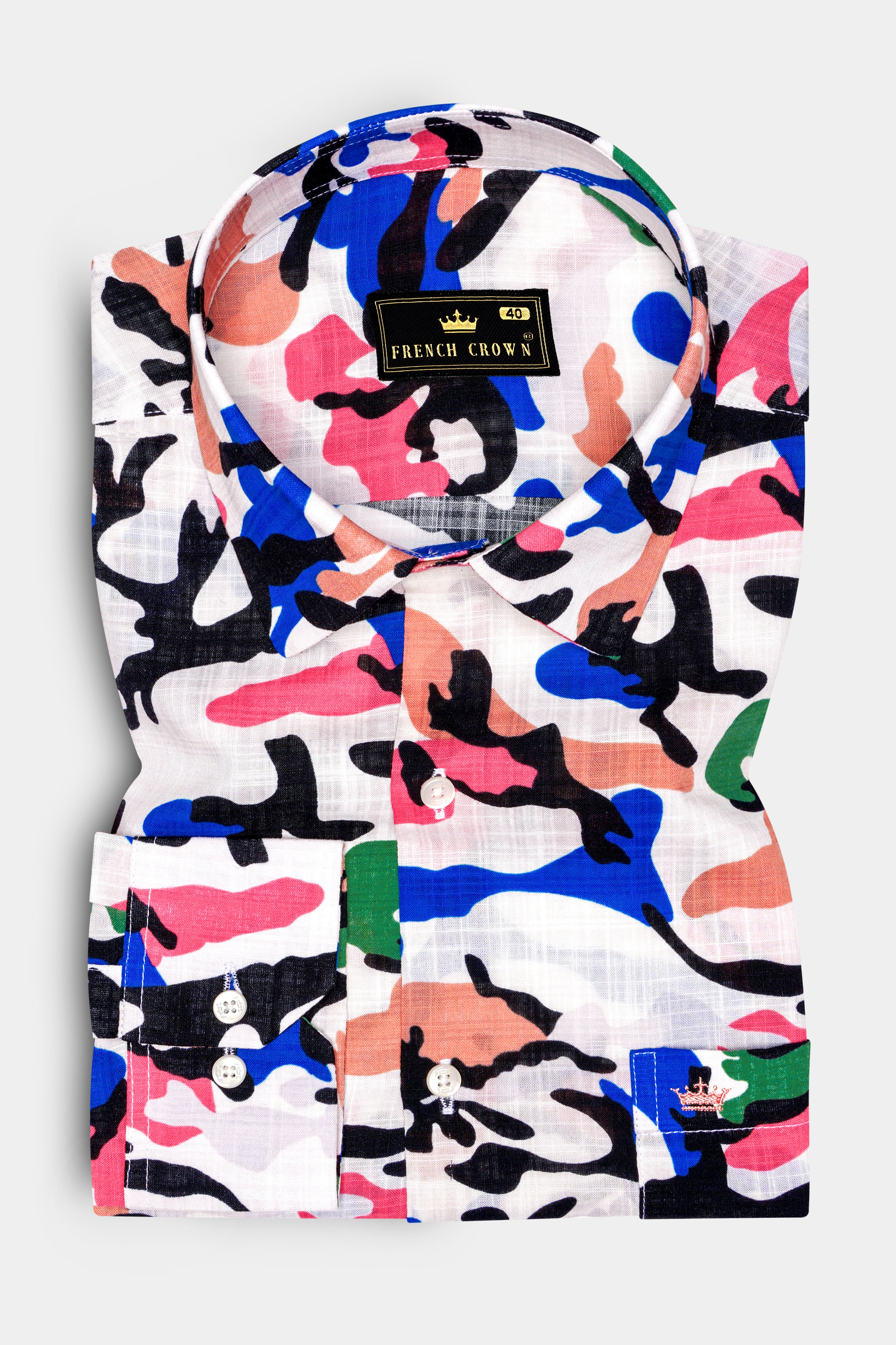 Spectra Green with Kabul Brown Camouflage Printed Royal Oxford Shirt