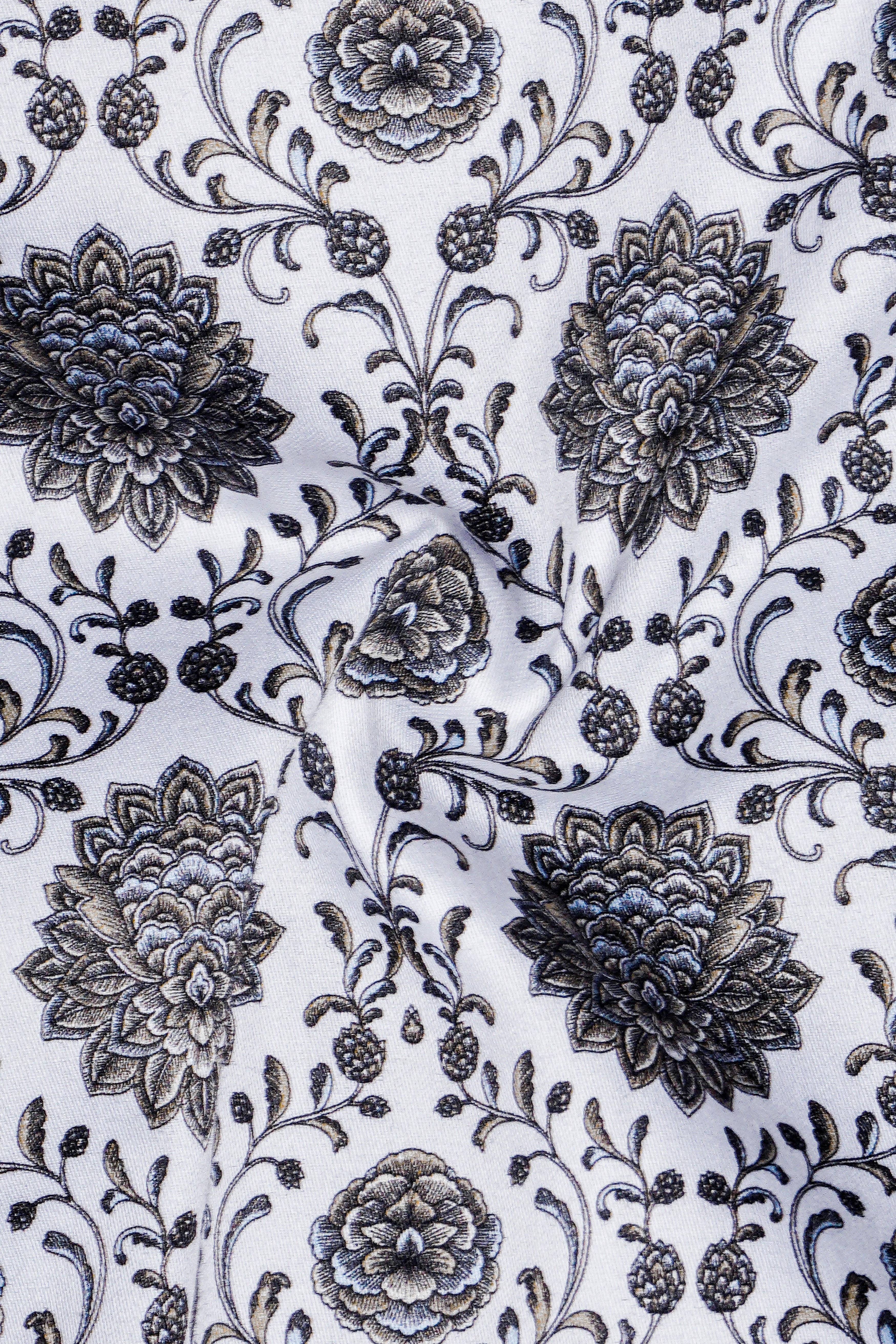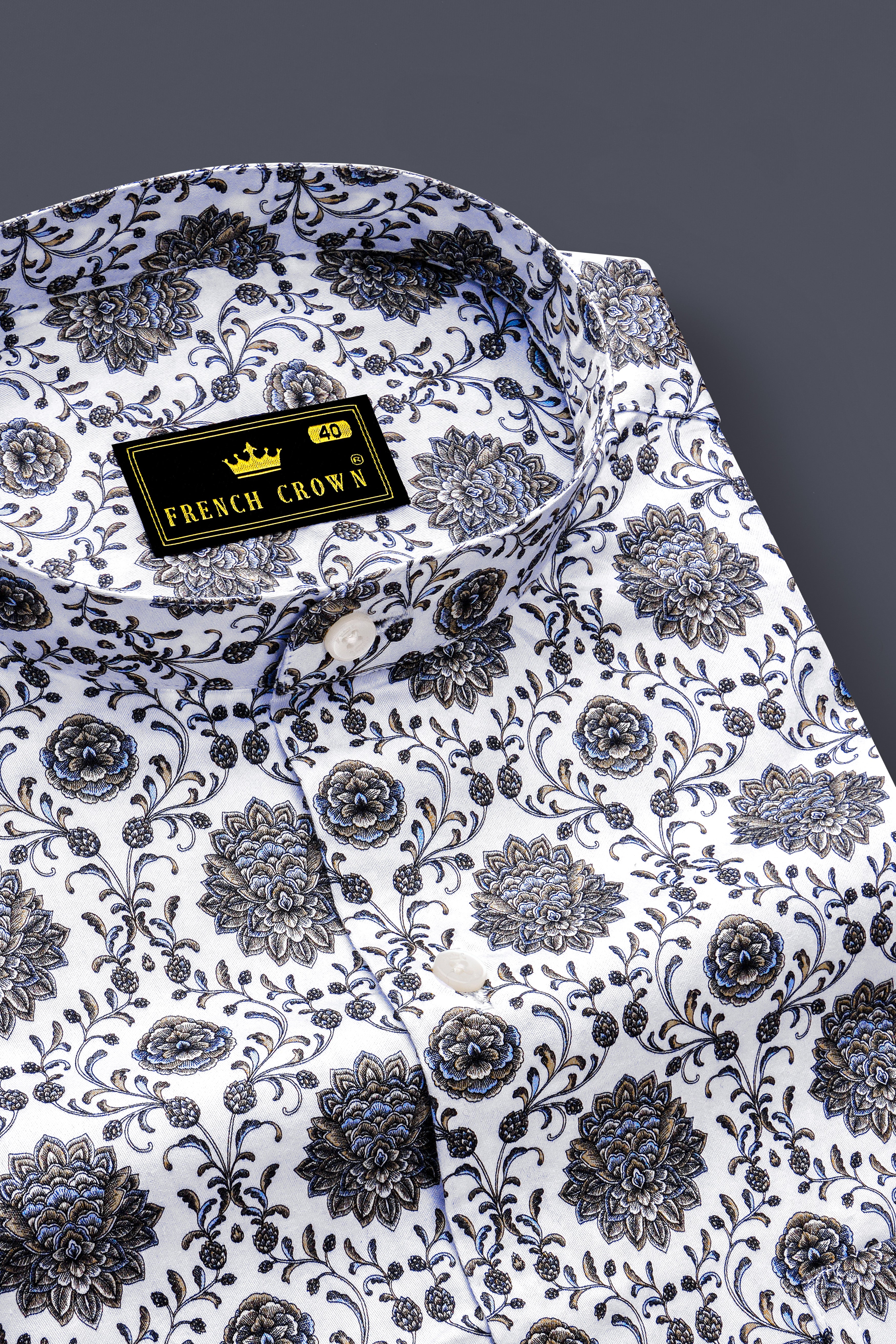 Bright White with Multicolour Leaves Printed Royal Oxford ShirtBright White with Multicolour Leaves Printed Royal Oxford Shirt