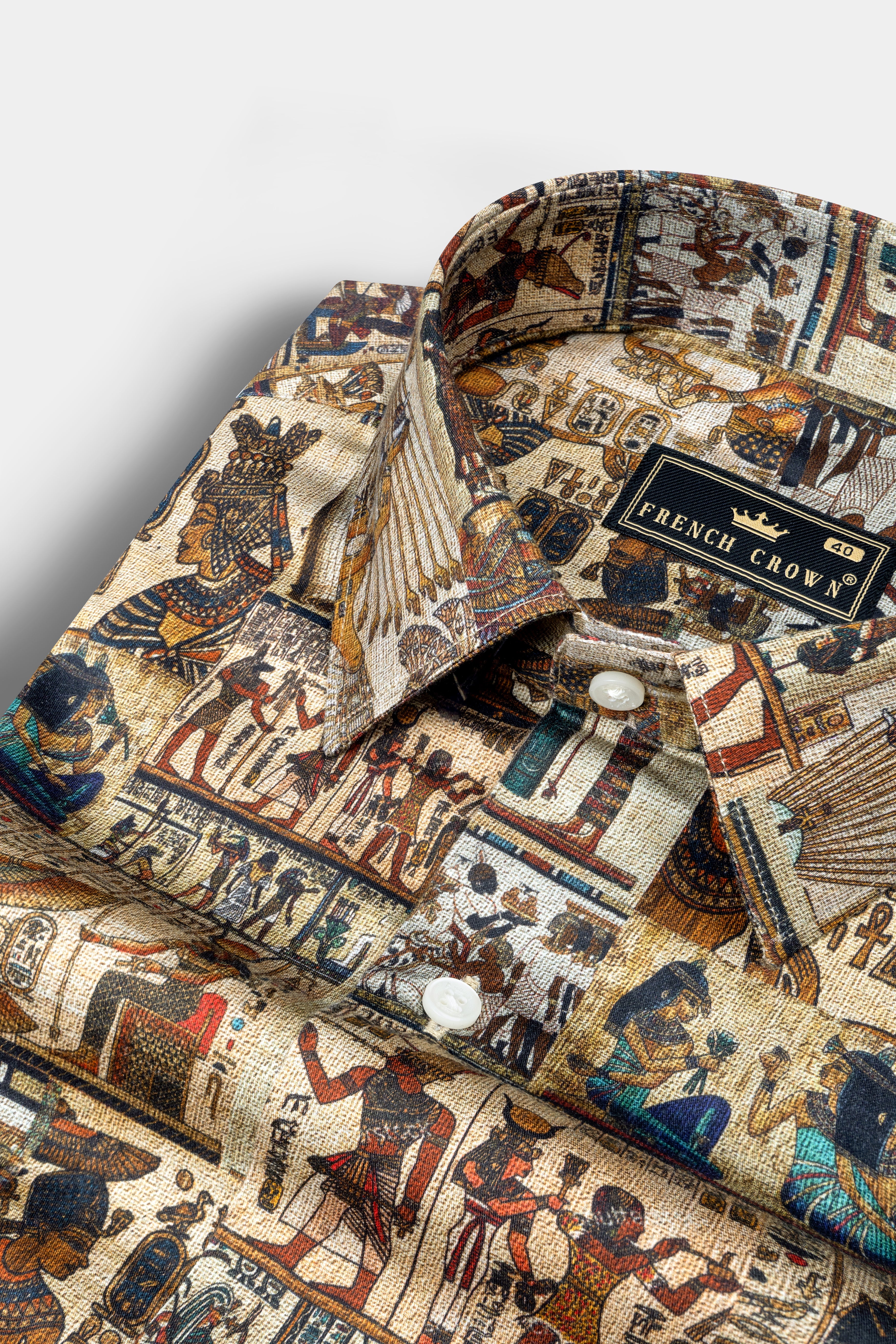 Creamed-Scotch Mist Cream Printed Dobby Textured Premium Giza Cotton Semi Formal ShirtCreamed-Scotch Mist Cream Printed Dobby Textured Premium Giza Cotton Semi Formal Shirt