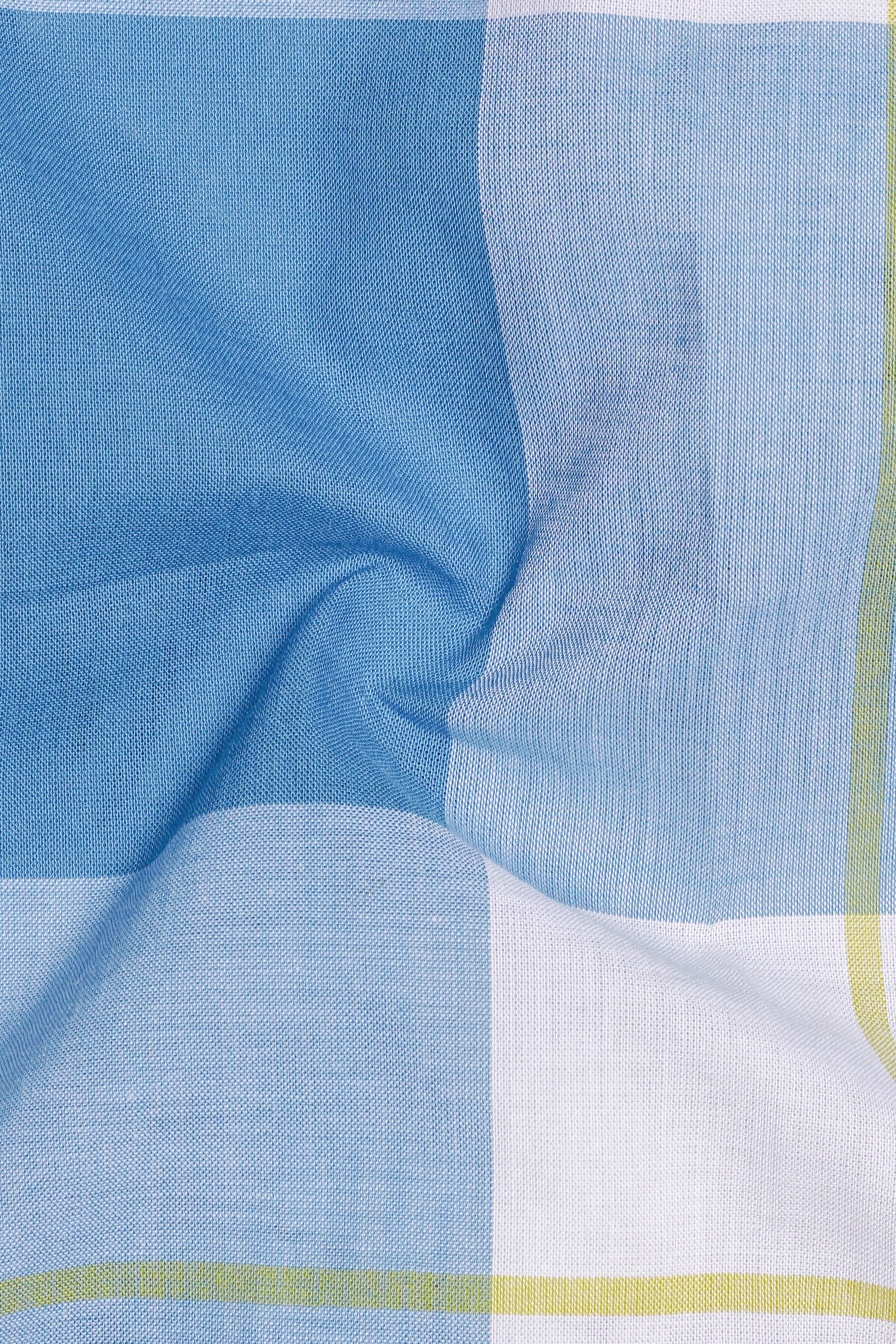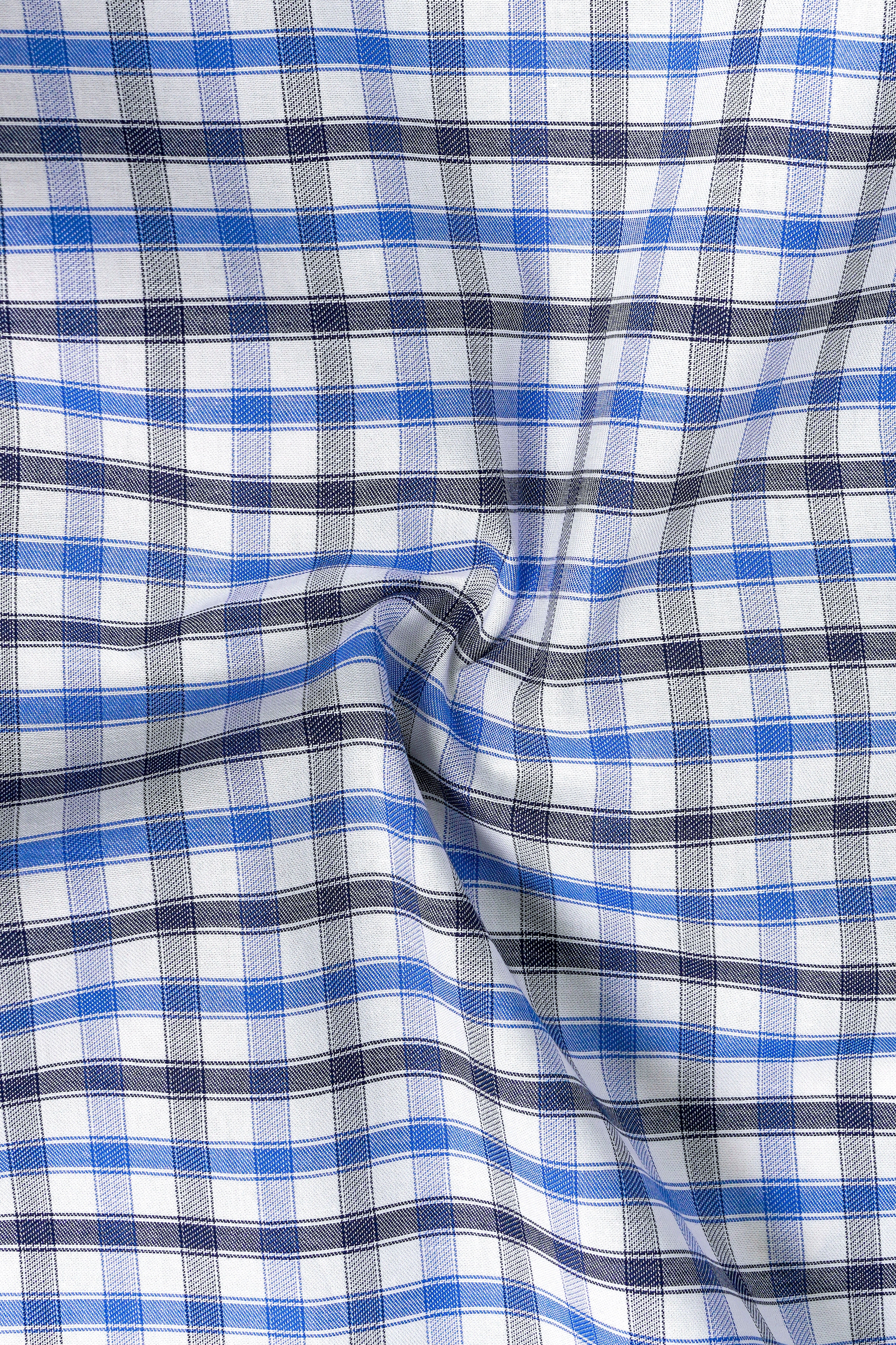 Teal Blue and White Checked Premium Cotton ShirtTeal Blue and White Checked Premium Cotton Shirt