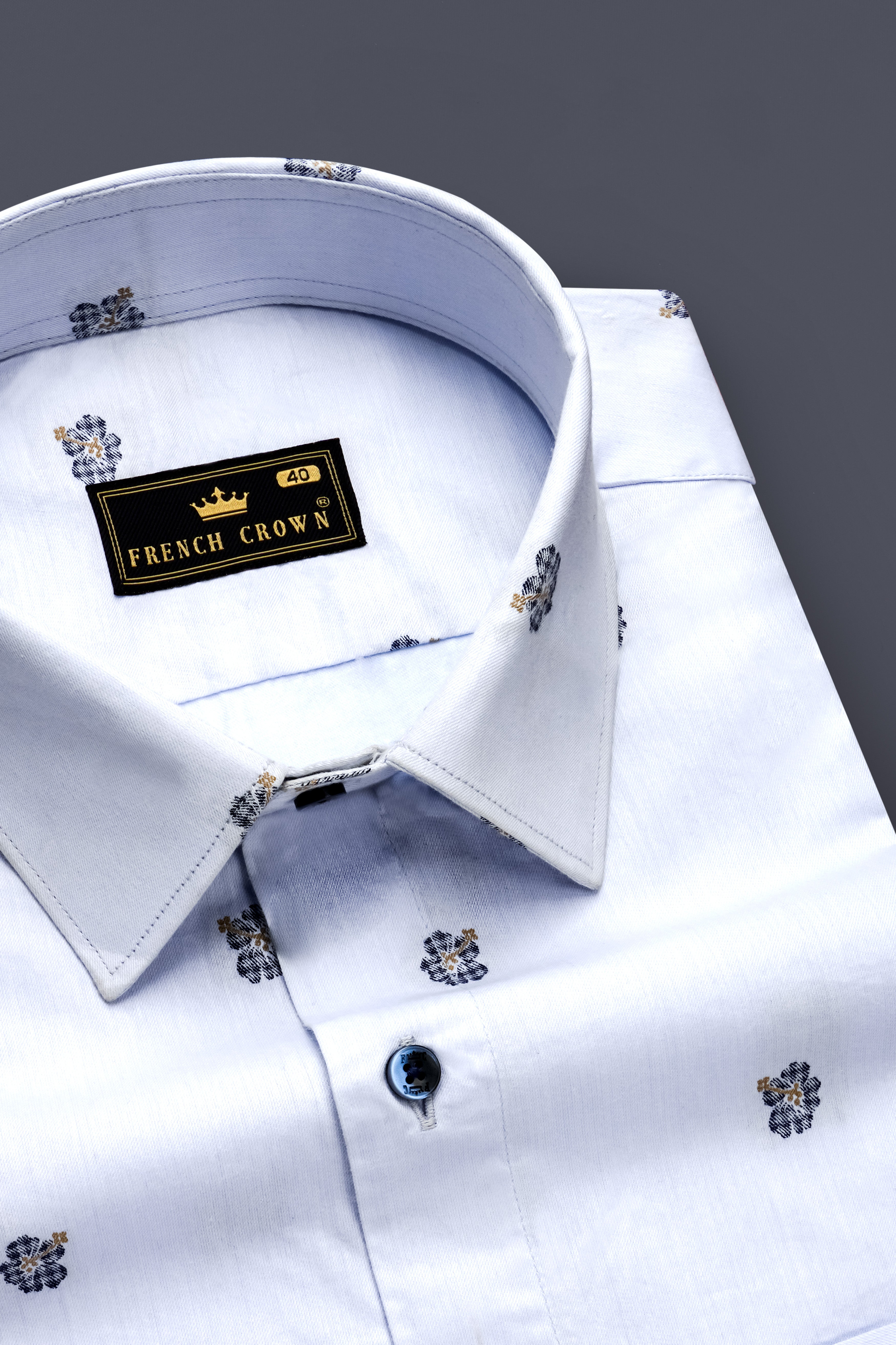 Lilaysh-Periwinkle Blue And Bright White Paisleys Printed Chambray Premium Cotton Casual Kurta ShirtLilaysh-Periwinkle Blue And Bright White Paisleys Printed Chambray Premium Cotton Casual Kurta Shirt