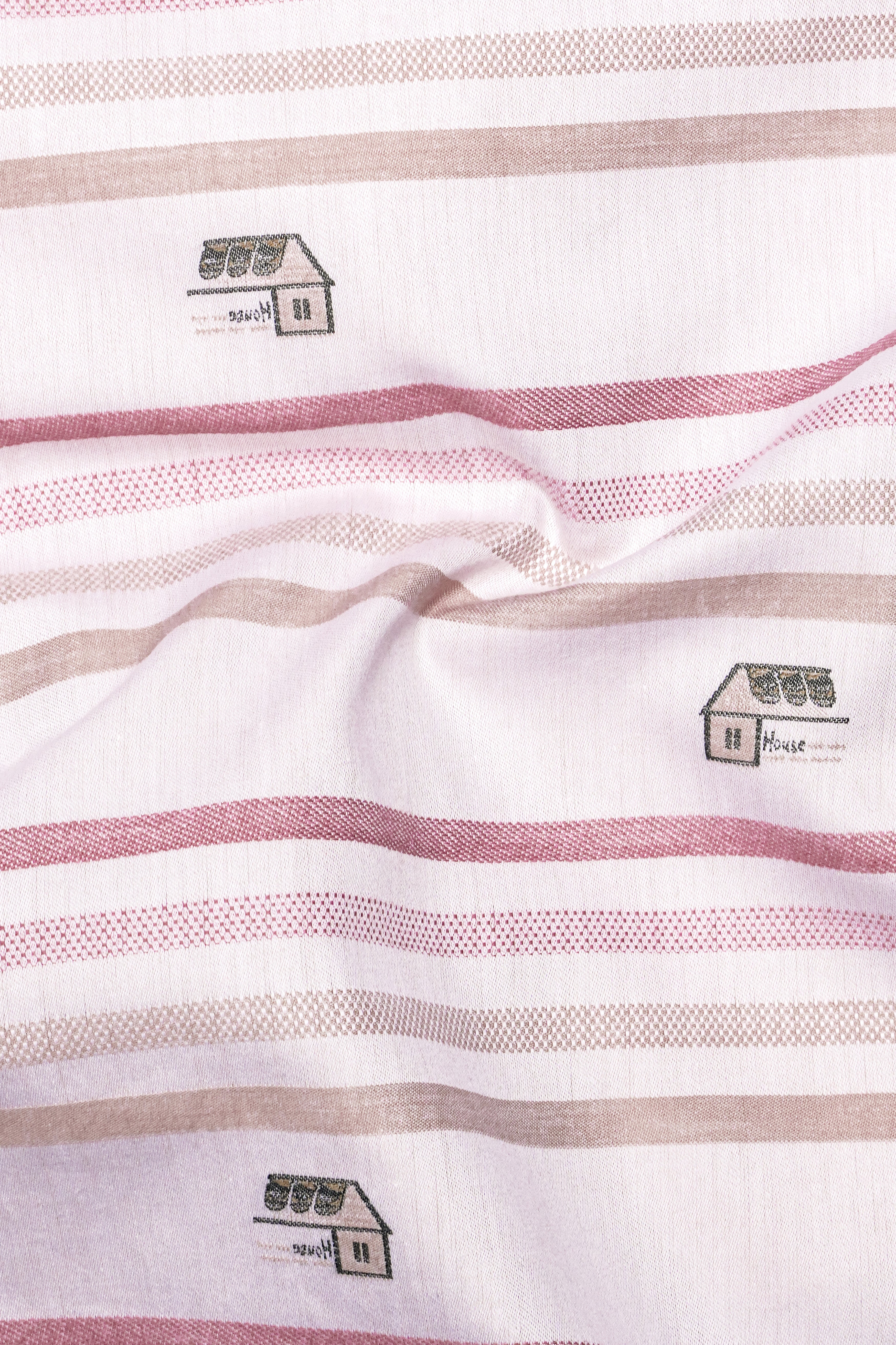 Rosy Prim-Turkish Pink Striped Jacquard Textured Premium Cotton Dress Shirt