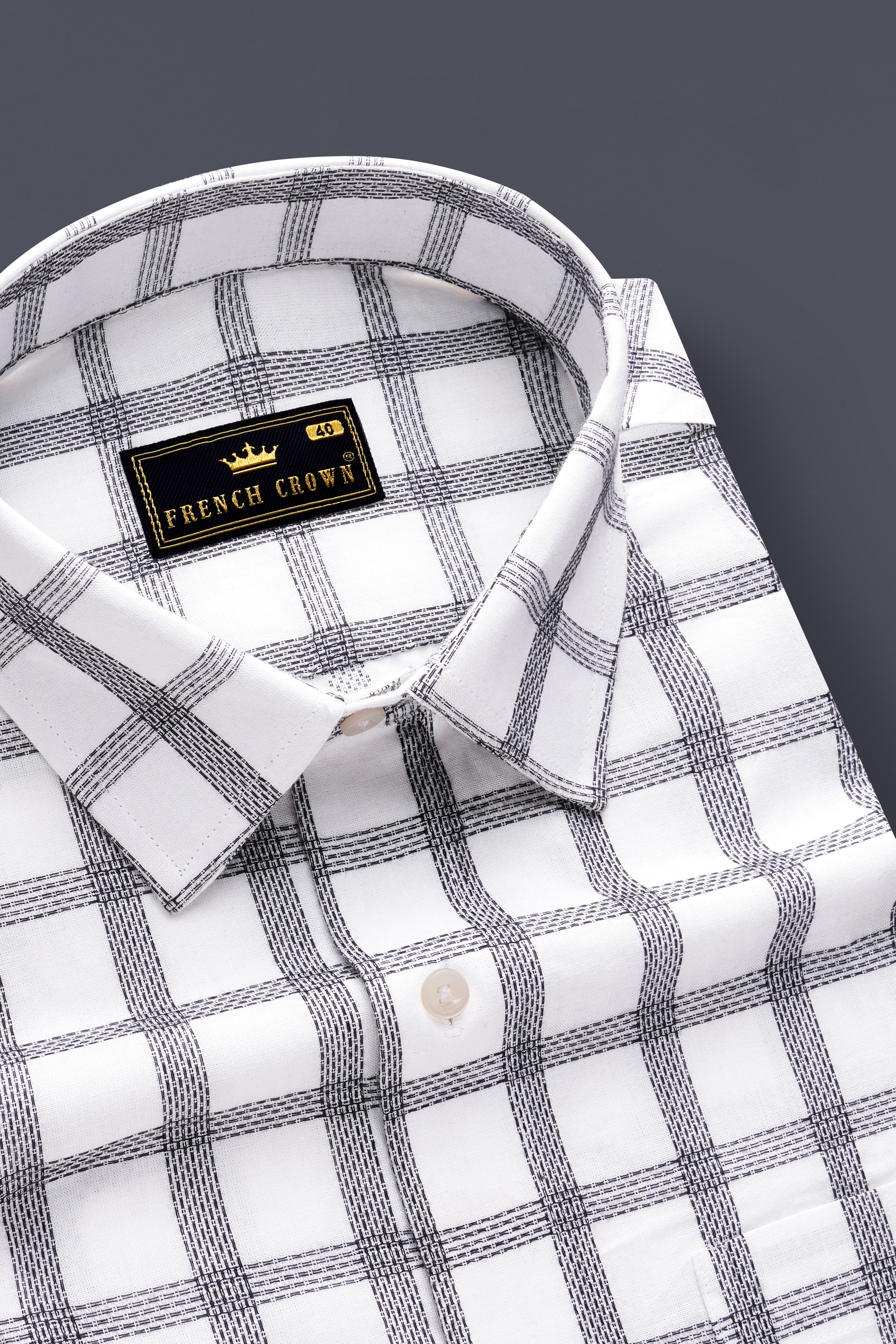 Ivory Noir-Bright White And Jade Black Plaid Jacquard Textured Premium Cotton Dress ShirtIvory Noir-Bright White And Jade Black Plaid Jacquard Textured Premium Cotton Dress Shirt