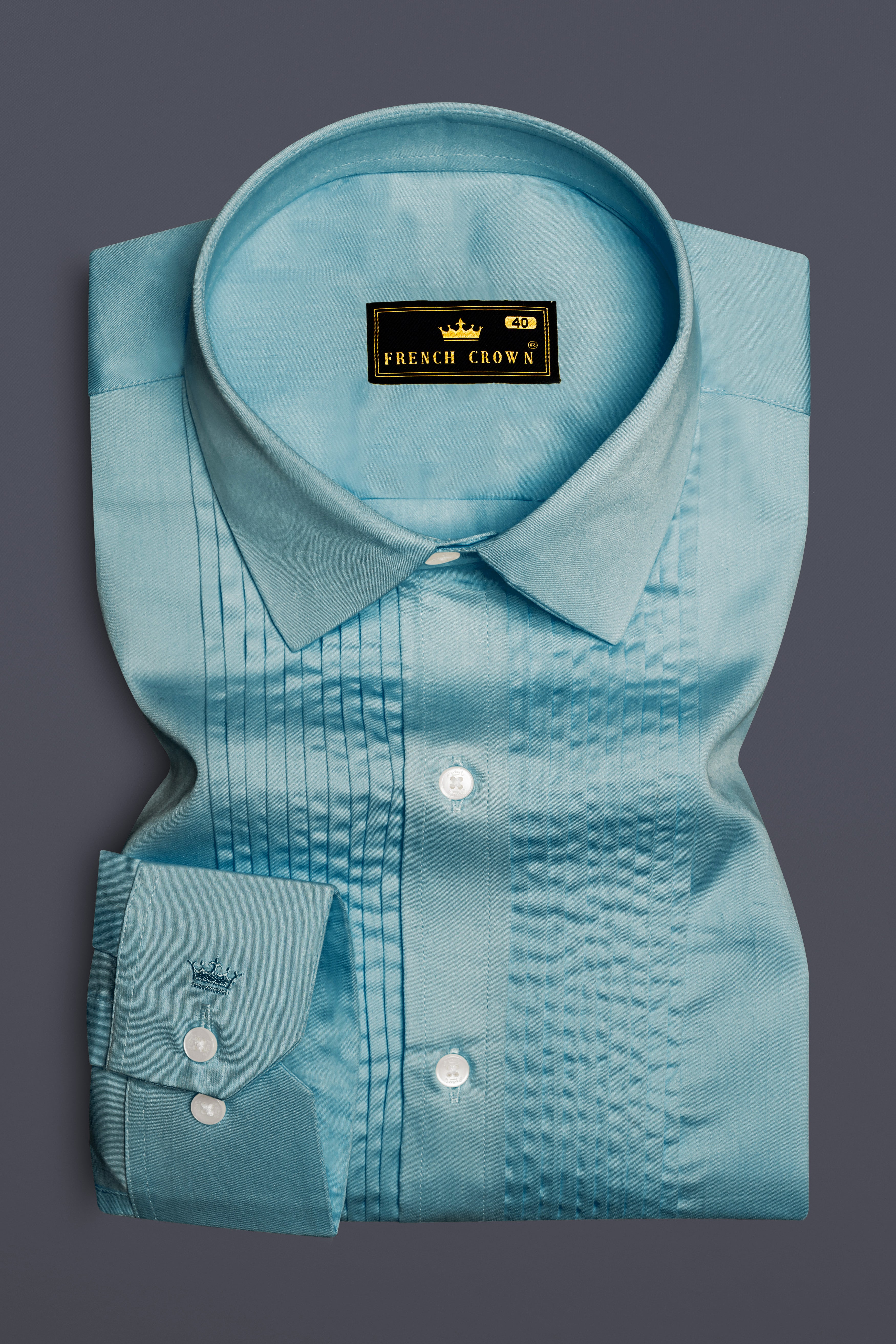 Azure Mist-Cyan Opaque Blue Subtle Sheen Super Soft Premium Cotton Tuxedo Shirt