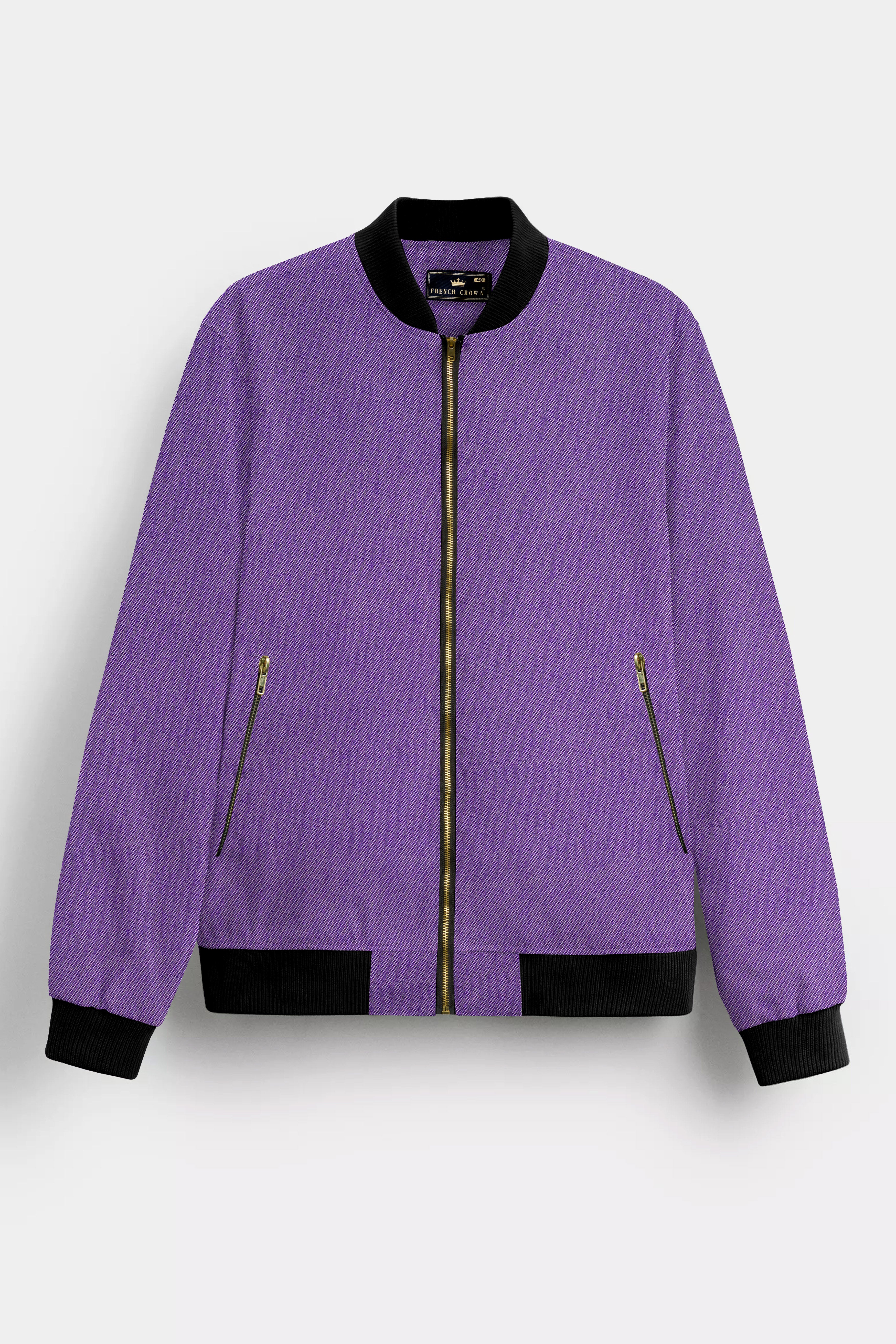 Minsk Purple Textured Premium Cotton Bomber JacketMinsk Purple Textured Premium Cotton Bomber Jacket