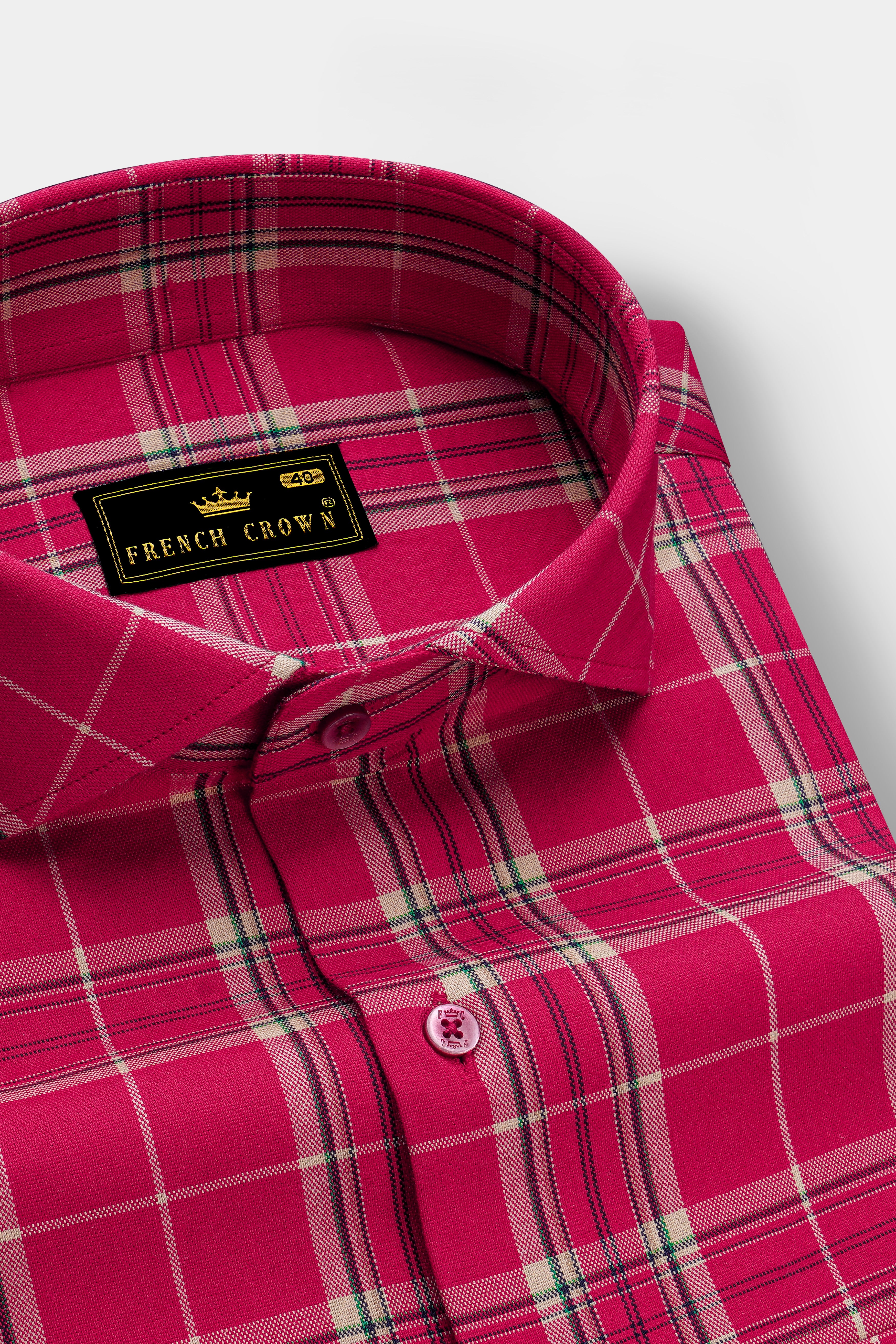 Wine with Navy Checks Patterned Giza Cotton shirt