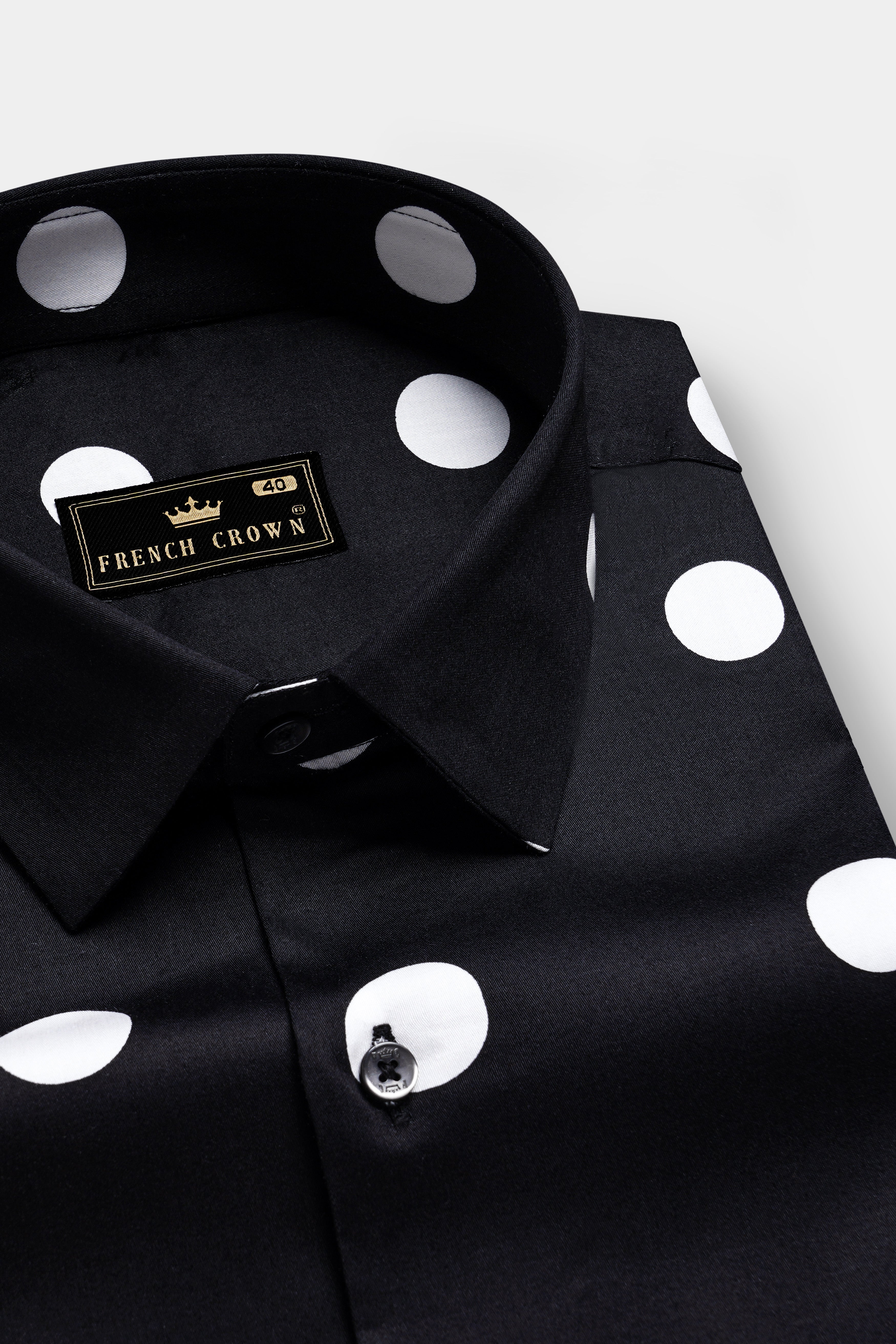 Jade Black and White Polka Dots Printed Premium Cotton ShirtJade Black and White Polka Dots Printed Premium Cotton Shirt