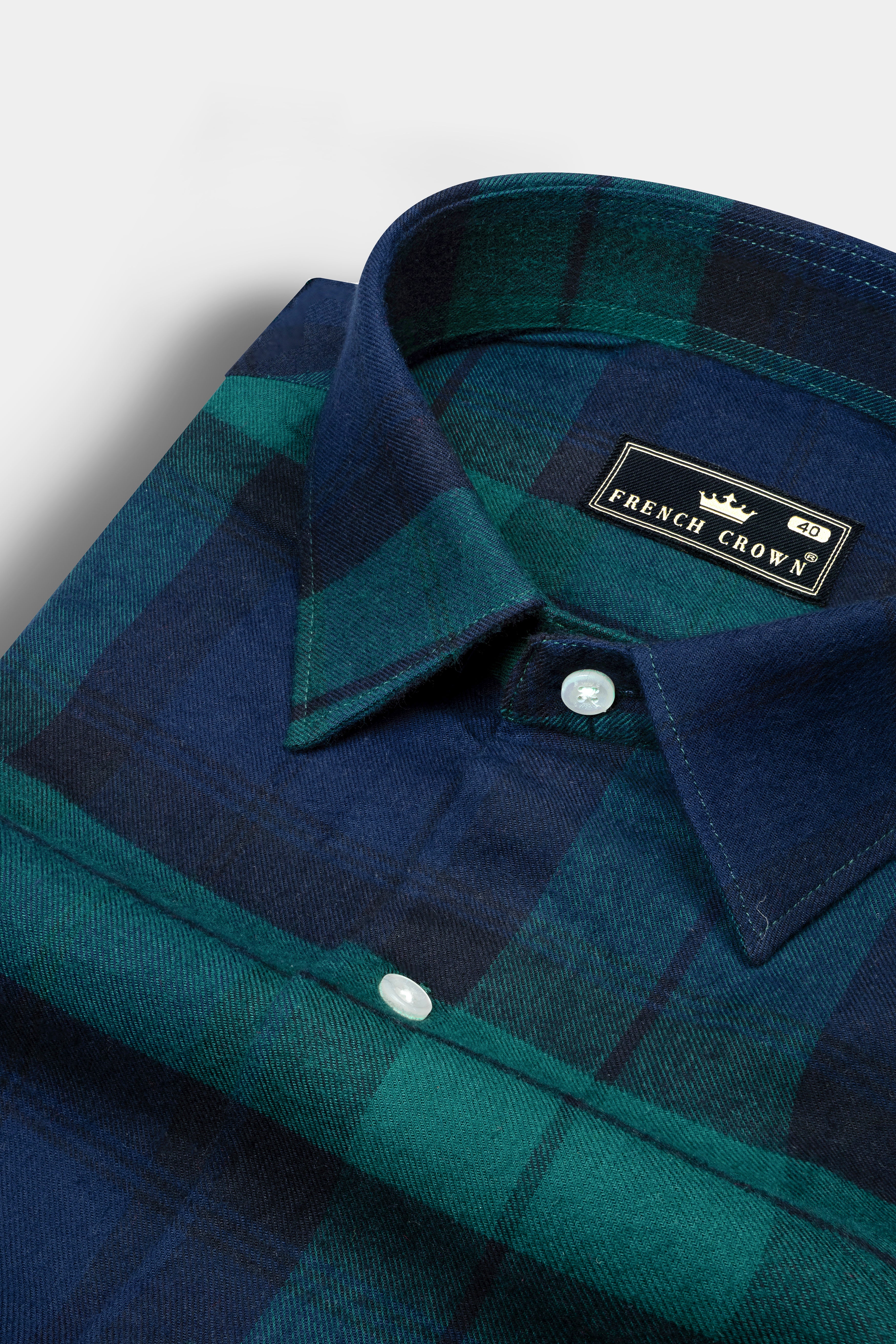 Sycamore Olive with Mirage Blue and Mercury White Plaid Twill Premium Cotton Shirt