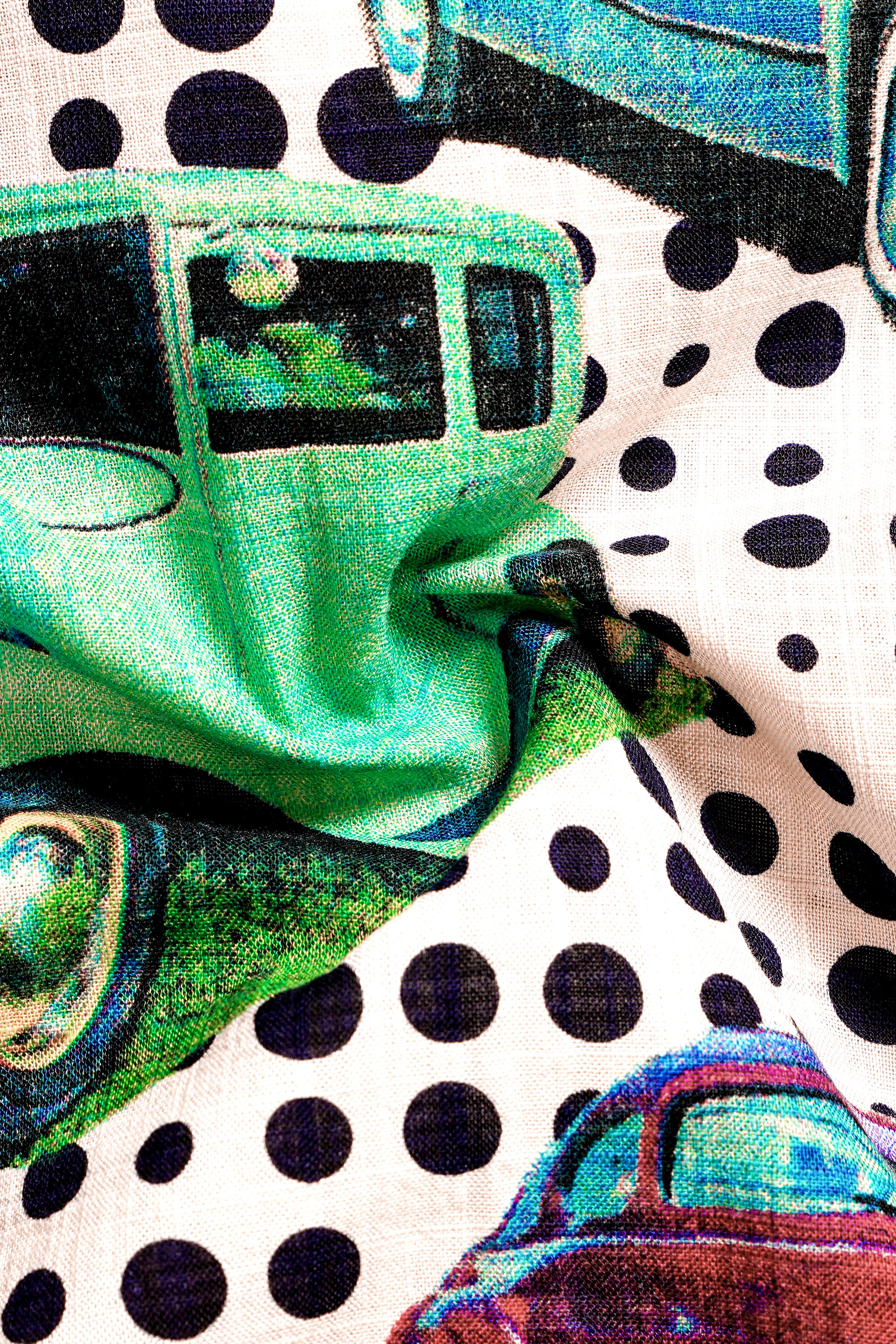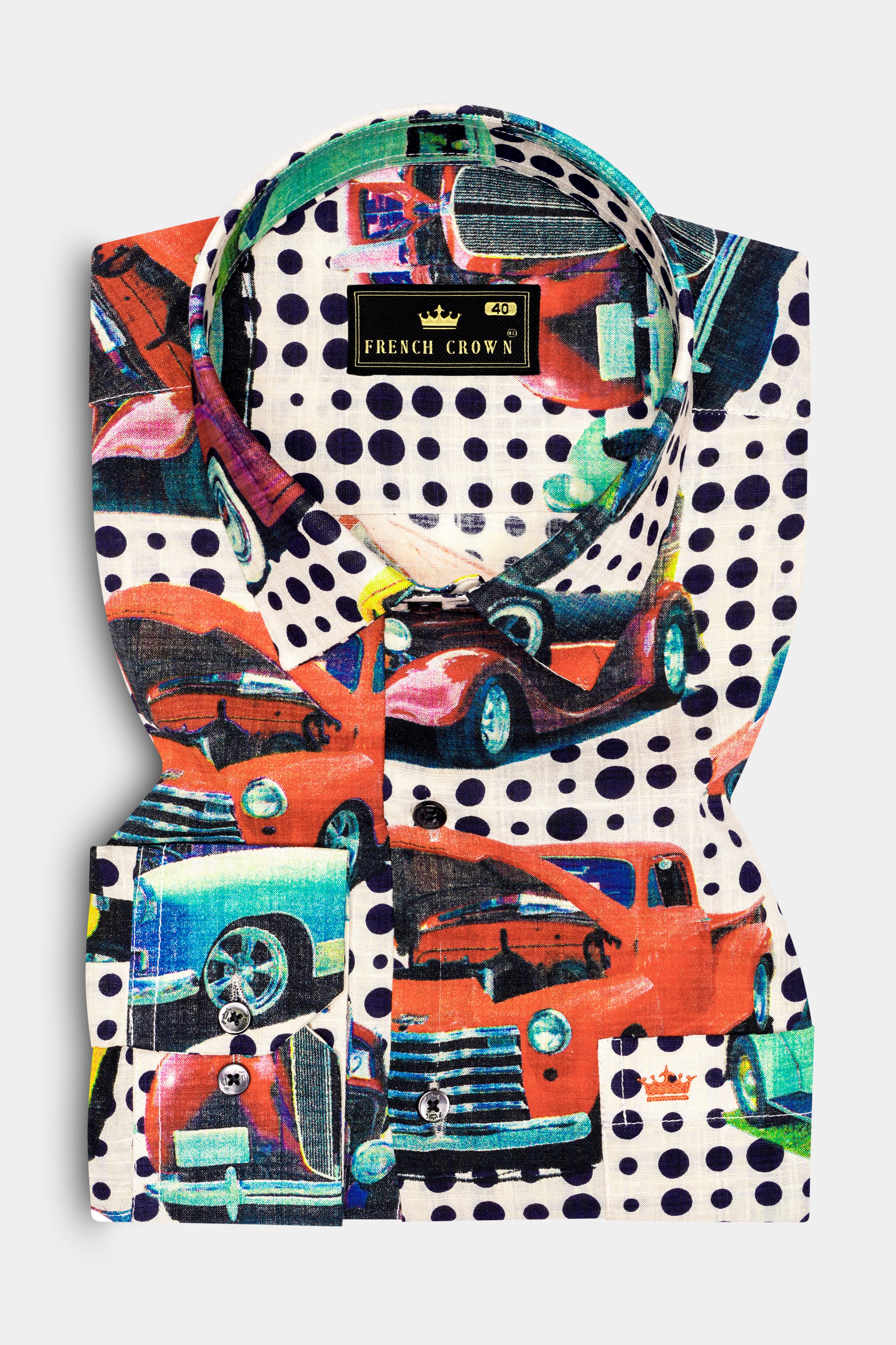 CruiseVibe-Merino Cream and Grapefruit Red Car Printed Lightweight Premium Cotton Multicolor Casual ShirtCruiseVibe-Merino Cream and Grapefruit Red Car Printed Lightweight Premium Cotton Multicolor Casual Shirt