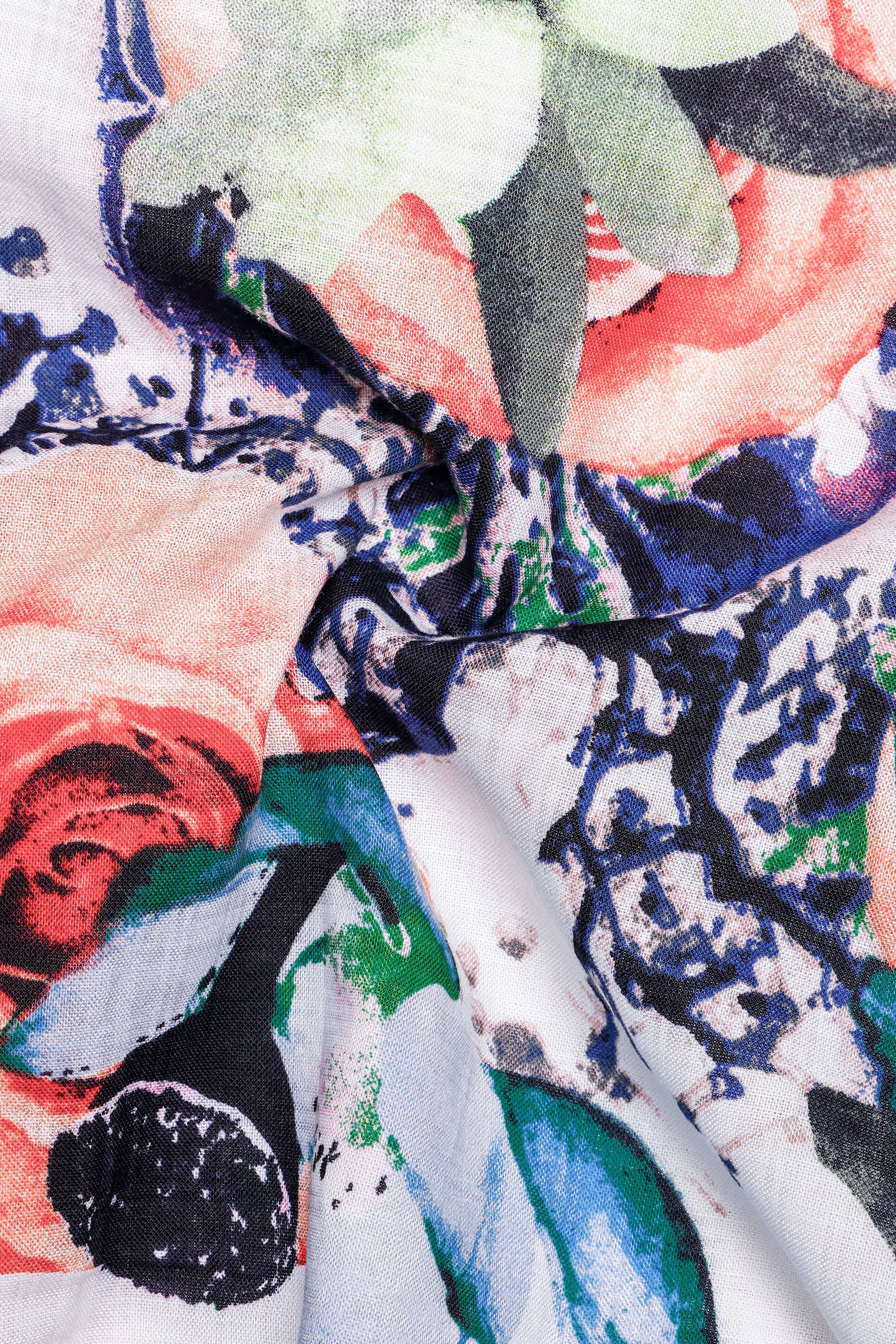 Rosé Whisper-Bright White with Tacao Peach Rose Printed Lightweight Premium Cotton Multicolor Casual ShirtRosé Whisper-Bright White with Tacao Peach Rose Printed Lightweight Premium Cotton Multicolor Casual Shirt