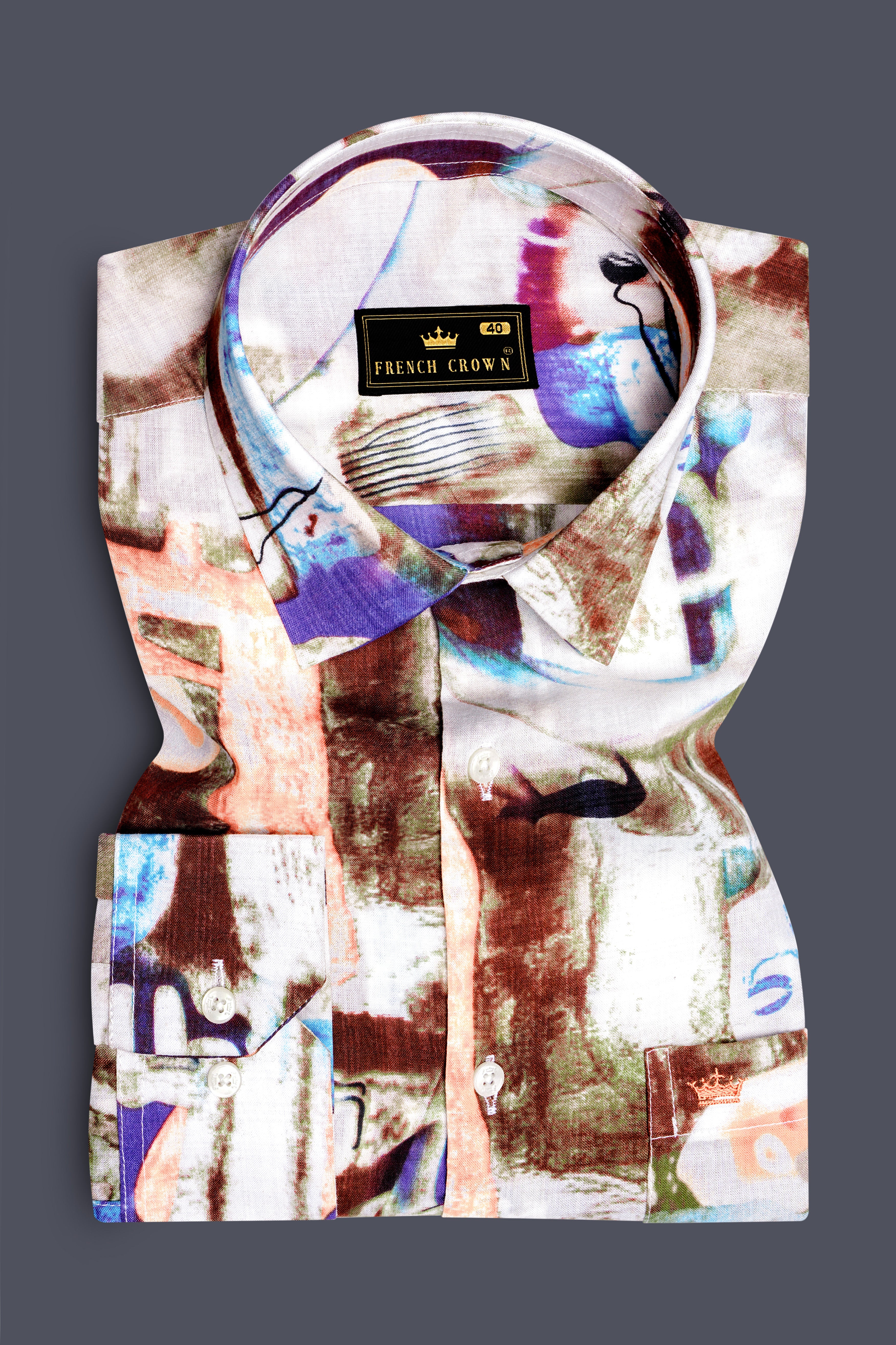 Bizarre Spice-Bizarre Cream with Nutmeg Brown Funky Printed Lightweight Premium Cotton Multicolor Casual ShirtBizarre Spice-Bizarre Cream with Nutmeg Brown Funky Printed Lightweight Premium Cotton Multicolor Casual Shirt
