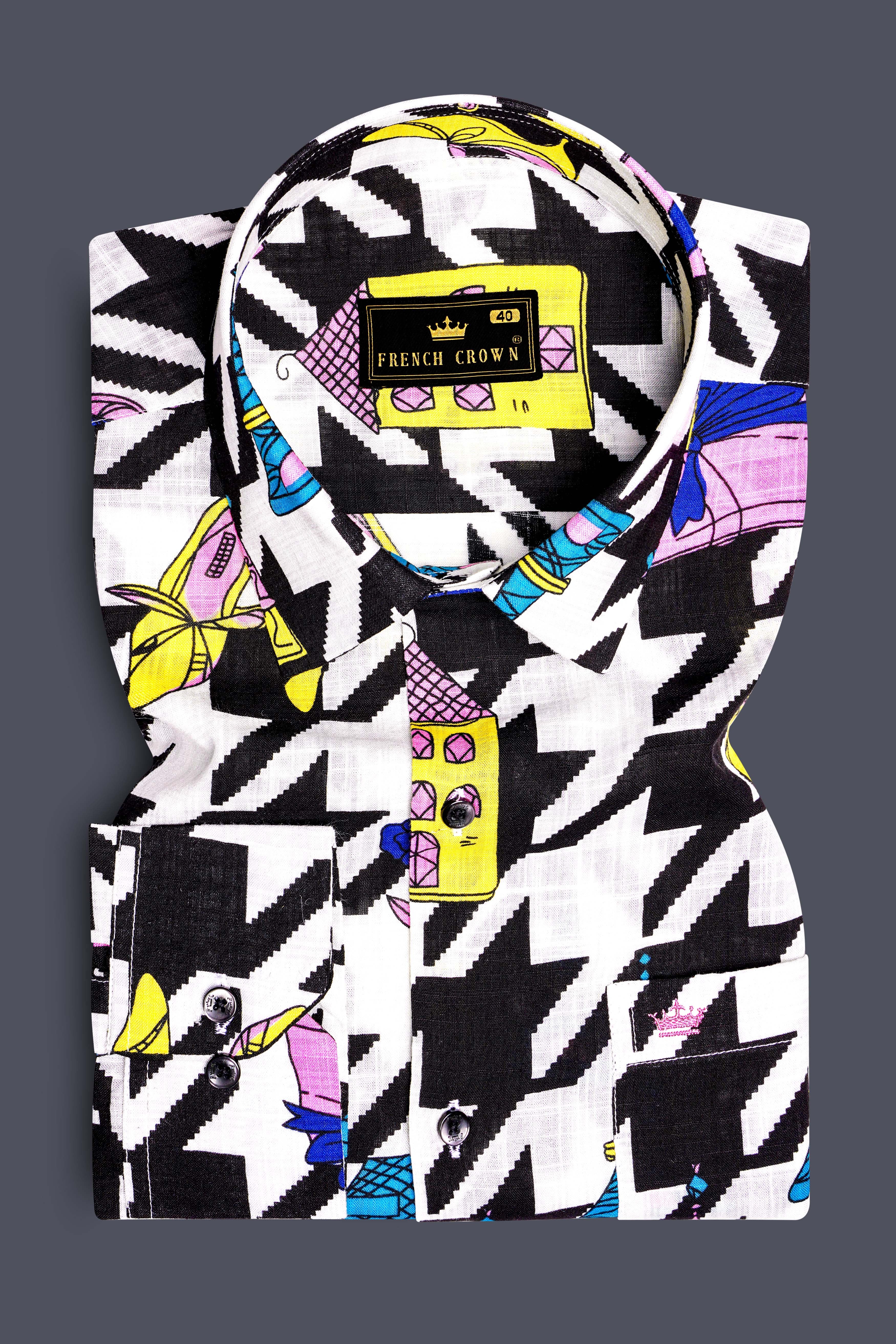 Lilac Thread-Black & White with Lavender Pink Herringbone Printed Lightweight Premium Cotton Multicolor Casual ShirtLilac Thread-Black & White with Lavender Pink Herringbone Printed Lightweight Premium Cotton Multicolor Casual Shirt