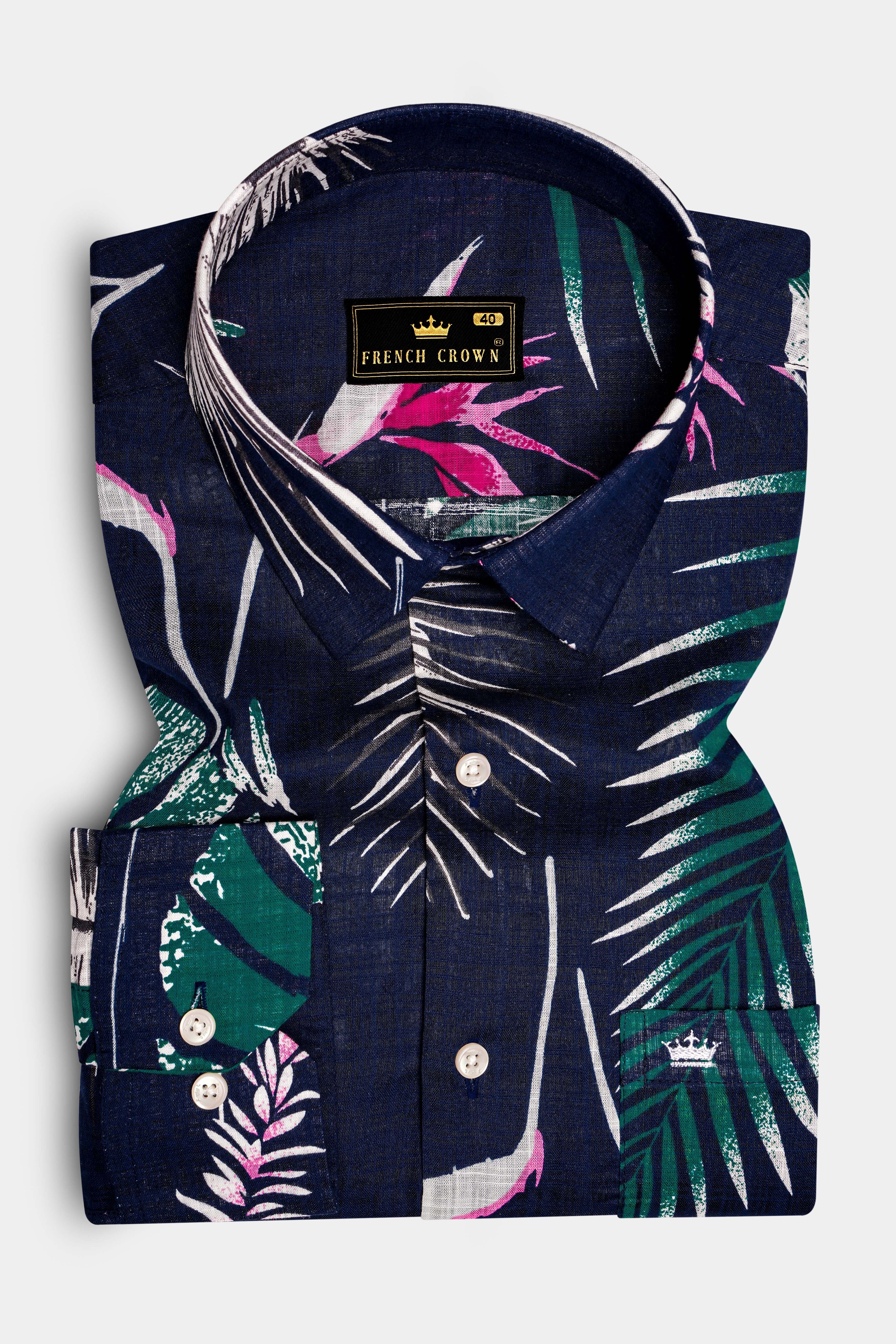 Moonlit Forest-Space Blue with Petrol Green Leaves Printed Lightweight Premium Cotton Casual ShirtMoonlit Forest-Space Blue with Petrol Green Leaves Printed Lightweight Premium Cotton Casual Shirt