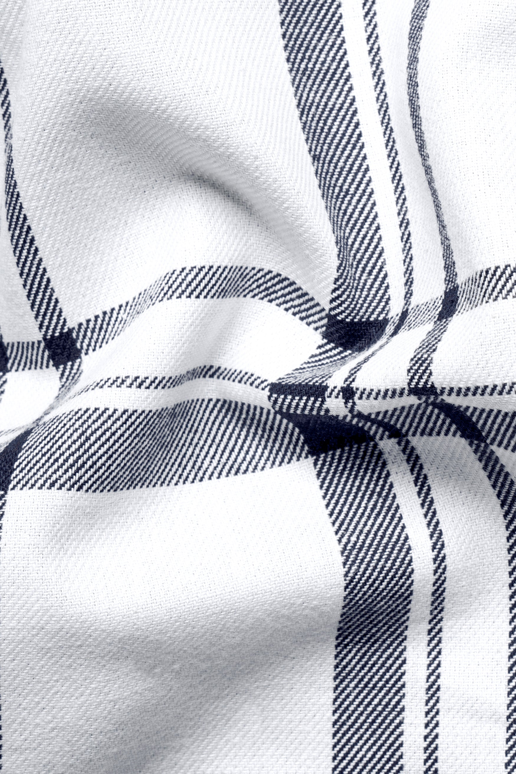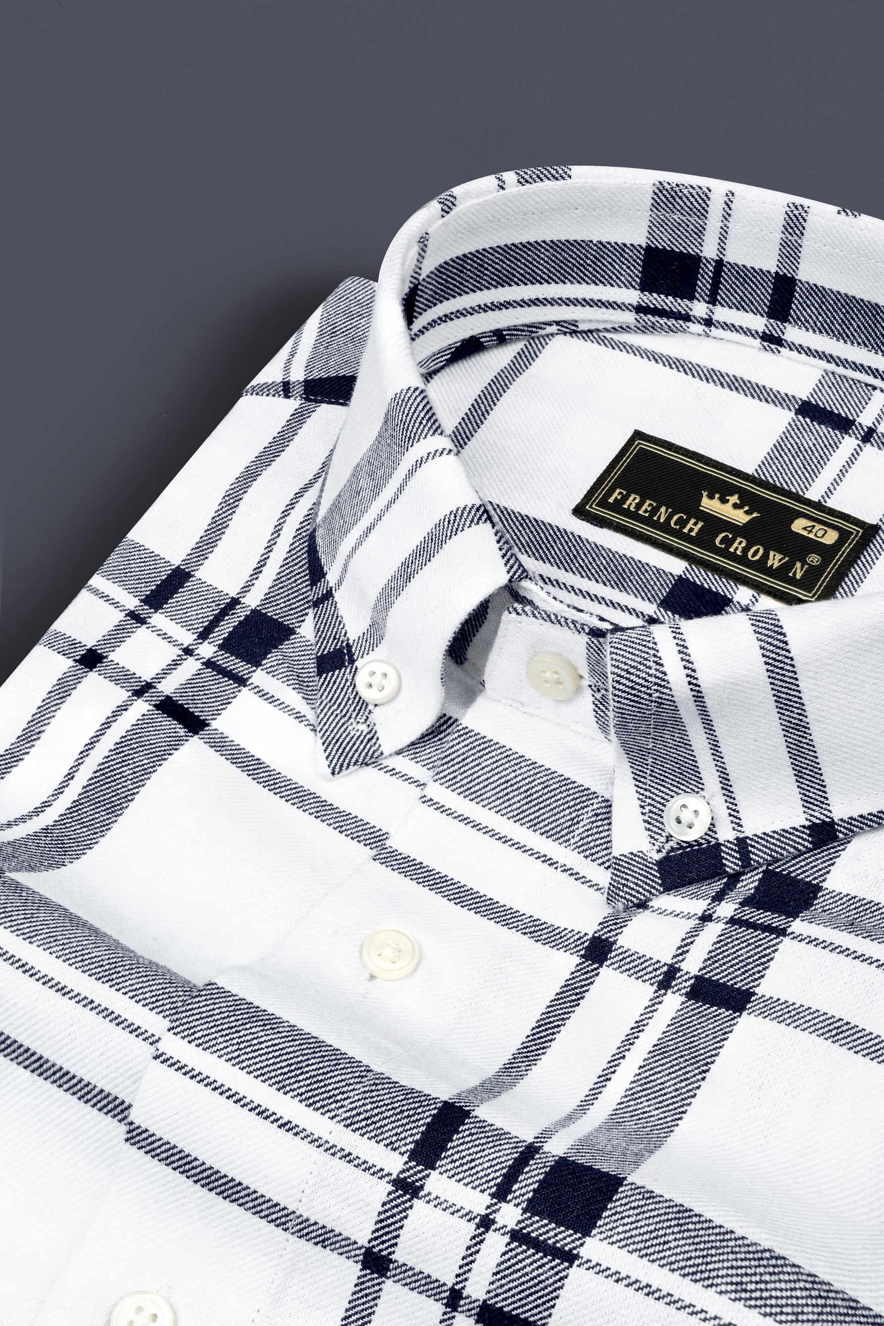 Bright White with Jaguar Dark Blue Plaid Flannel Shirt