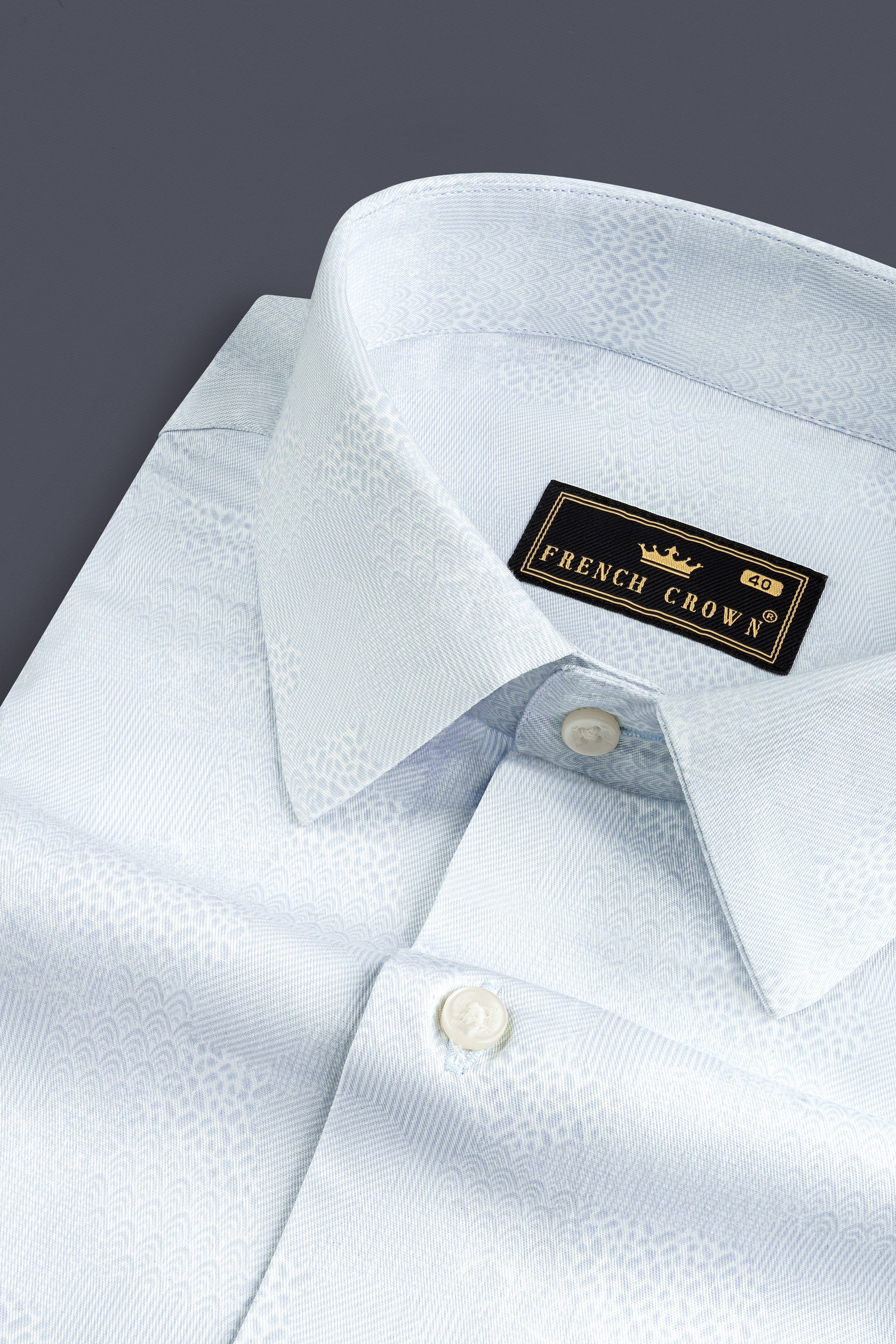 Angel Blue And Bright White Jacquard Textured Premium Cotton Shirt