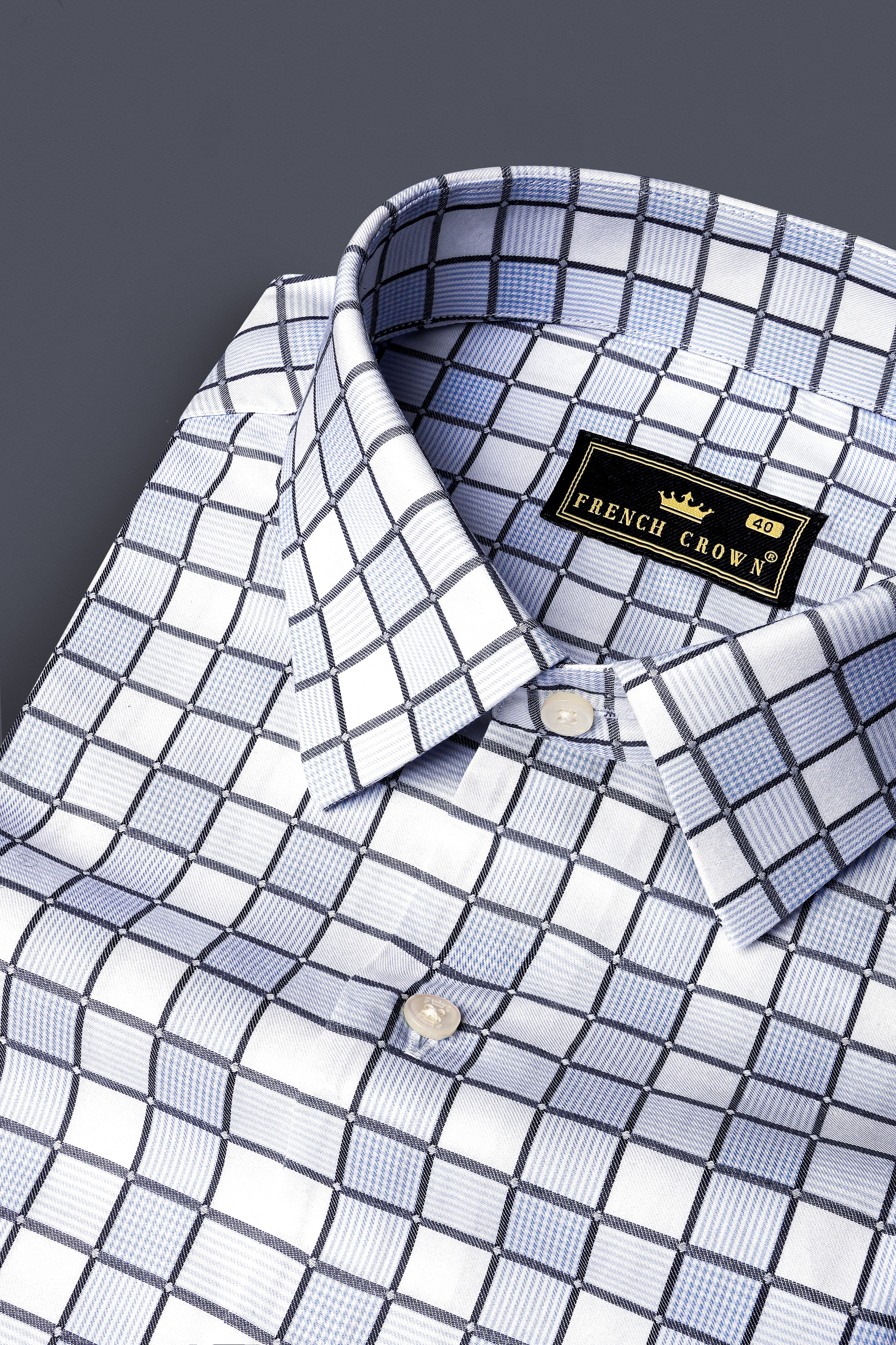 Spindle Blue And Bright White Plaid Twill Premium Cotton Shirt