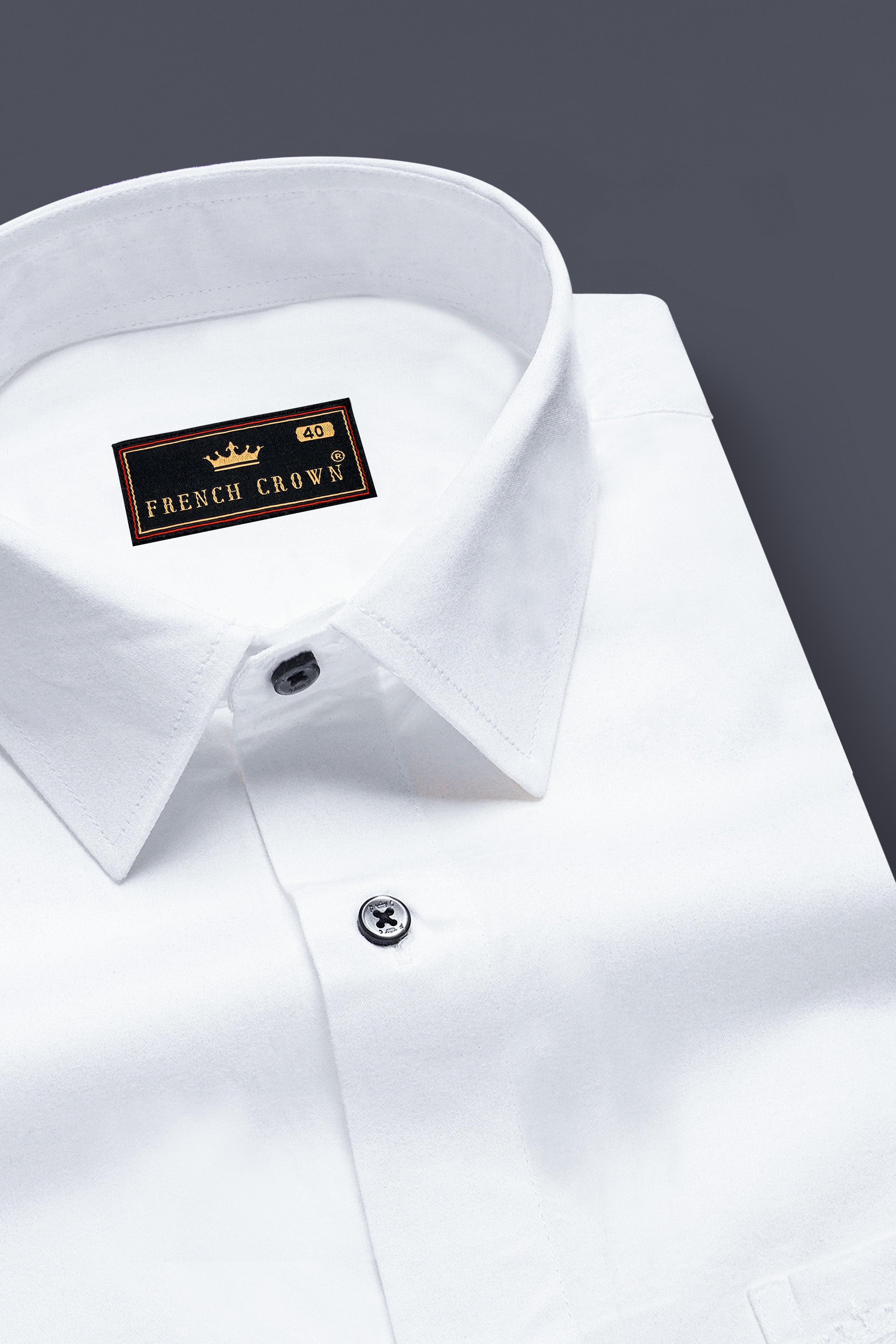 Bright White Subtle Sheen Super Soft Black Button Premium Cotton ShirtBright White Subtle Sheen Super Soft Black Button Premium Cotton Shirt