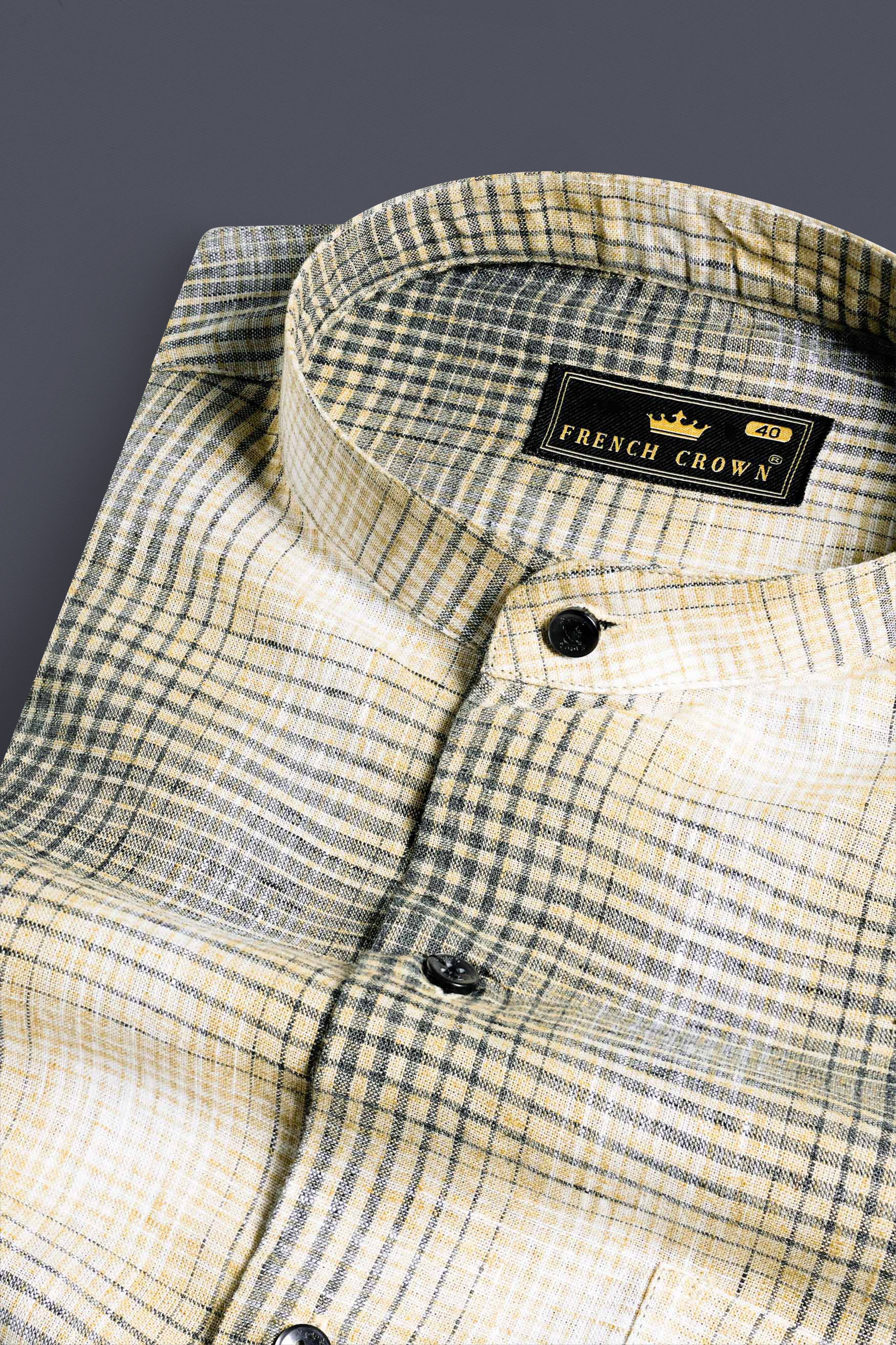 Chalky Brown and White Checkered Luxurious Linen ShirtChalky Brown and White Checkered Luxurious Linen Shirt
