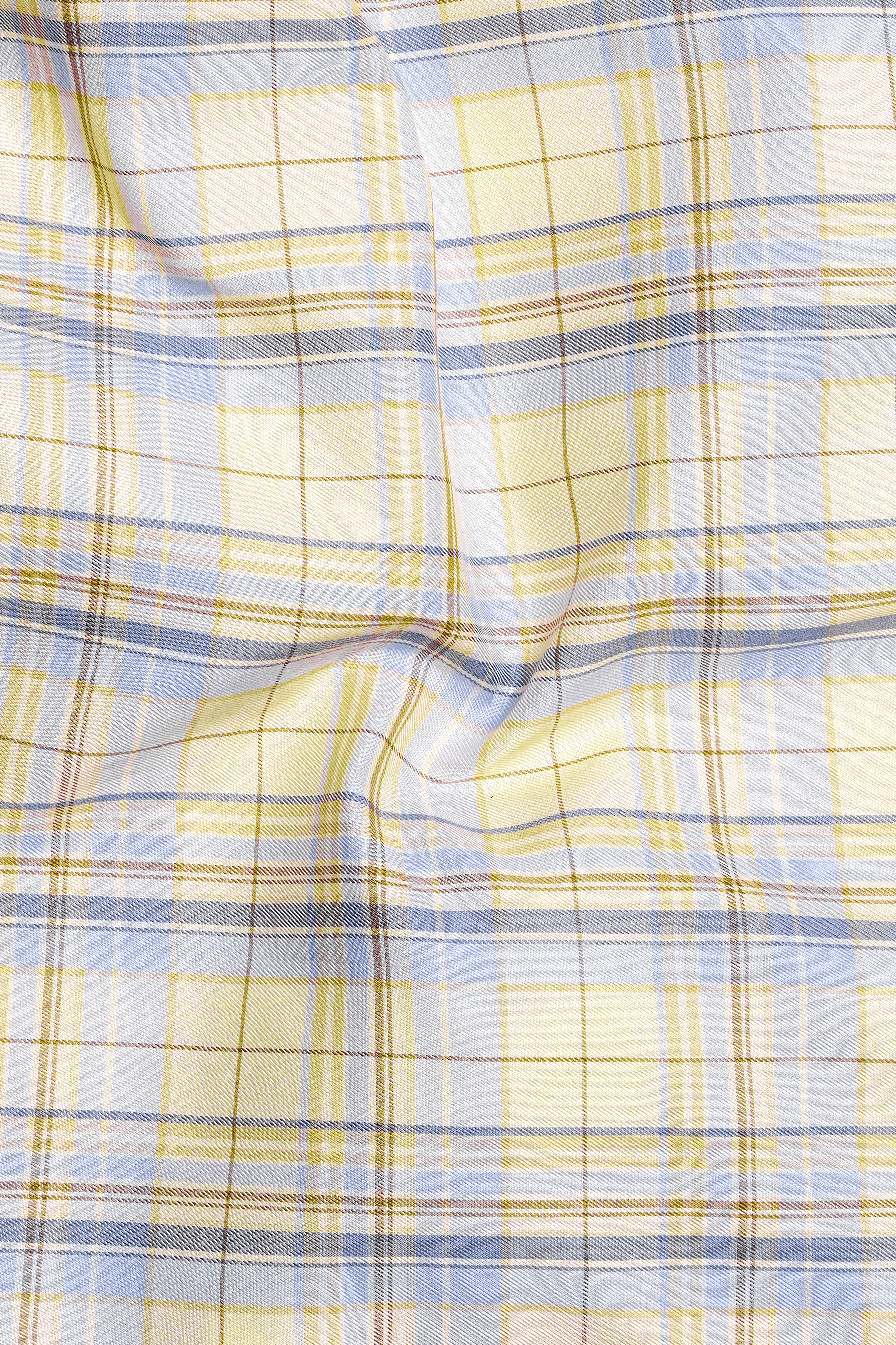 Off White with Haiti Blue Twill Plaid Premium Cotton Shirt