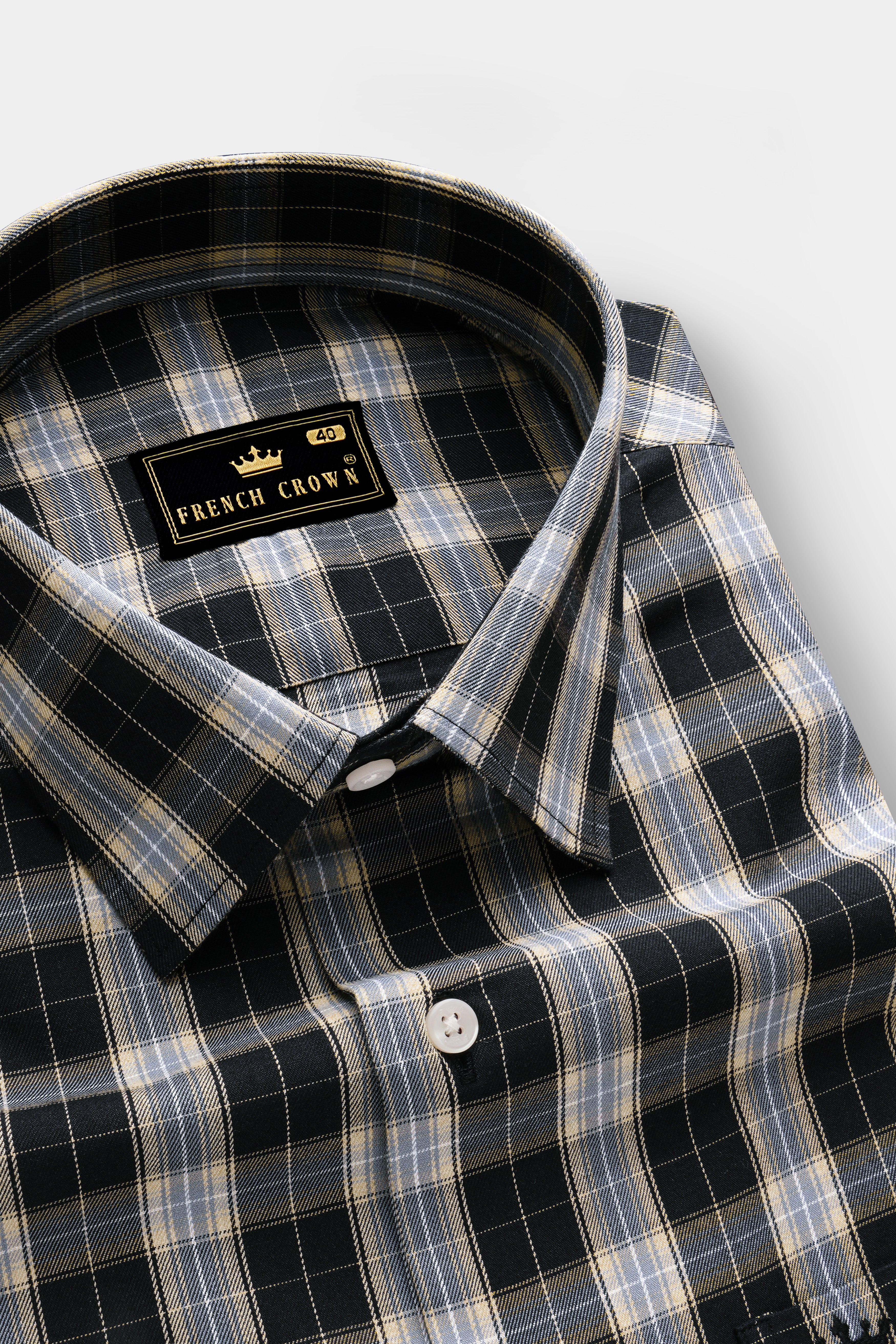 Glacier-Cinder Black And Wafer Cream Plaid Twill Premium Cotton Semi Formal ShirtGlacier-Cinder Black And Wafer Cream Plaid Twill Premium Cotton Semi Formal Shirt