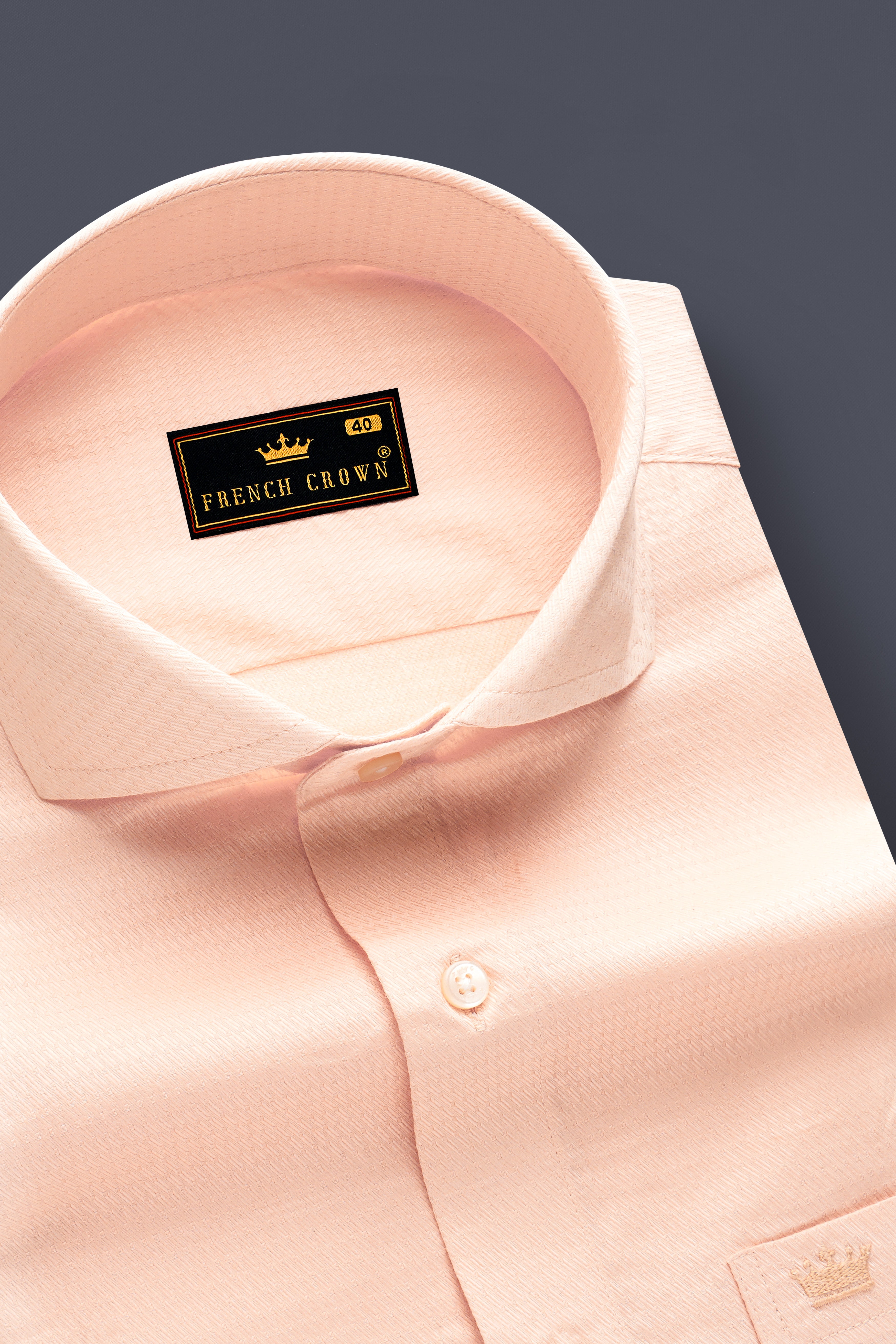 Melon Drift-Apricot Peach Dobby Textured Premium Giza Cotton Dress ShirtMelon Drift-Apricot Peach Dobby Textured Premium Giza Cotton Dress Shirt