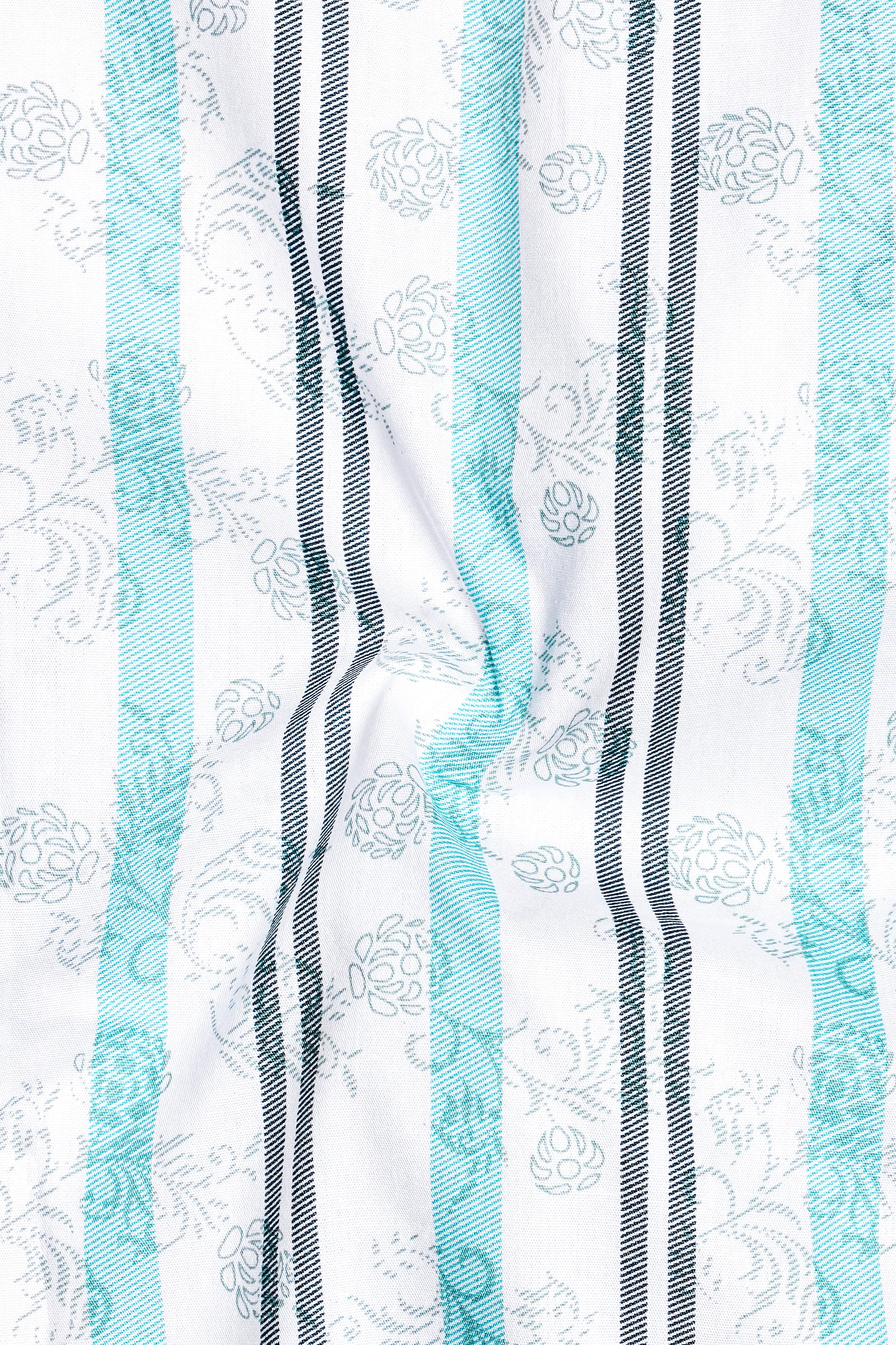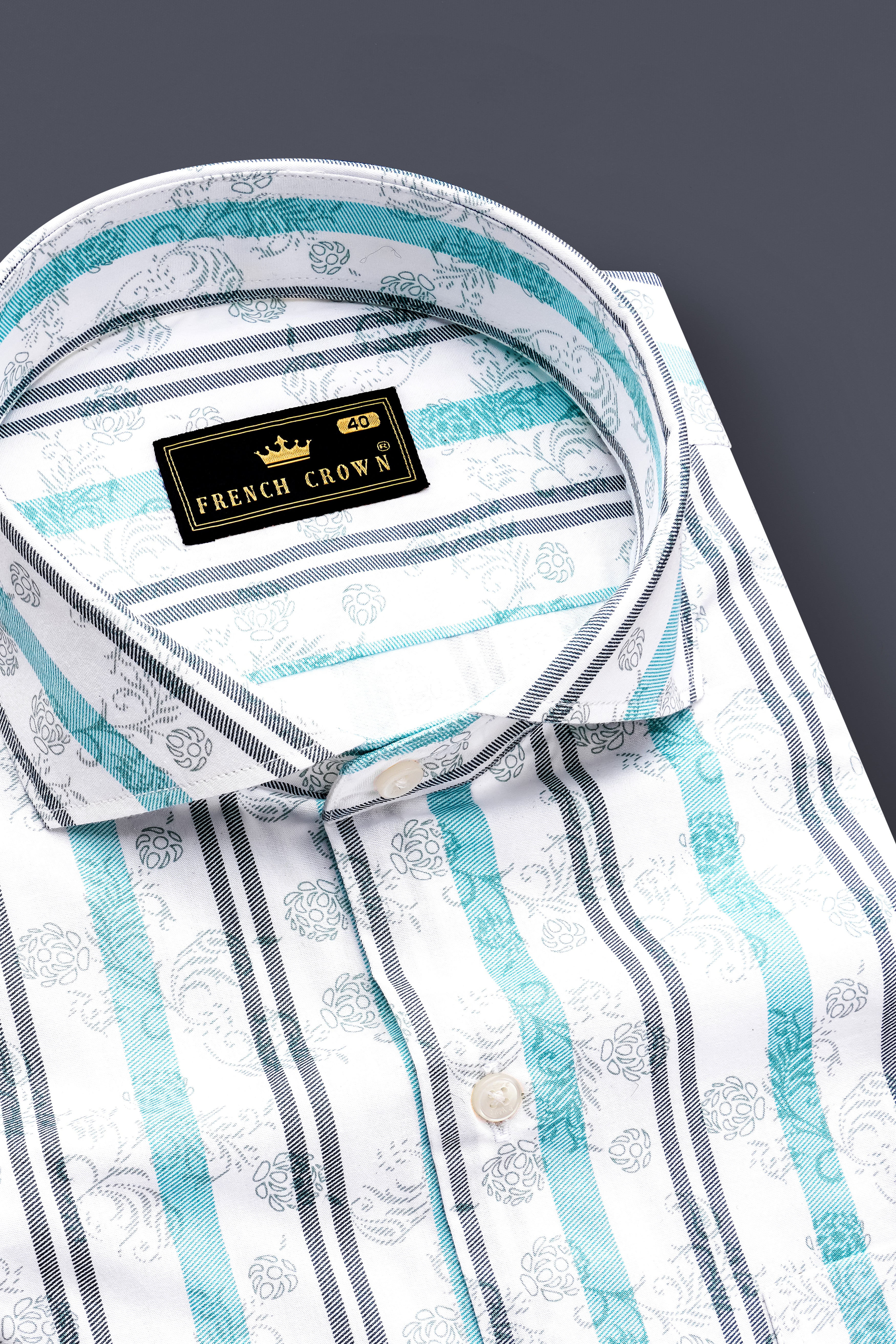 Frostwave-Bright White And Mirage Blue Printed Premium Cotton Semi Formal Shirt