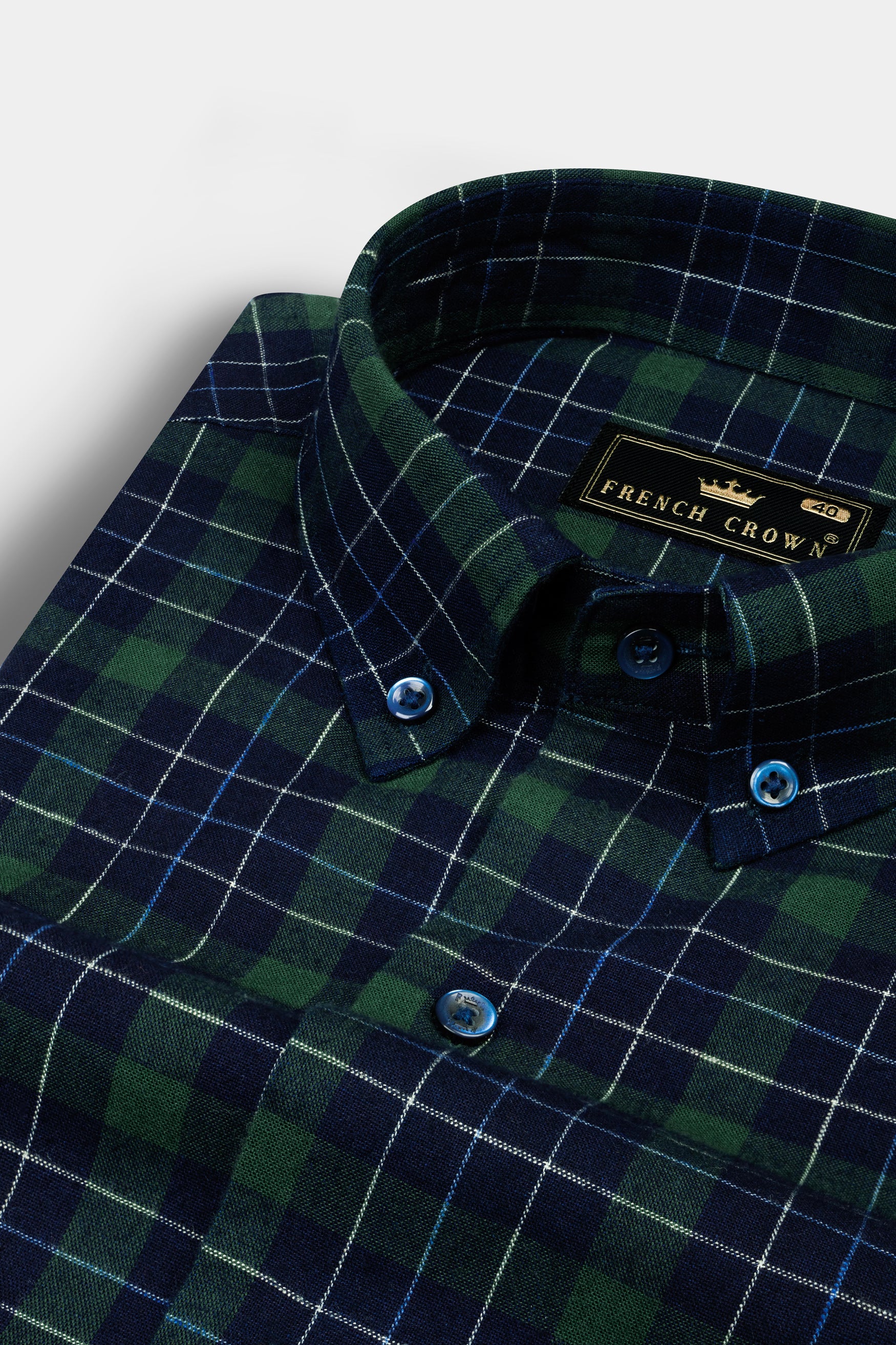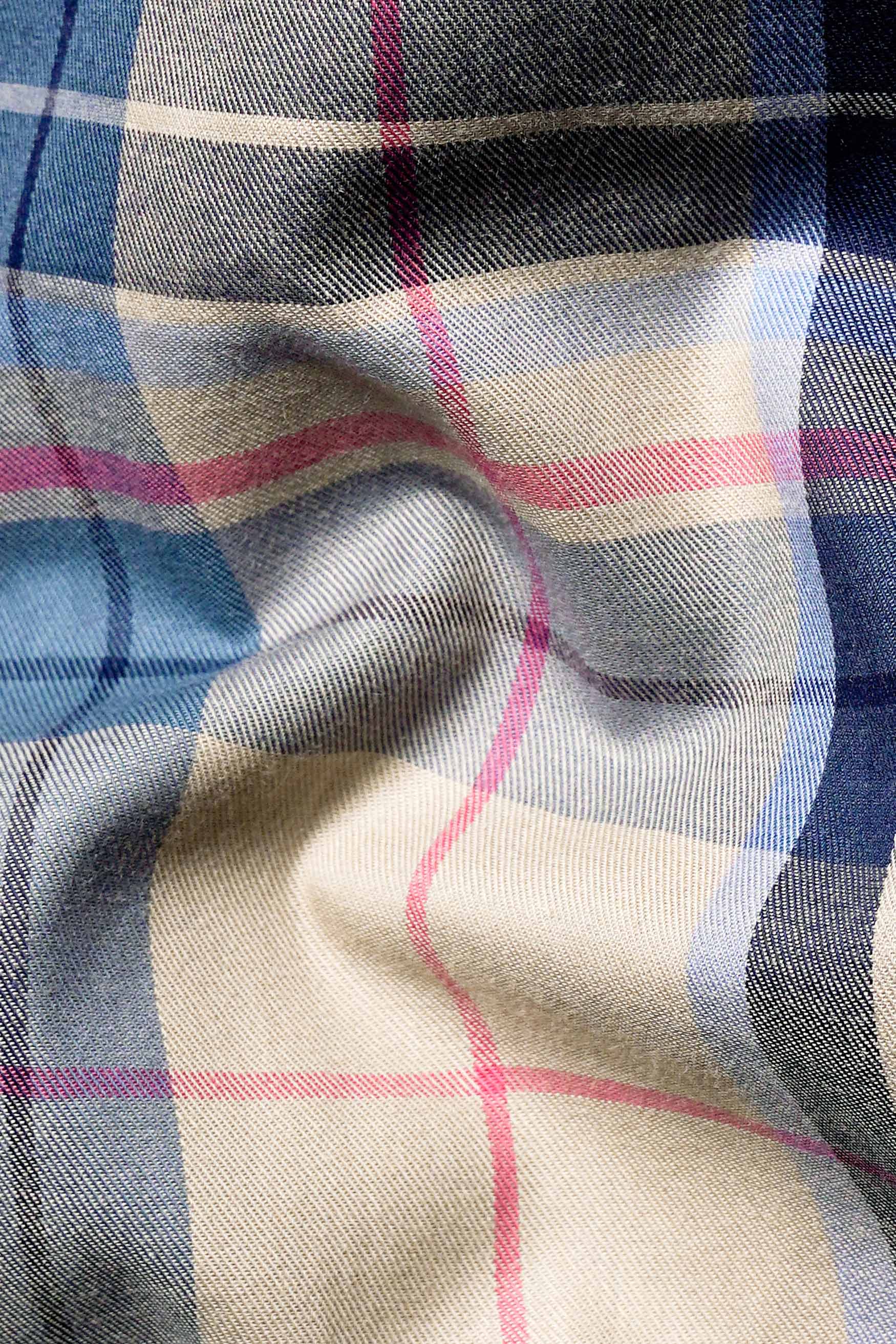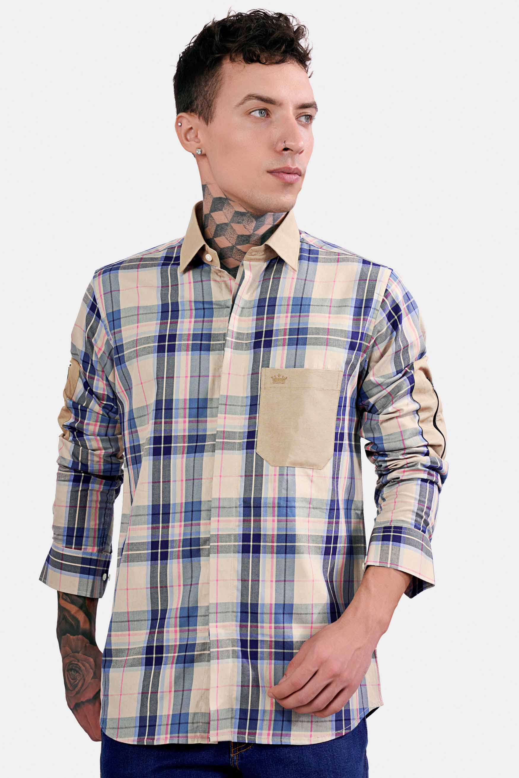 Shell Brown and Lapis Blue Twill Plaid Premium Cotton Designer ShirtShell Brown and Lapis Blue Twill Plaid Premium Cotton Designer Shirt