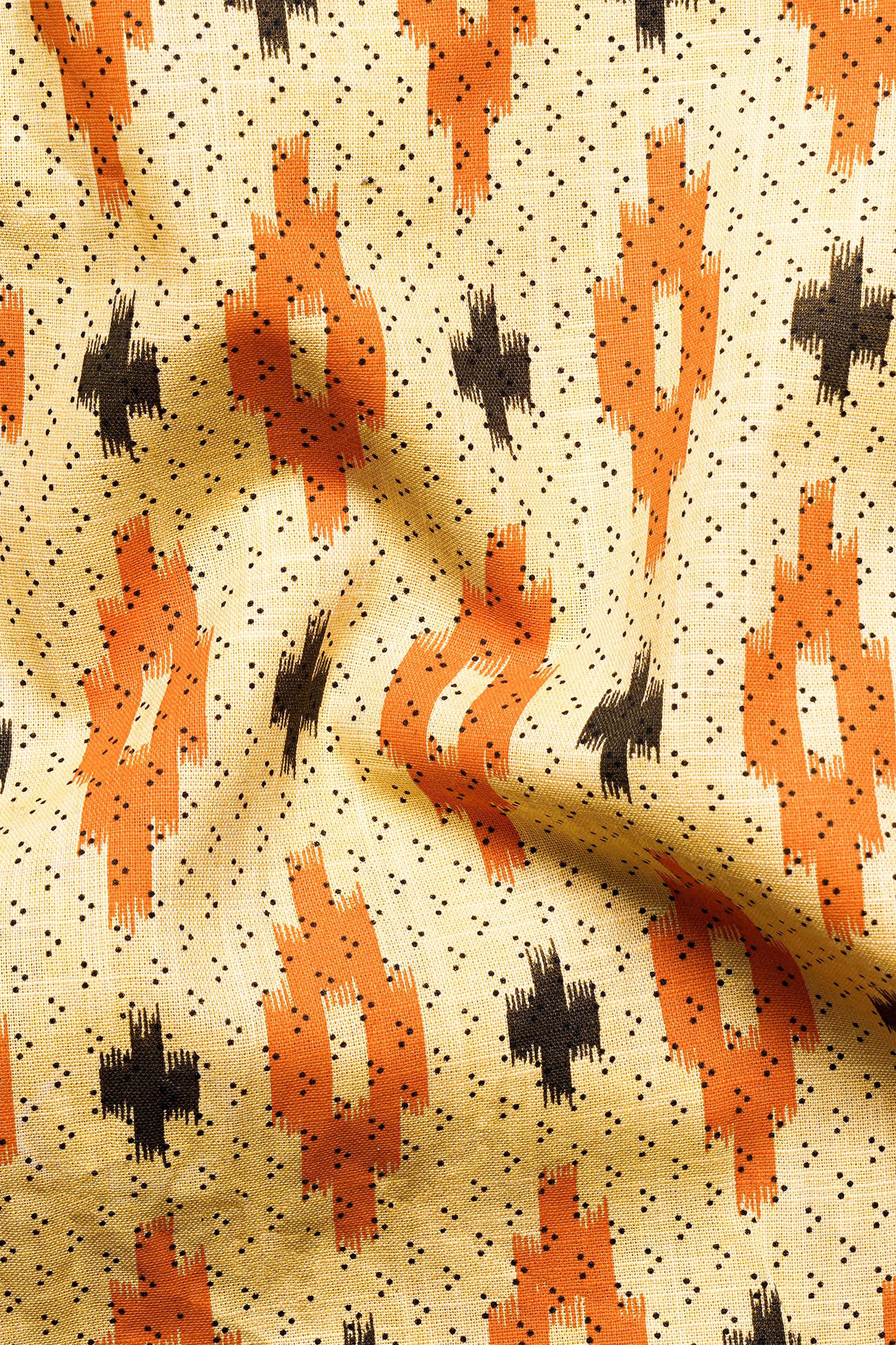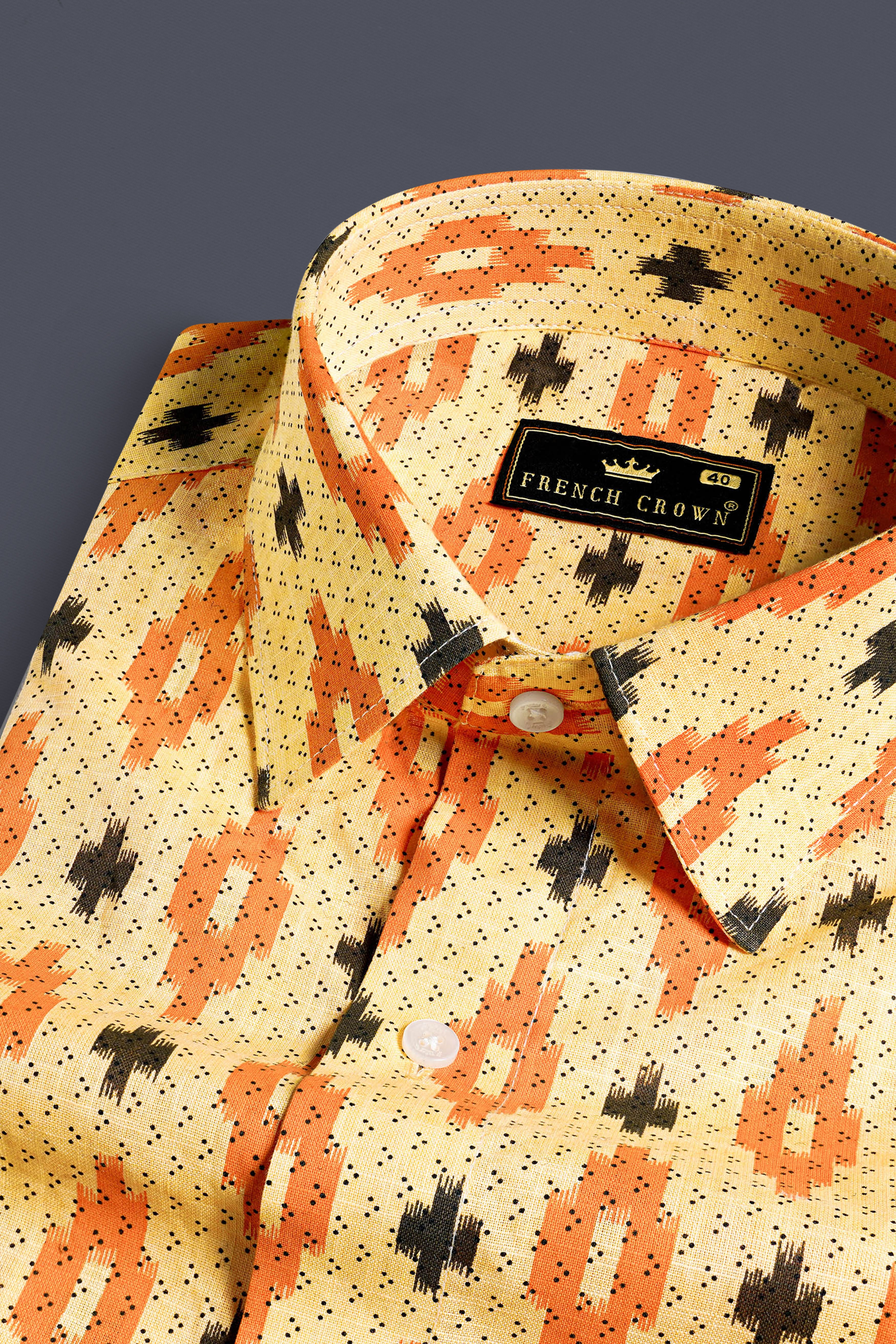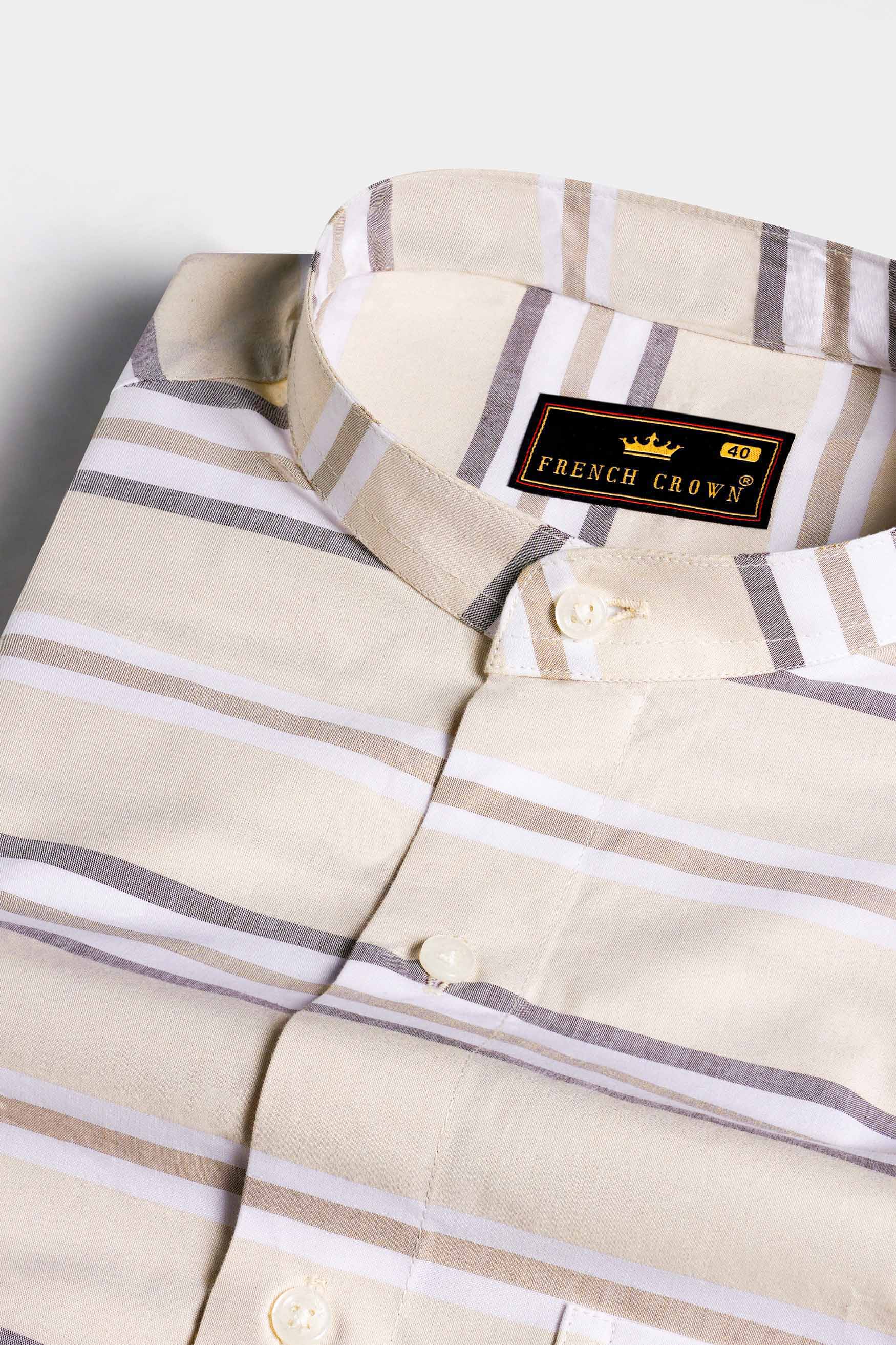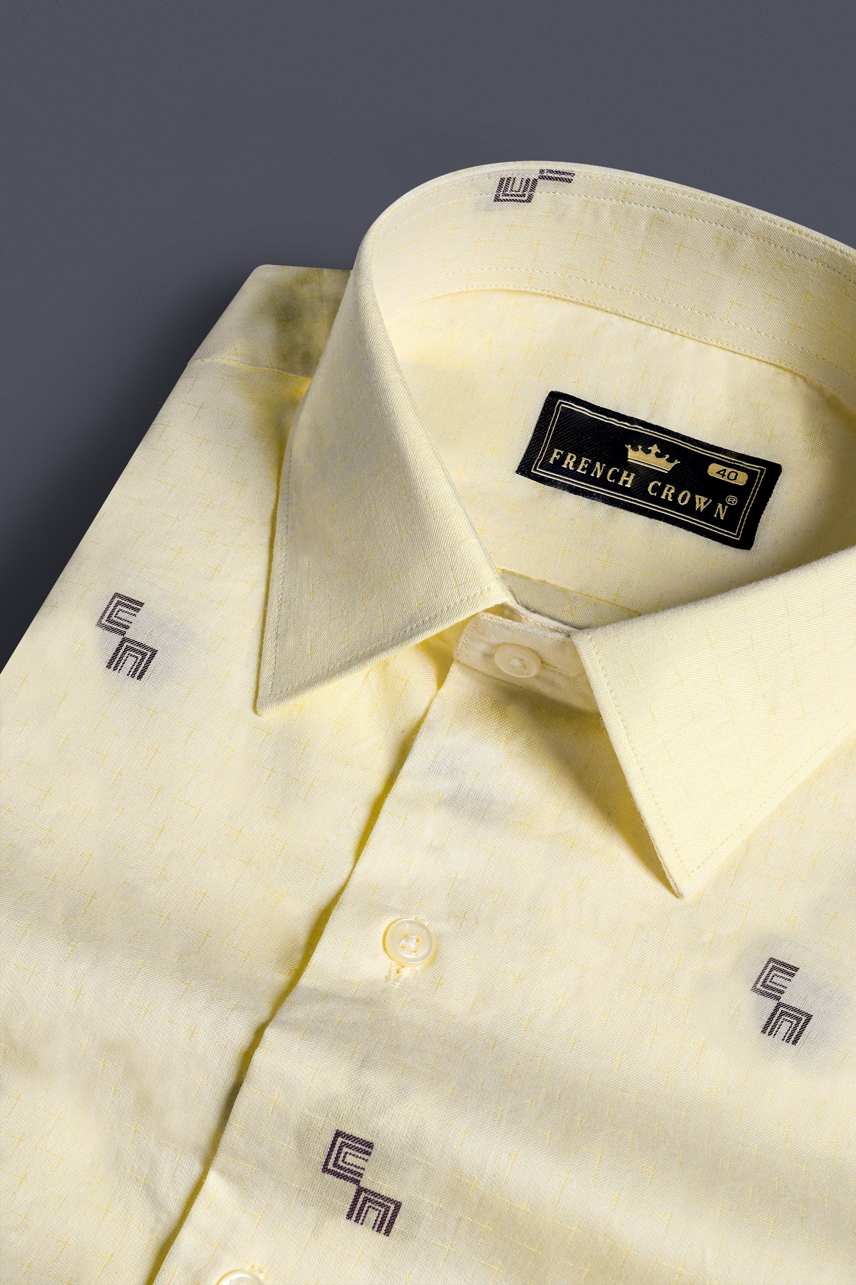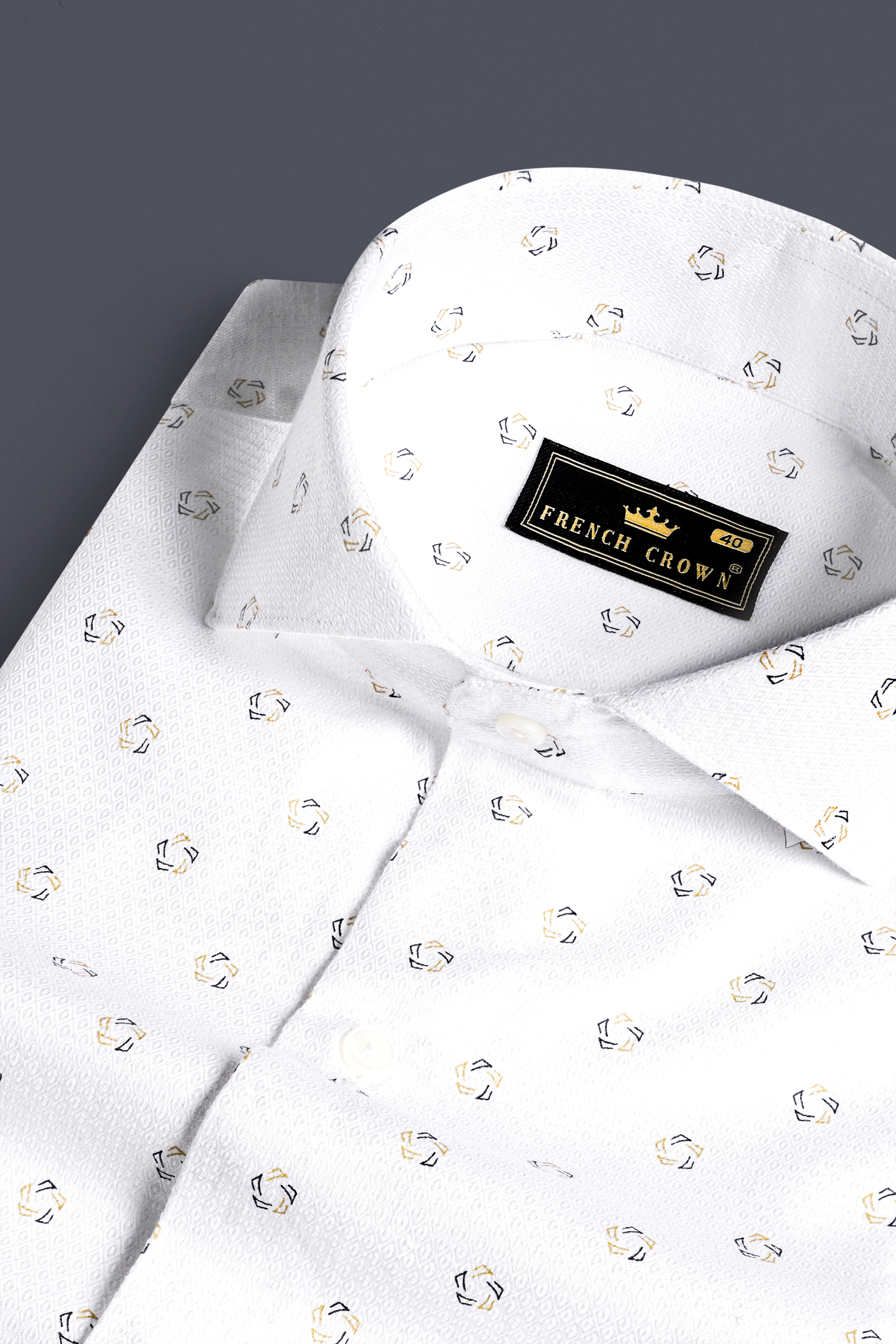 Ecru Cream Printed Dobby Textured Premium Giza Cotton Shirt
