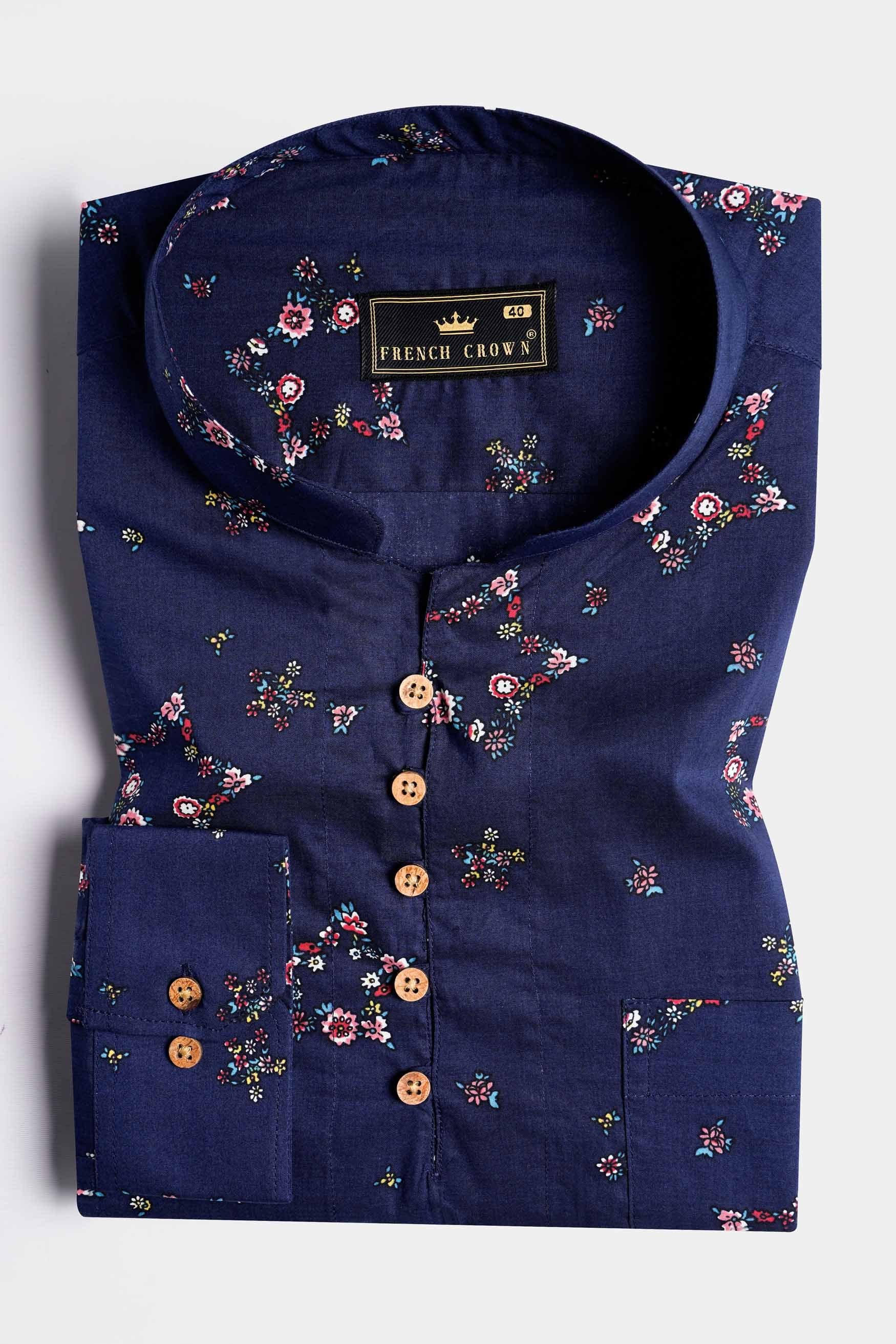 Bunting Blue Ditsy Printed Premium Cotton Kurta Shirt