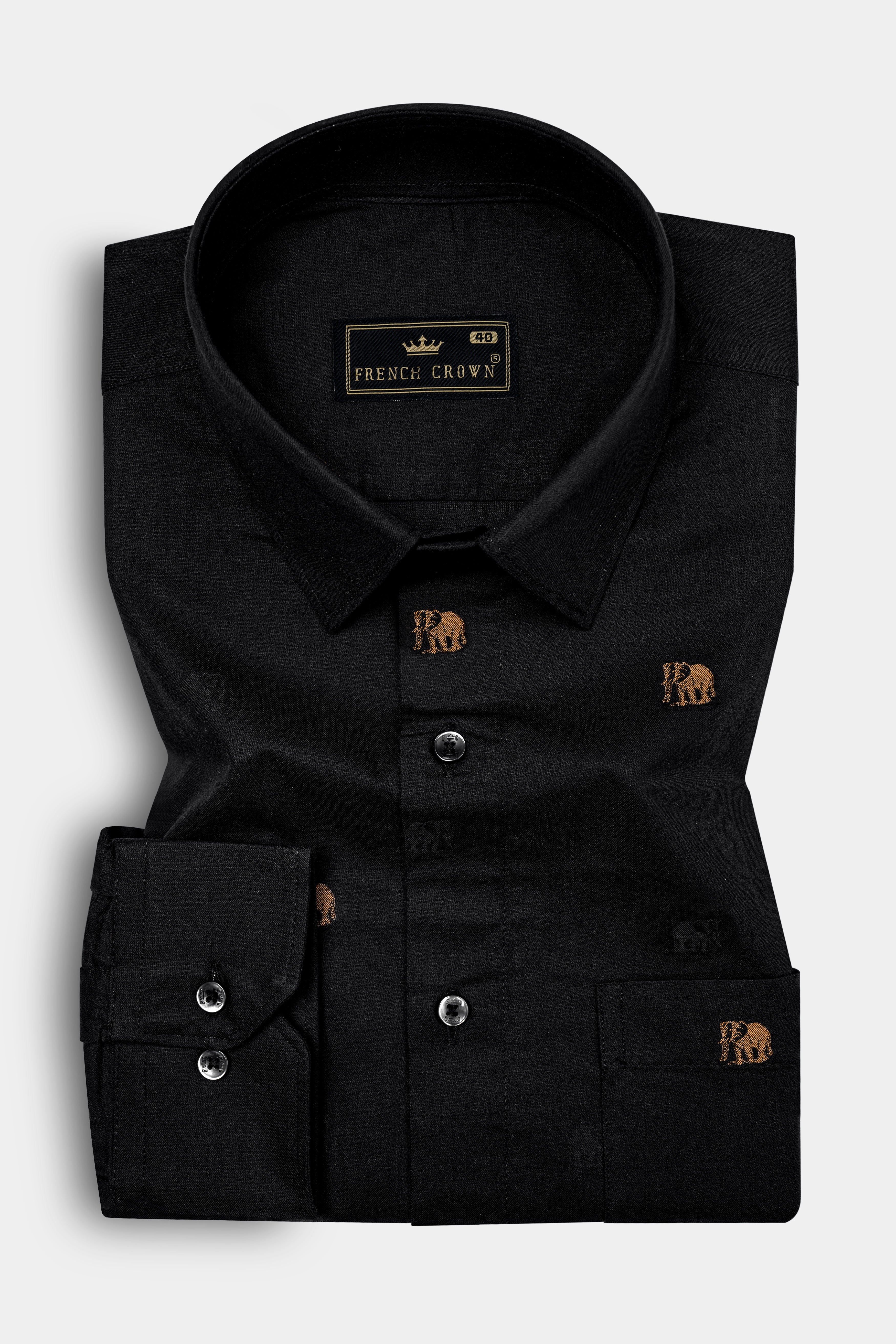 Vampire Gray Houndstooth Dobby Textured Printed Premium Giza Cotton Shirt
