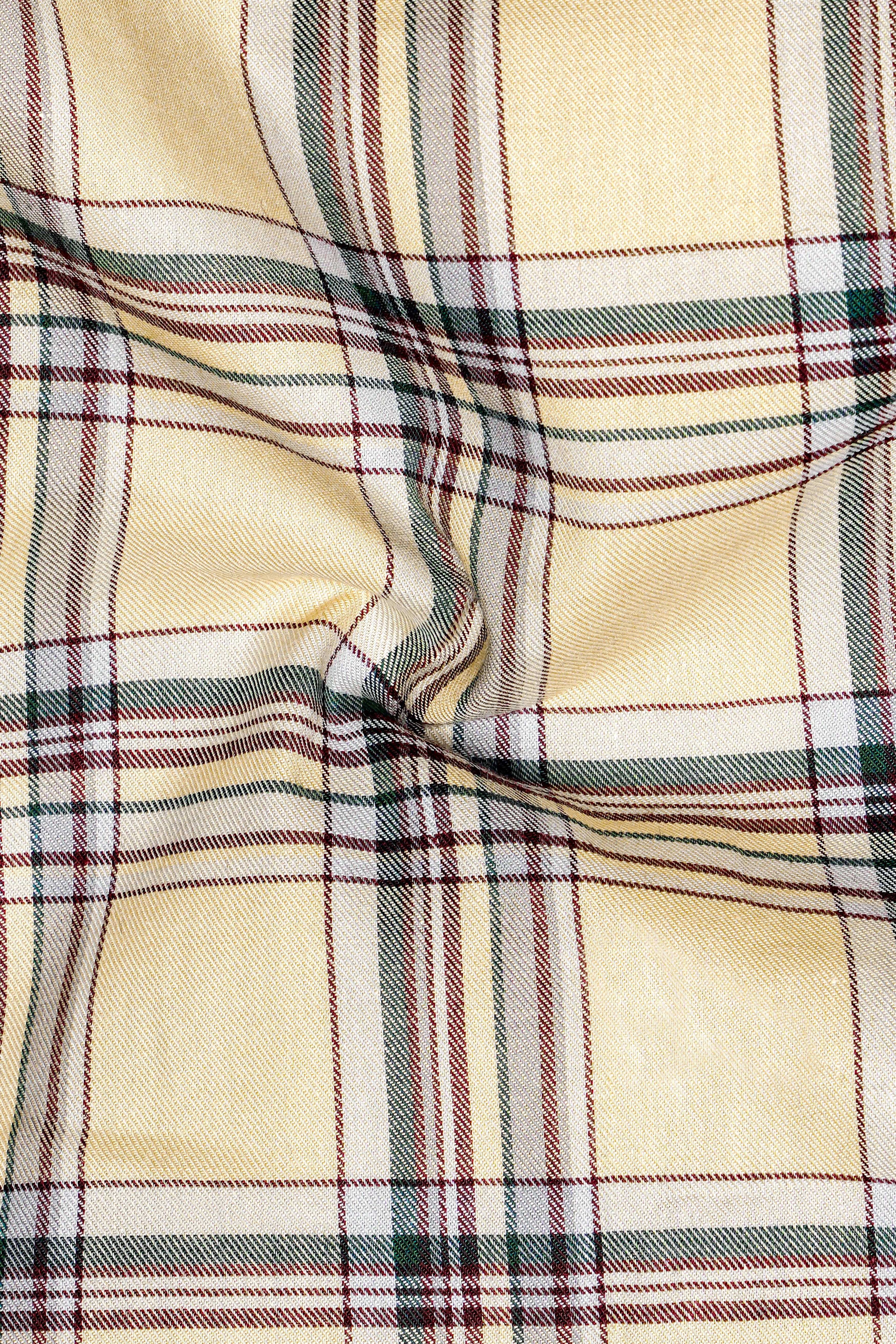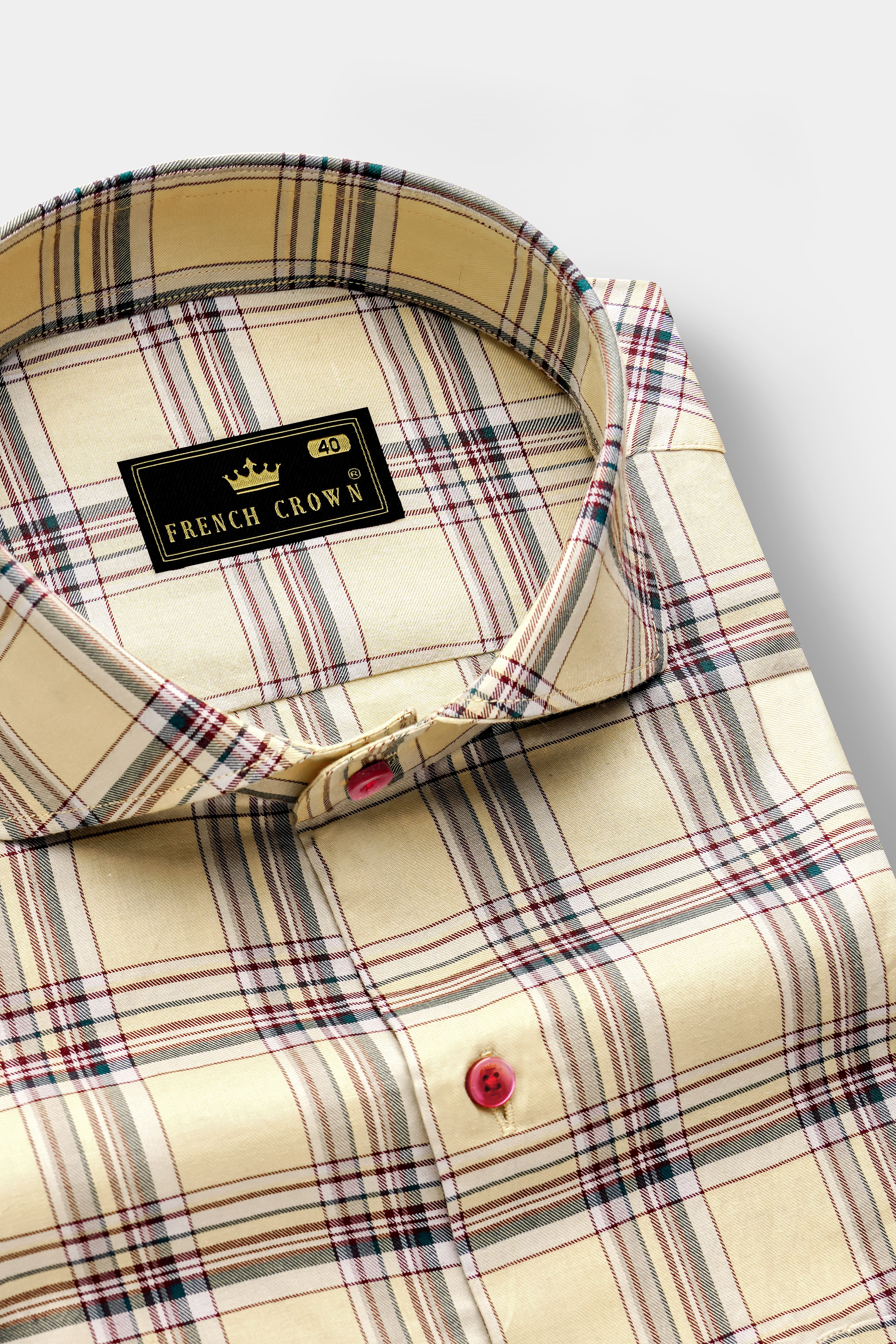 Yellowish Orange with Green Cyan Checks Plaid Twill Premium Cotton ShirtYellowish Orange with Green Cyan Checks Plaid Twill Premium Cotton Shirt