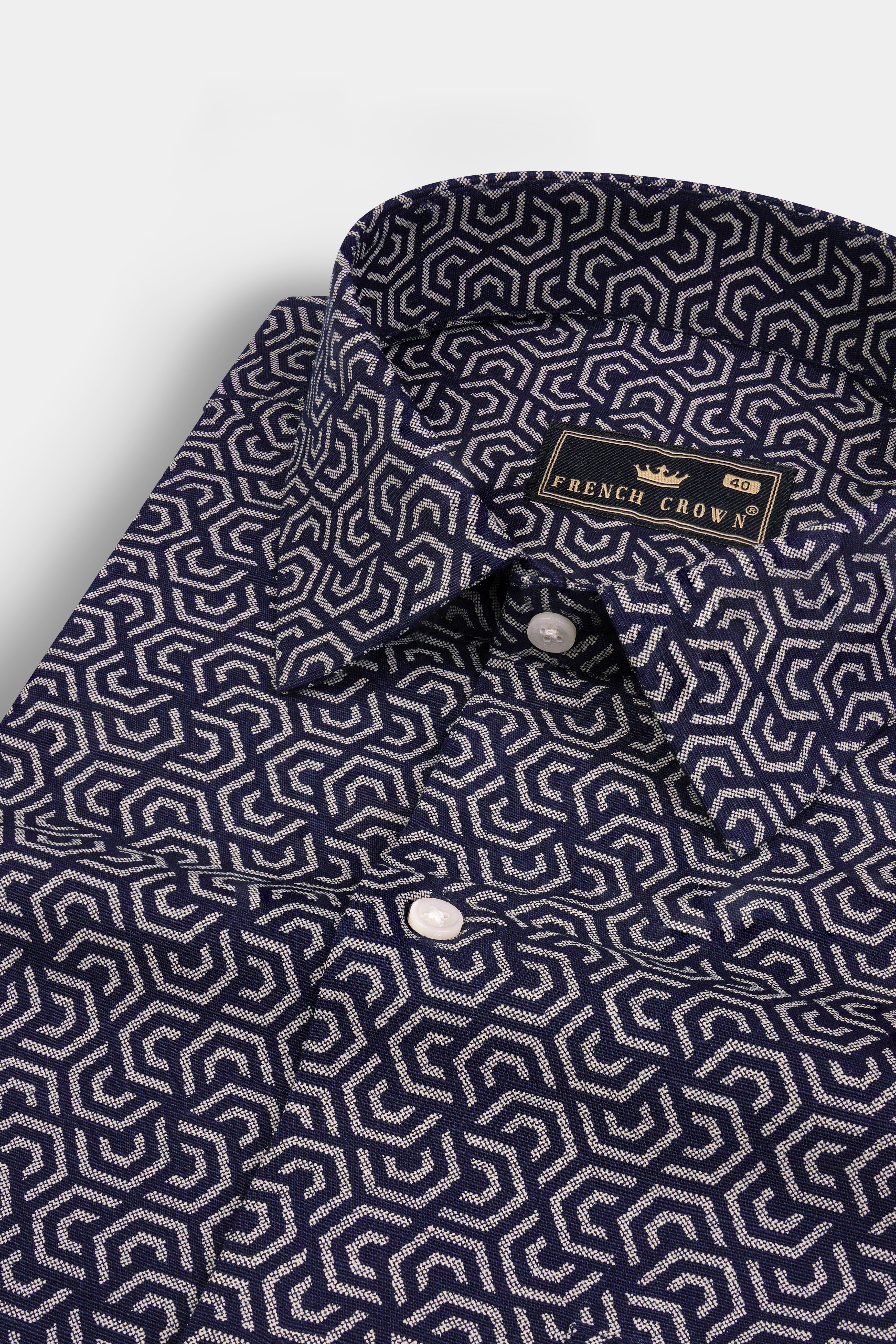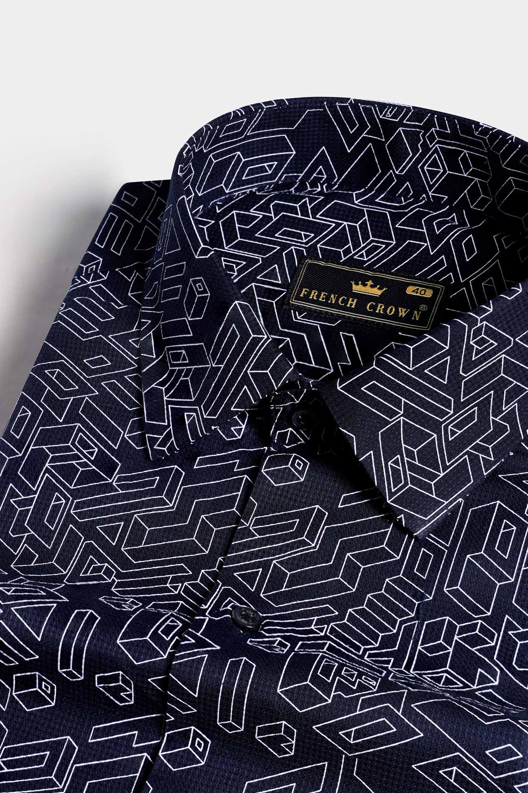 Astros Blue and Bright White Dobby Textured Premium Giza Cotton Shirt