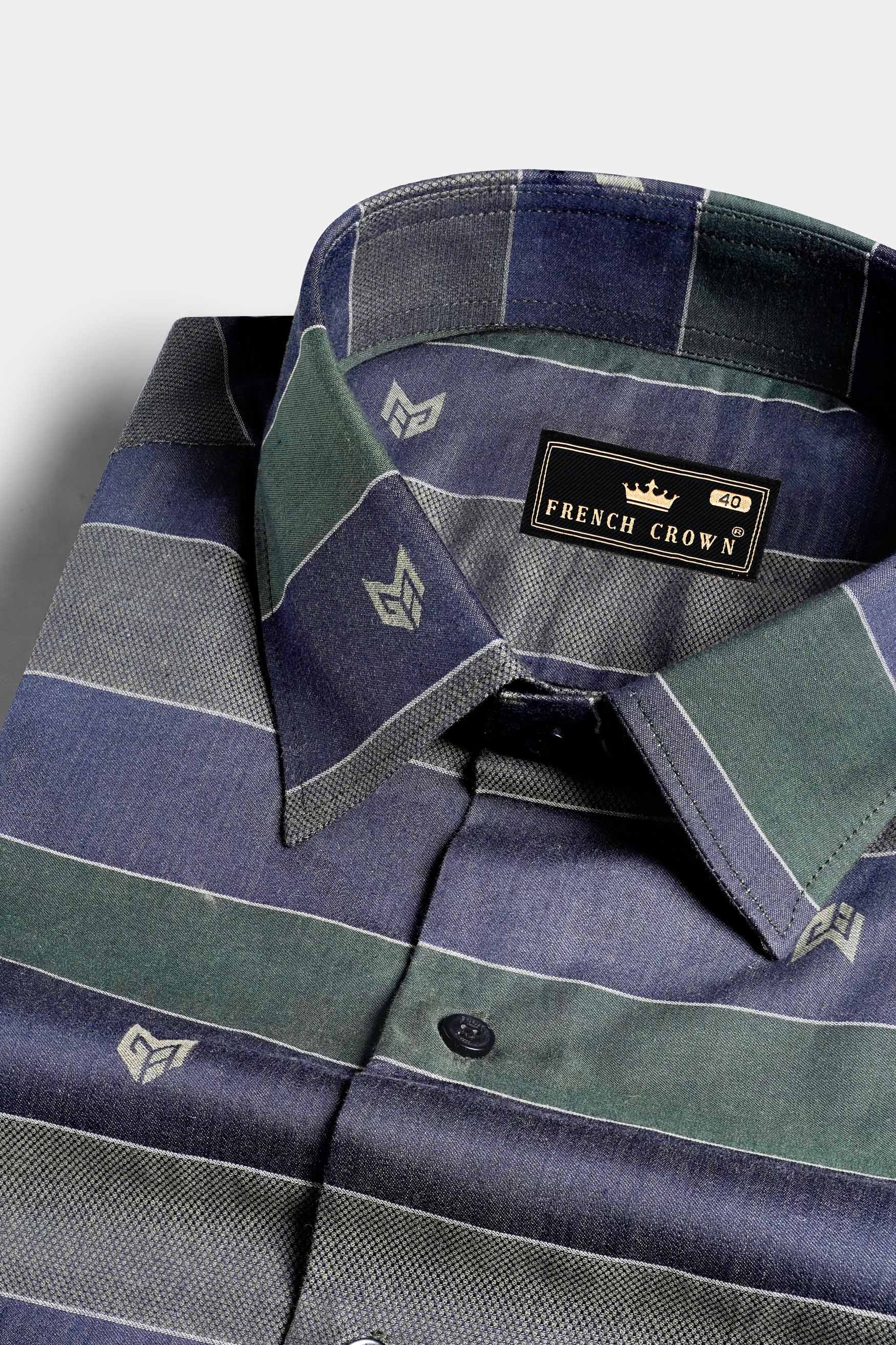 Schooner Brown with Nandor Green and Ebony Clay Blue Jacquard Textured Premium Giza Cotton ShirtSchooner Brown with Nandor Green and Ebony Clay Blue Jacquard Textured Premium Giza Cotton Shirt