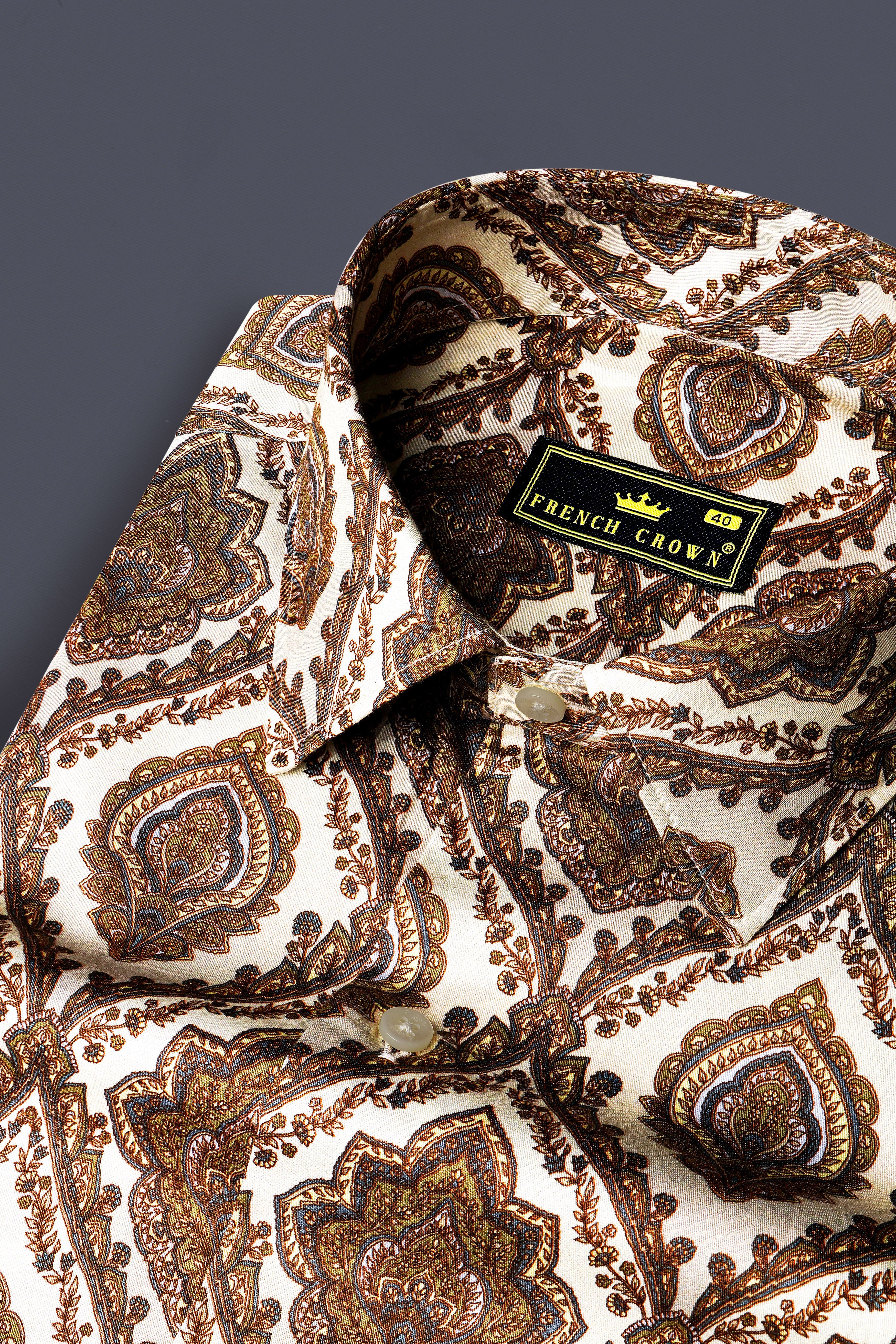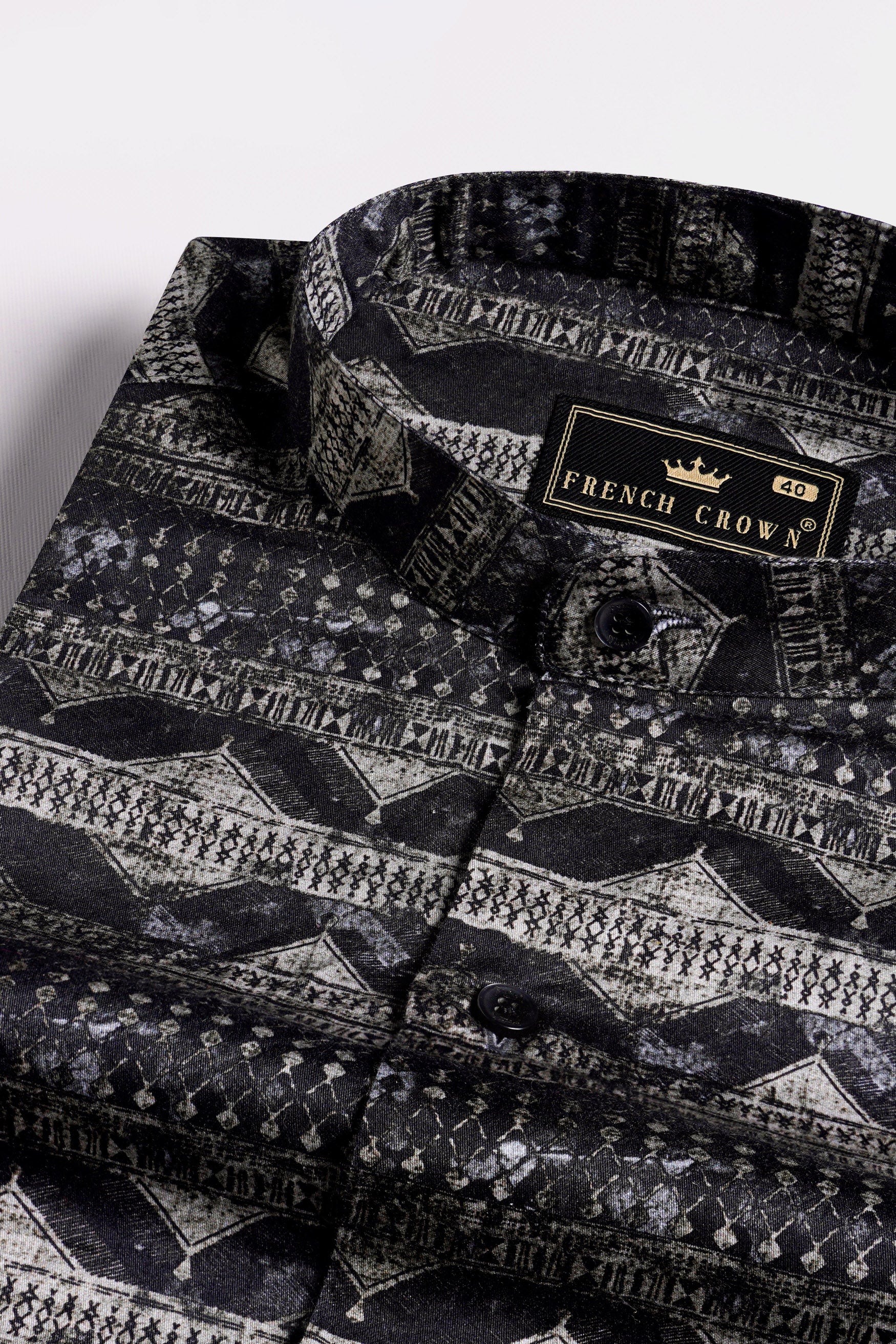 Malta Brown and Onyx Black Tribal Printed Subtle Sheen Super Soft Premium Cotton Shirt