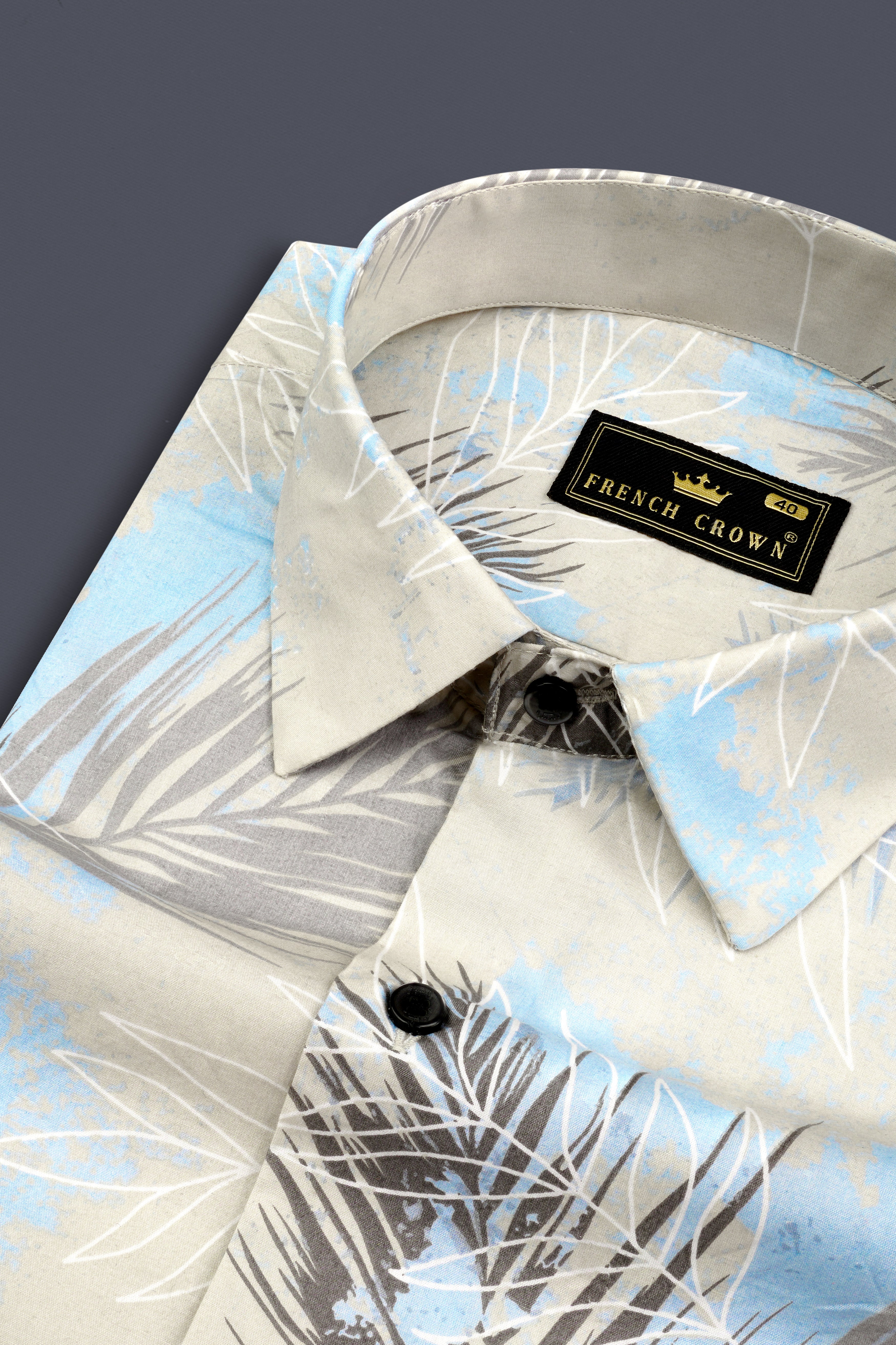 Iridium Gray Premium Cotton Kurta Shirt With Floral Printins