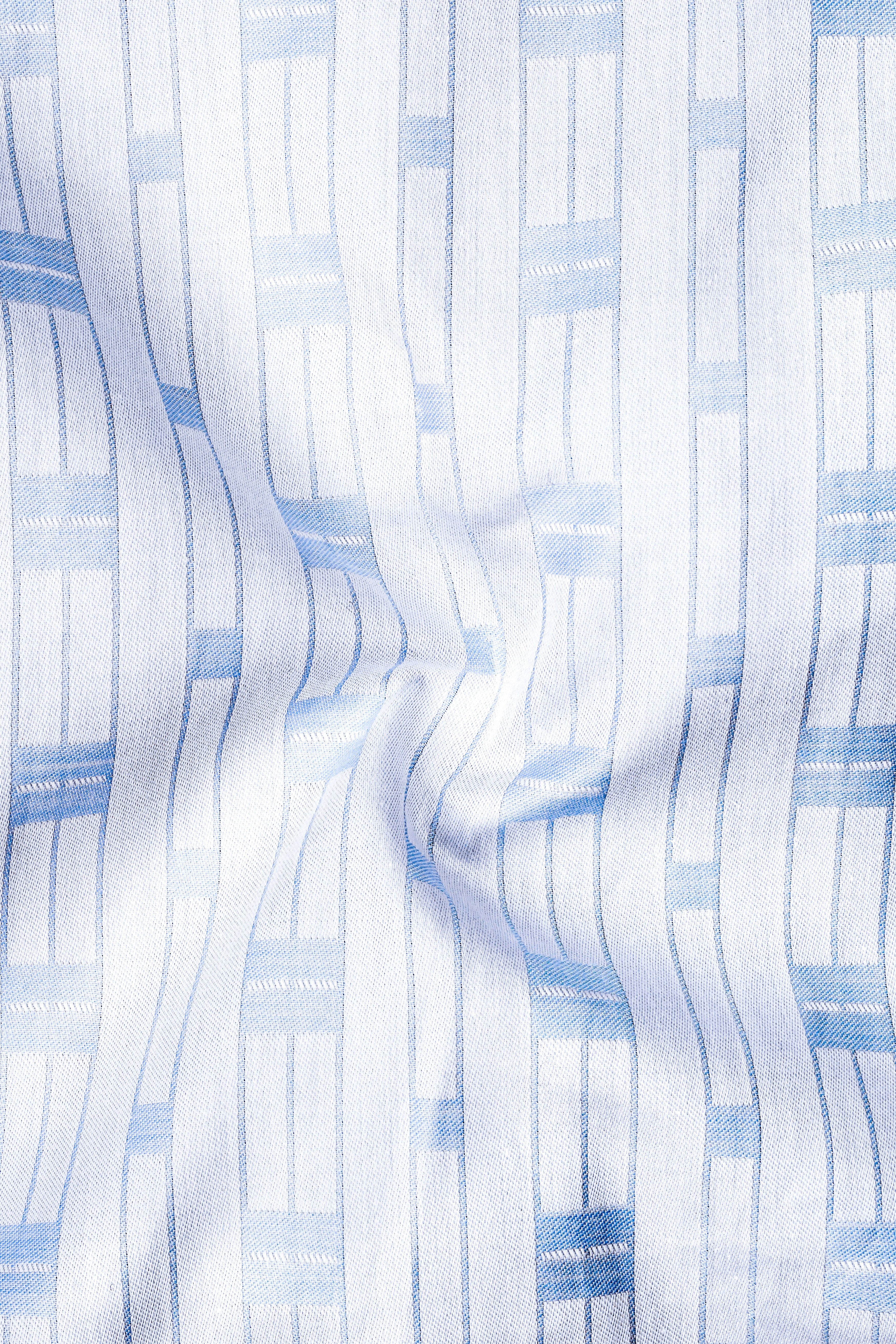 7swords-Bright White and Cloud Burst Blue Checkered Premium Cotton Shirt