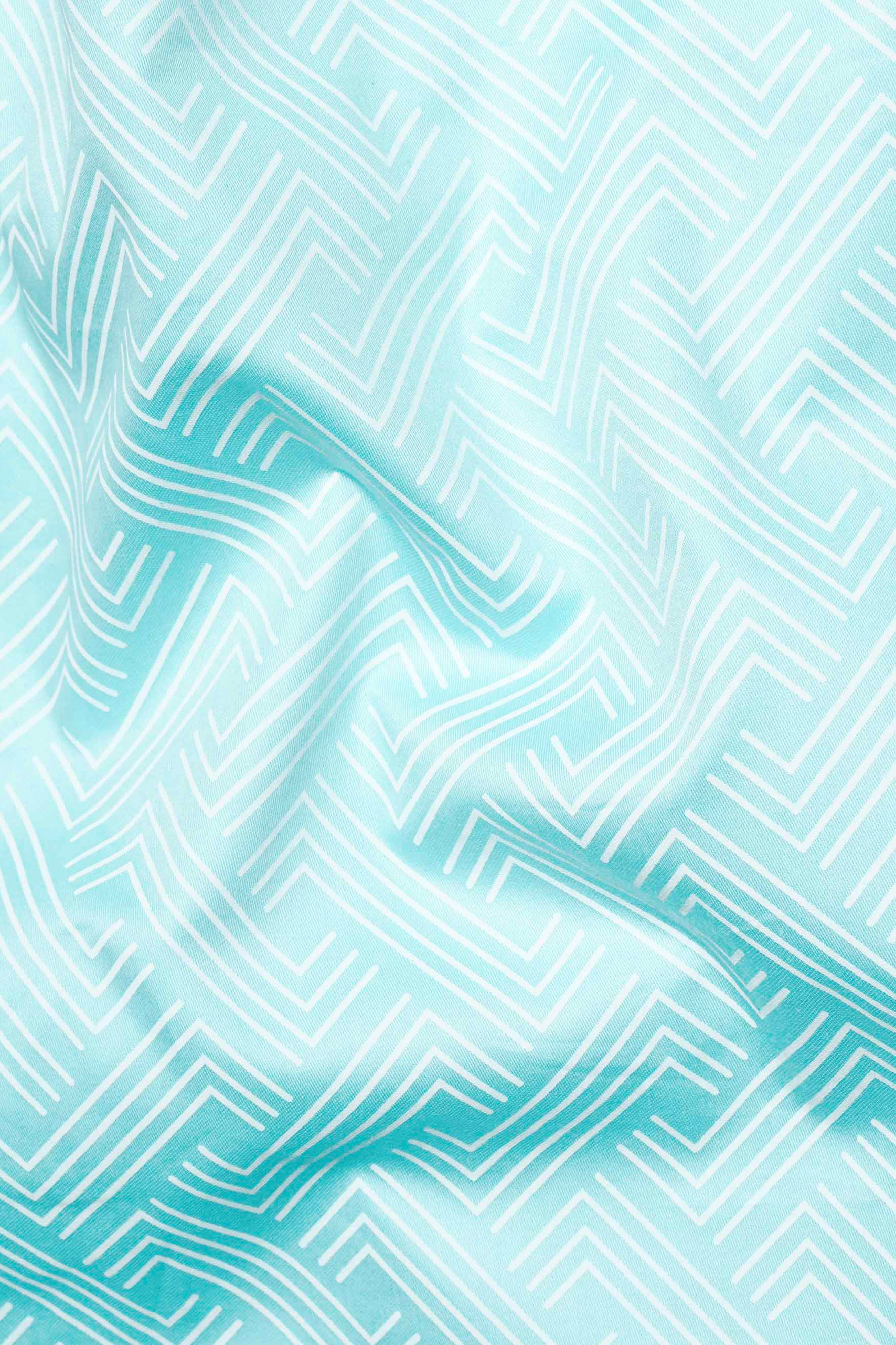 Mirage Blue with White and Gossamer Green Printed Premium Tencel Kurta Shirt