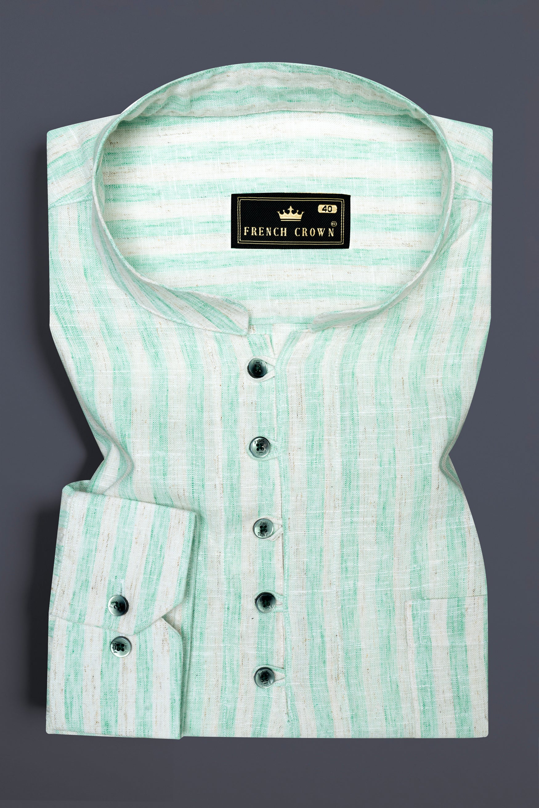Blizzard Blue and White Striped Luxurious Linen Shirt