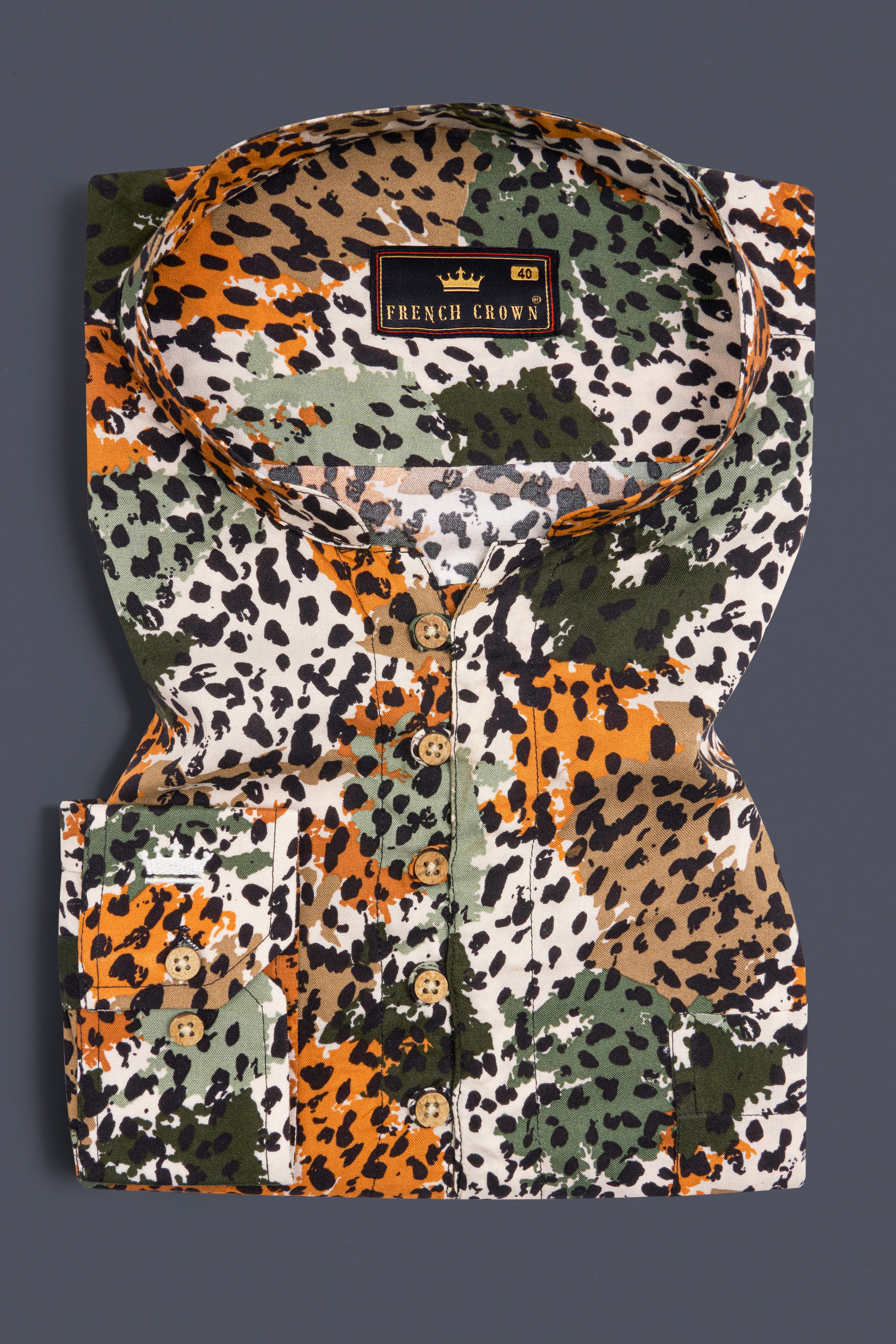 Finch Green Leaves Printed Premium Cotton Kurta Shirt