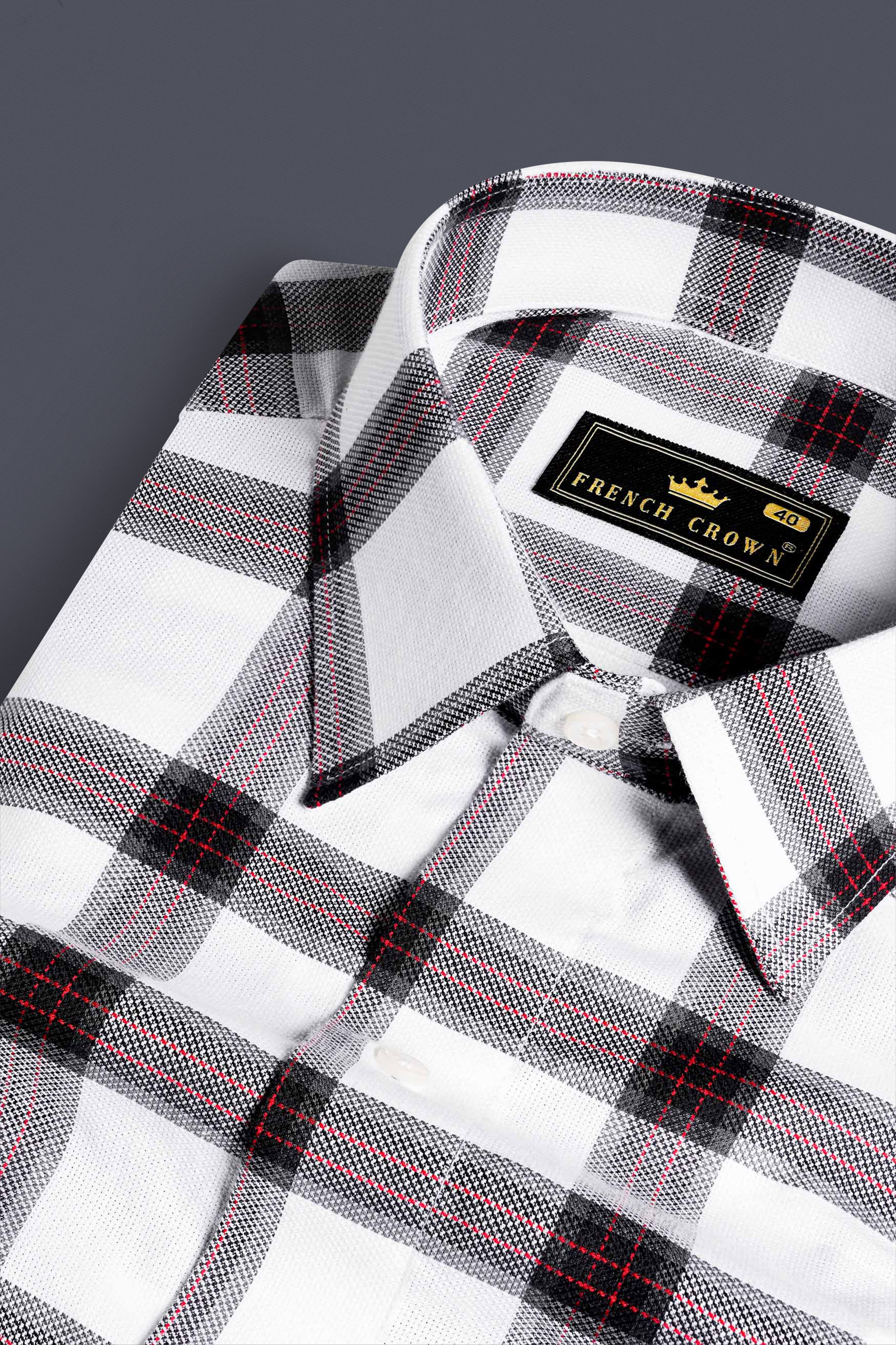 Bright White with Onyx Blue Plaid Twill Premium Cotton ShirtBright White with Onyx Blue Plaid Twill Premium Cotton Shirt