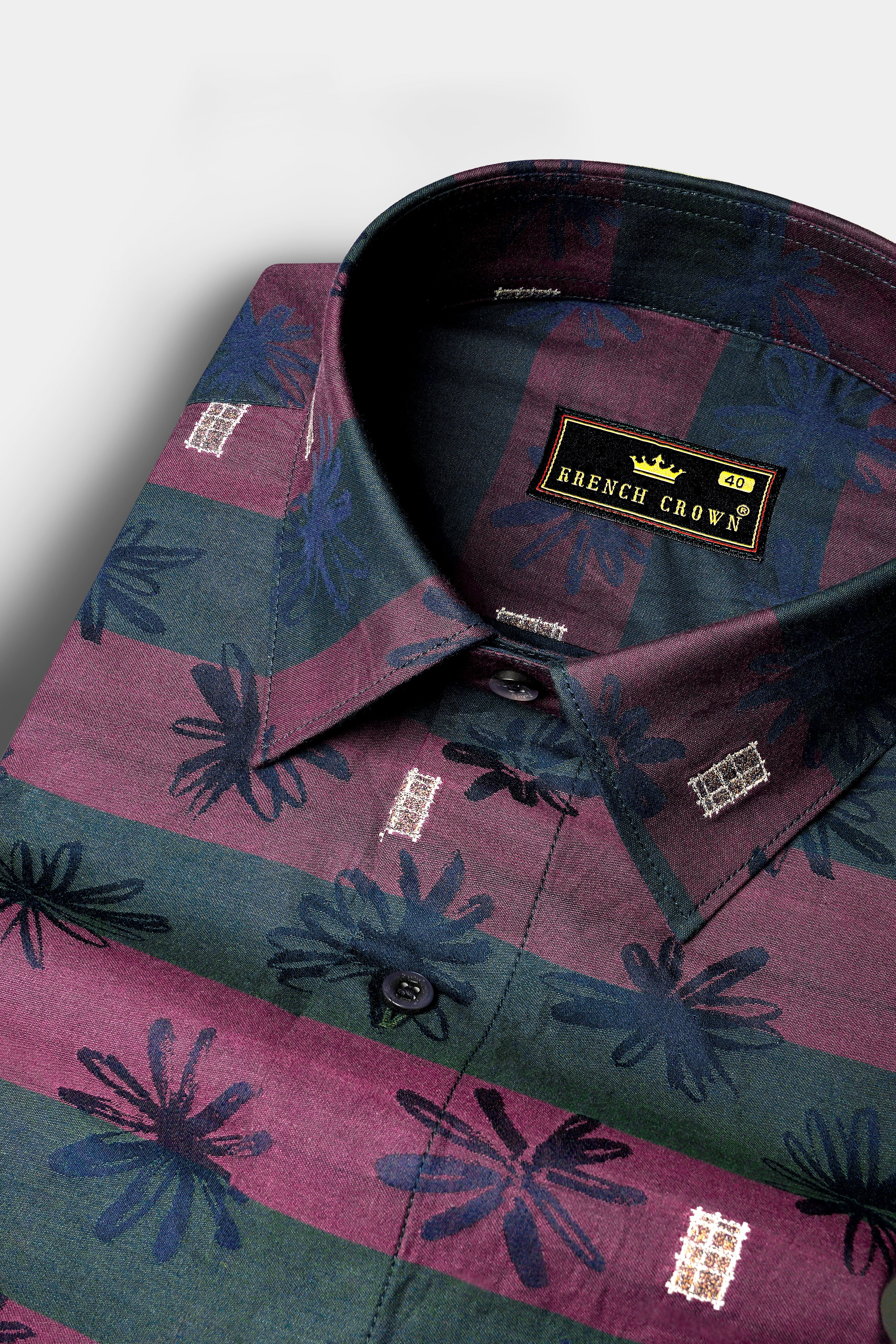 Jade Black and Flint Brown Leaves Printed Premium Cotton Shirt