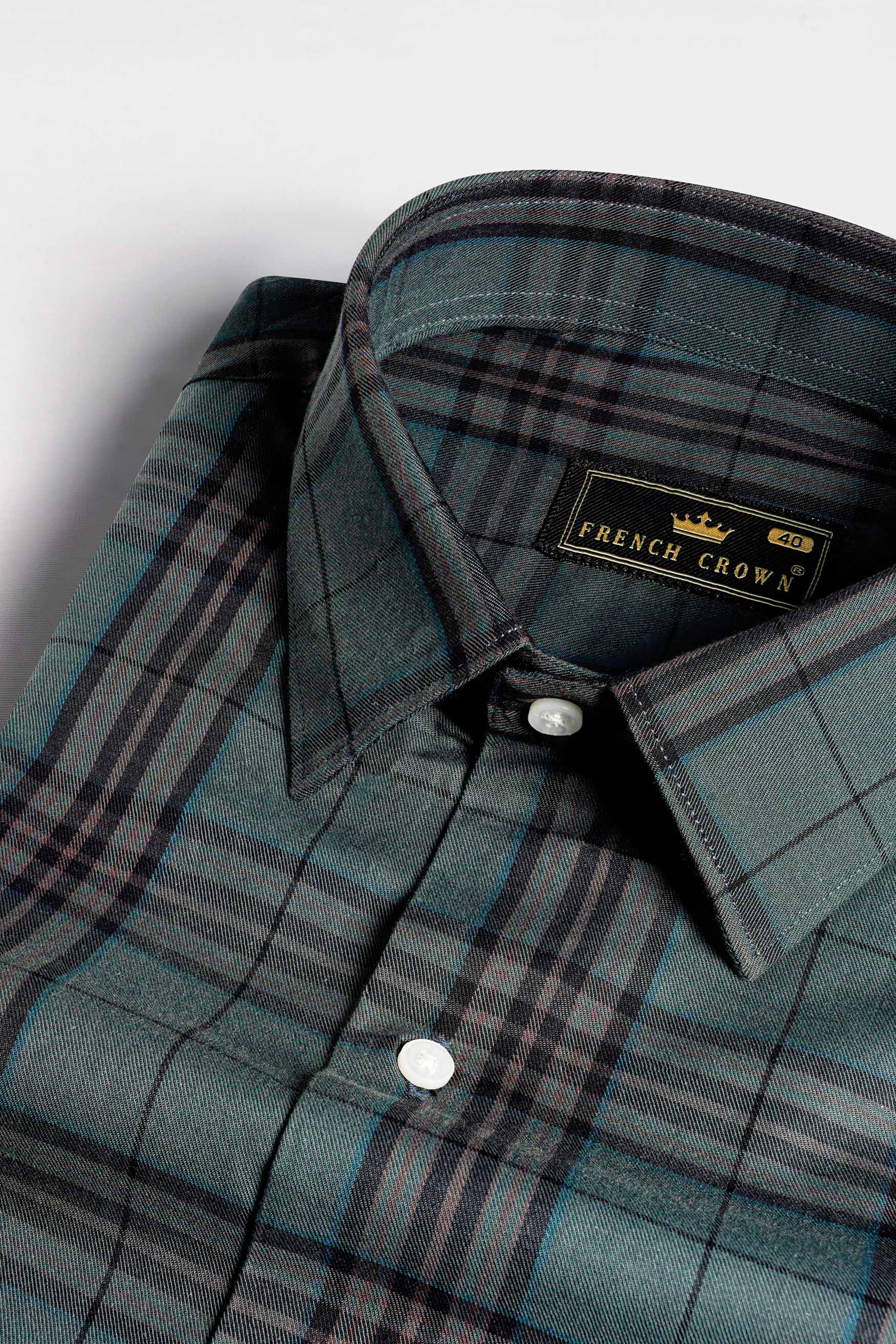Bayoux Green with Onyx Black and Ferra Brown Twill Plaid Premium Cotton ShirtBayoux Green with Onyx Black and Ferra Brown Twill Plaid Premium Cotton Shirt