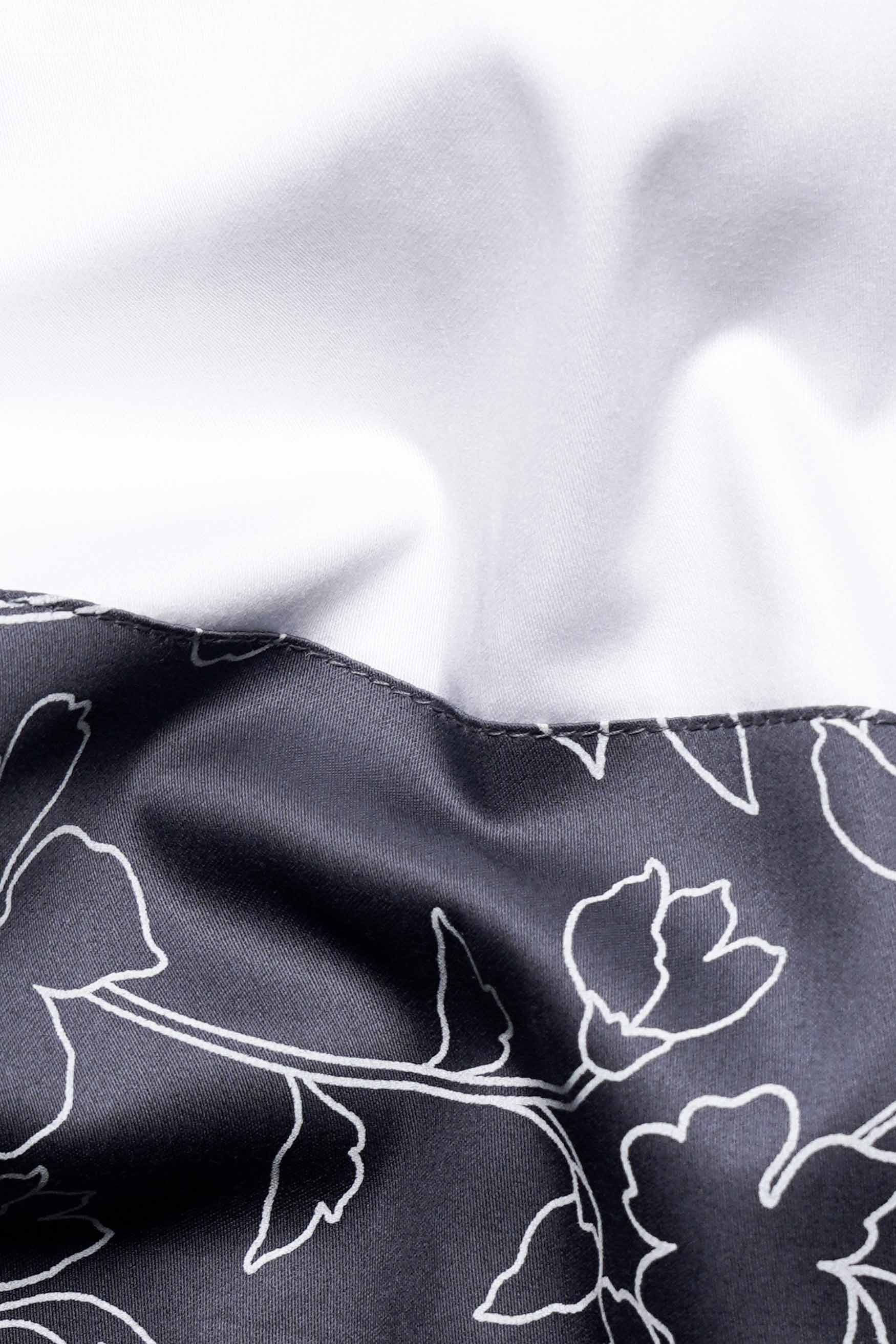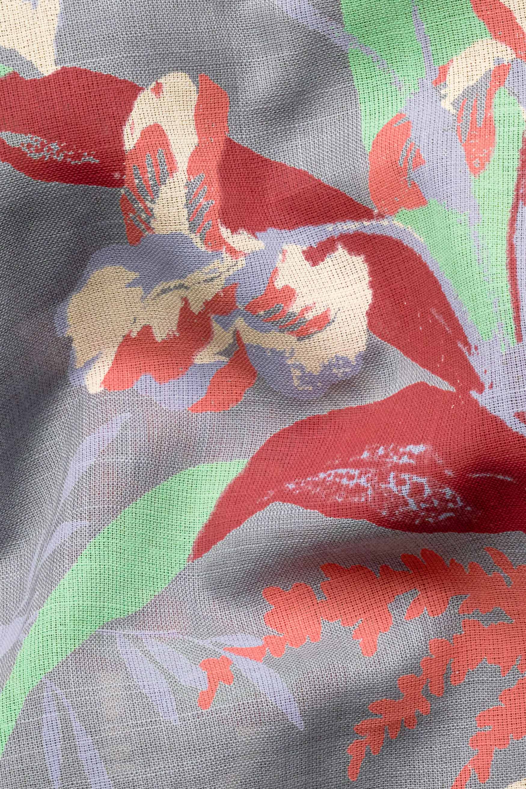 Gunsmoke Gray Leaves Printed Twill Premium Cotton ShirtGunsmoke Gray Leaves Printed Twill Premium Cotton Shirt