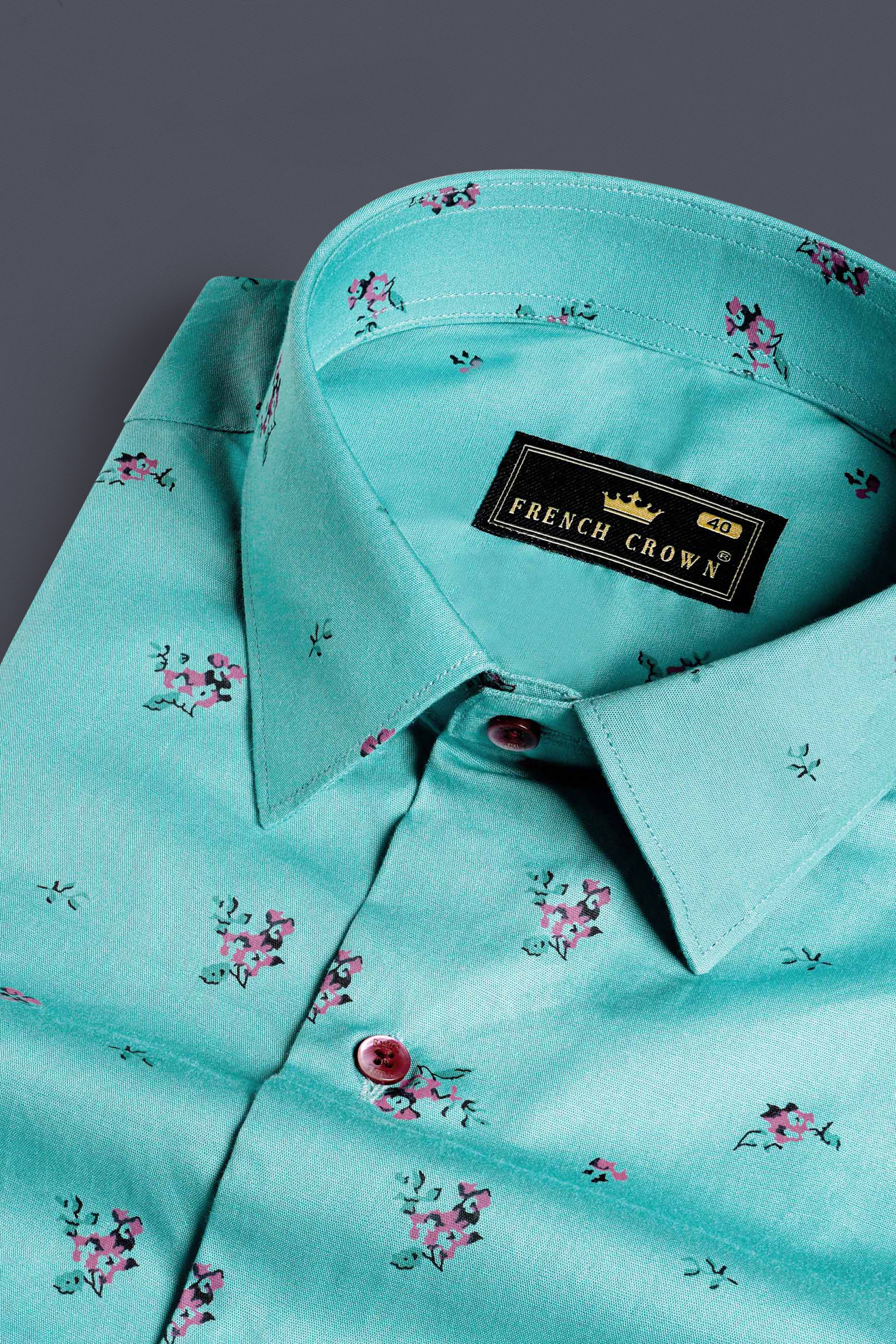 Pastel Green Ditsy Printed Luxurious Linen Designer Shirt