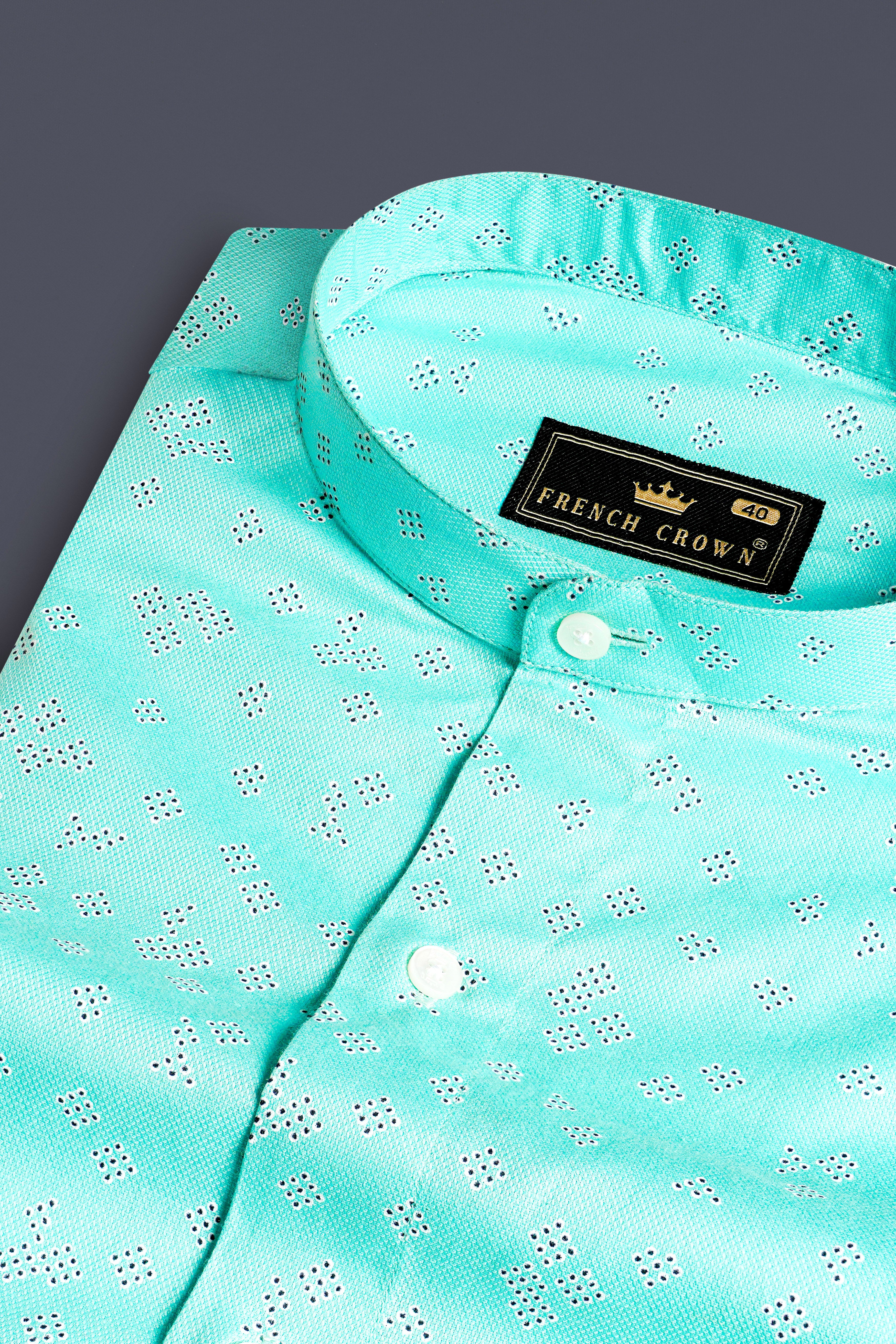 Tiffany Blue with White Cuffs and Collar Dobby Textured Premium Giza Cotton ShirtTiffany Blue with White Cuffs and Collar Dobby Textured Premium Giza Cotton Shirt