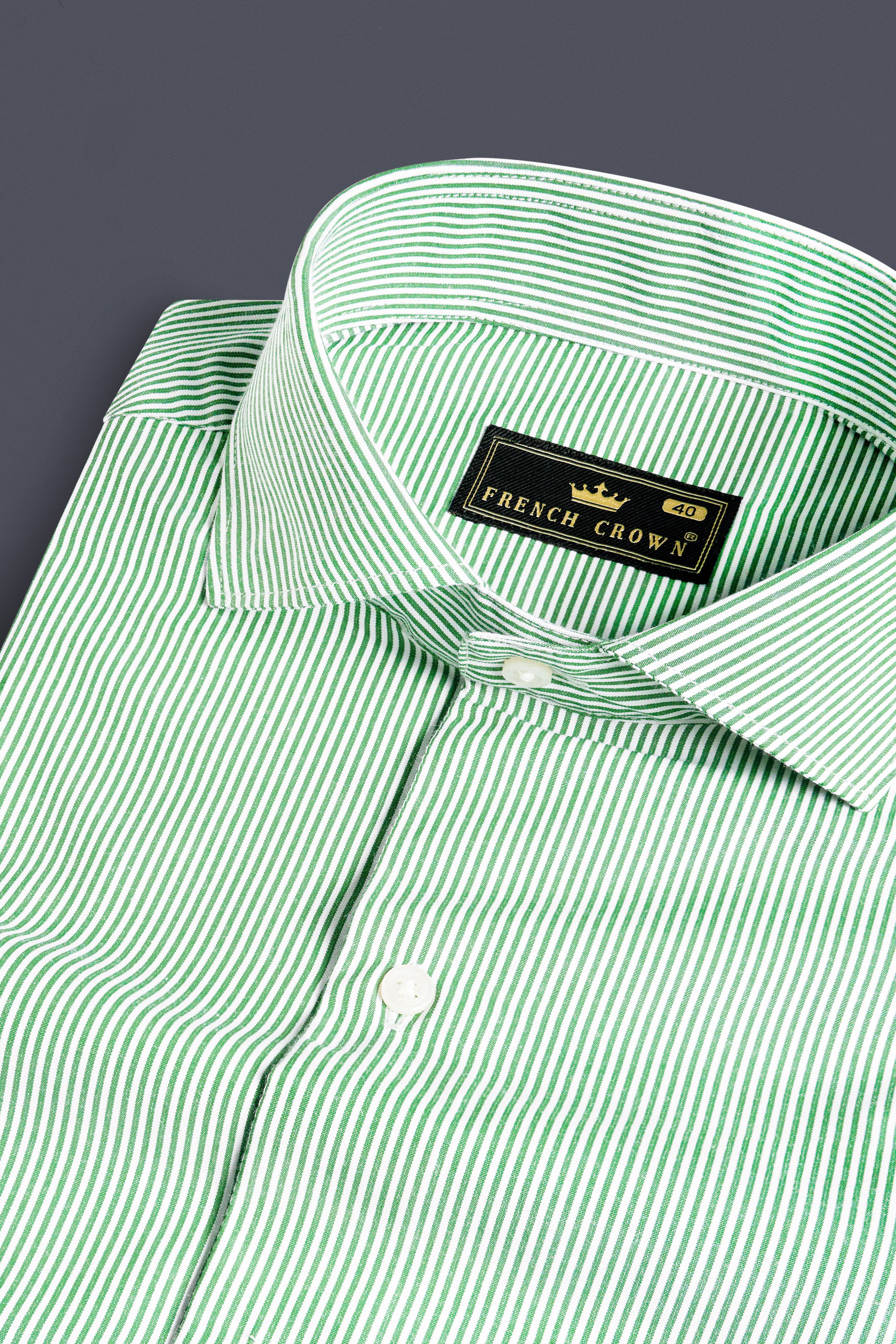 Salem Green and White Striped Premium Cotton ShirtSalem Green and White Striped Premium Cotton Shirt