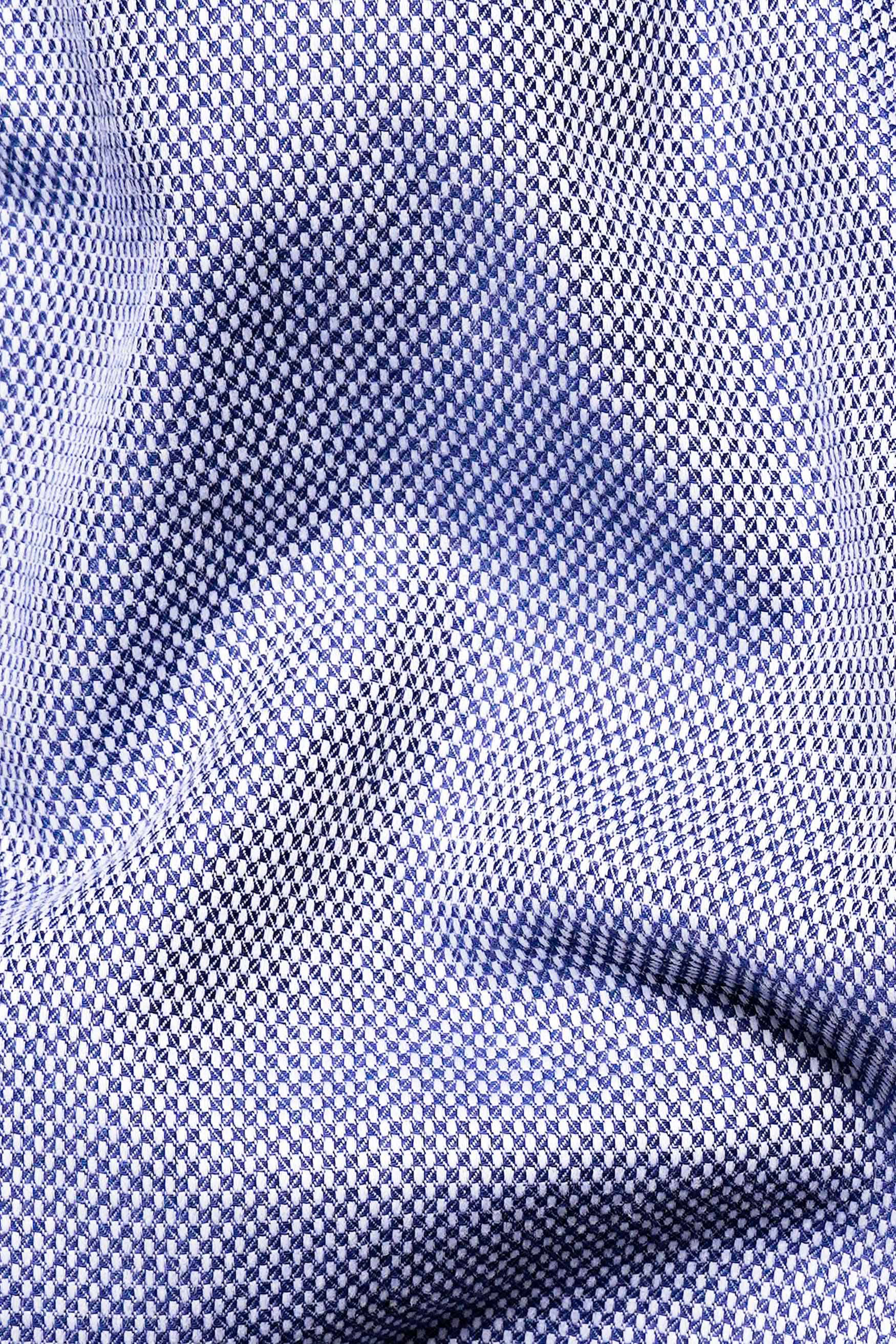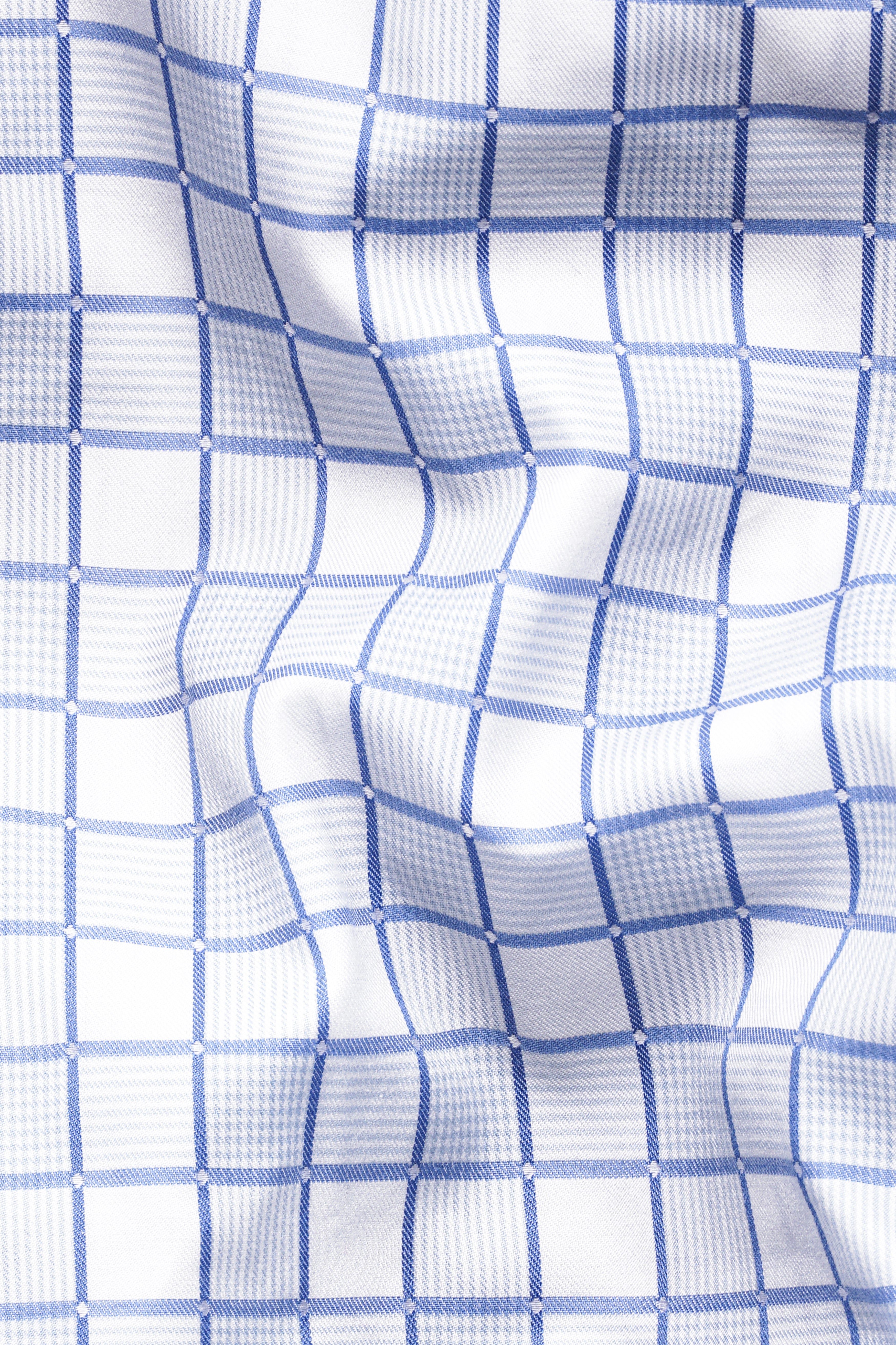 Bright White with Casper Blue and Black Checkered Dobby Textured Premium Giza Cotton ShirtBright White with Casper Blue and Black Checkered Dobby Textured Premium Giza Cotton Shirt
