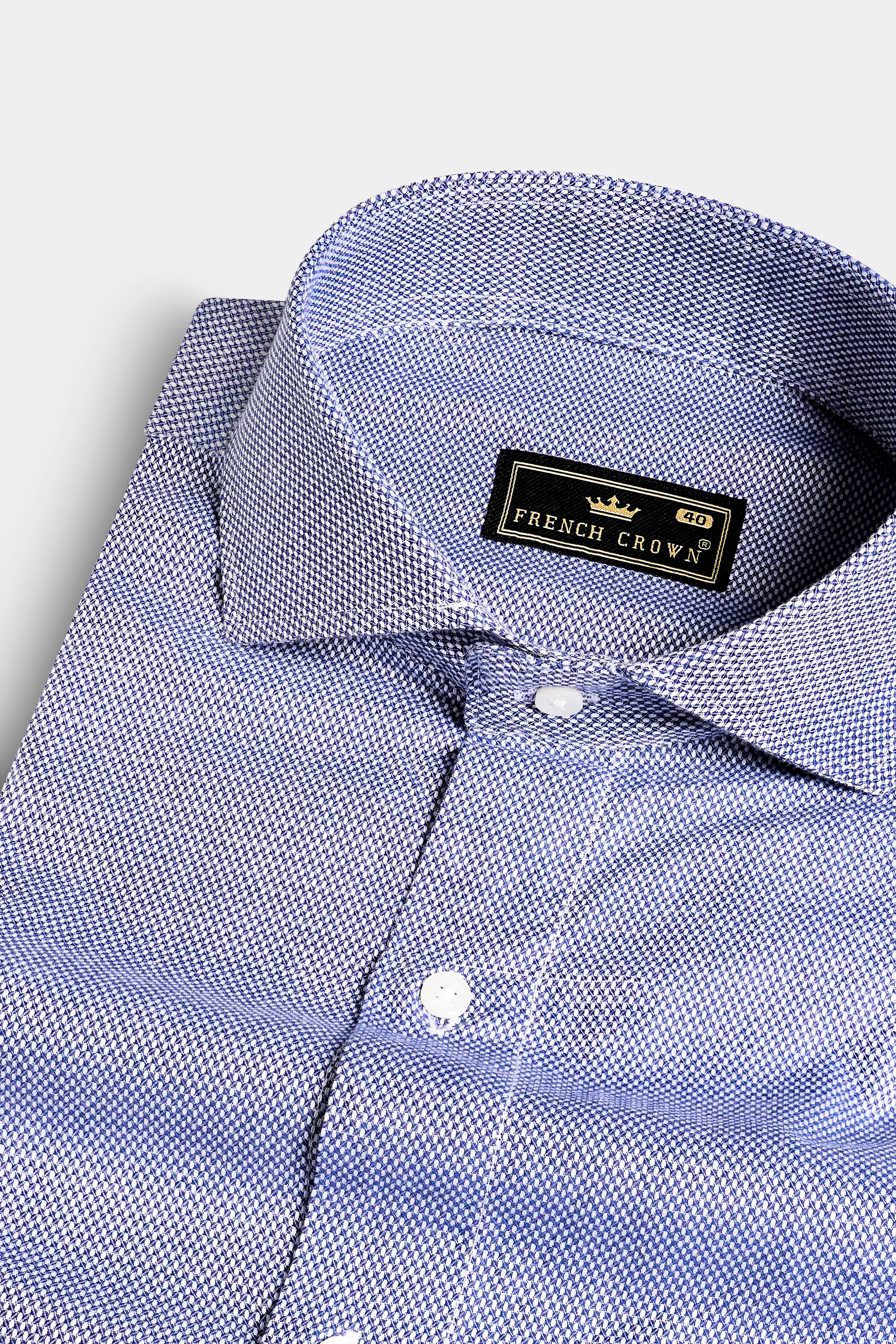 Celeste Blue and Black Dobby Textured Premium Giza Cotton ShirtCeleste Blue and Black Dobby Textured Premium Giza Cotton Shirt